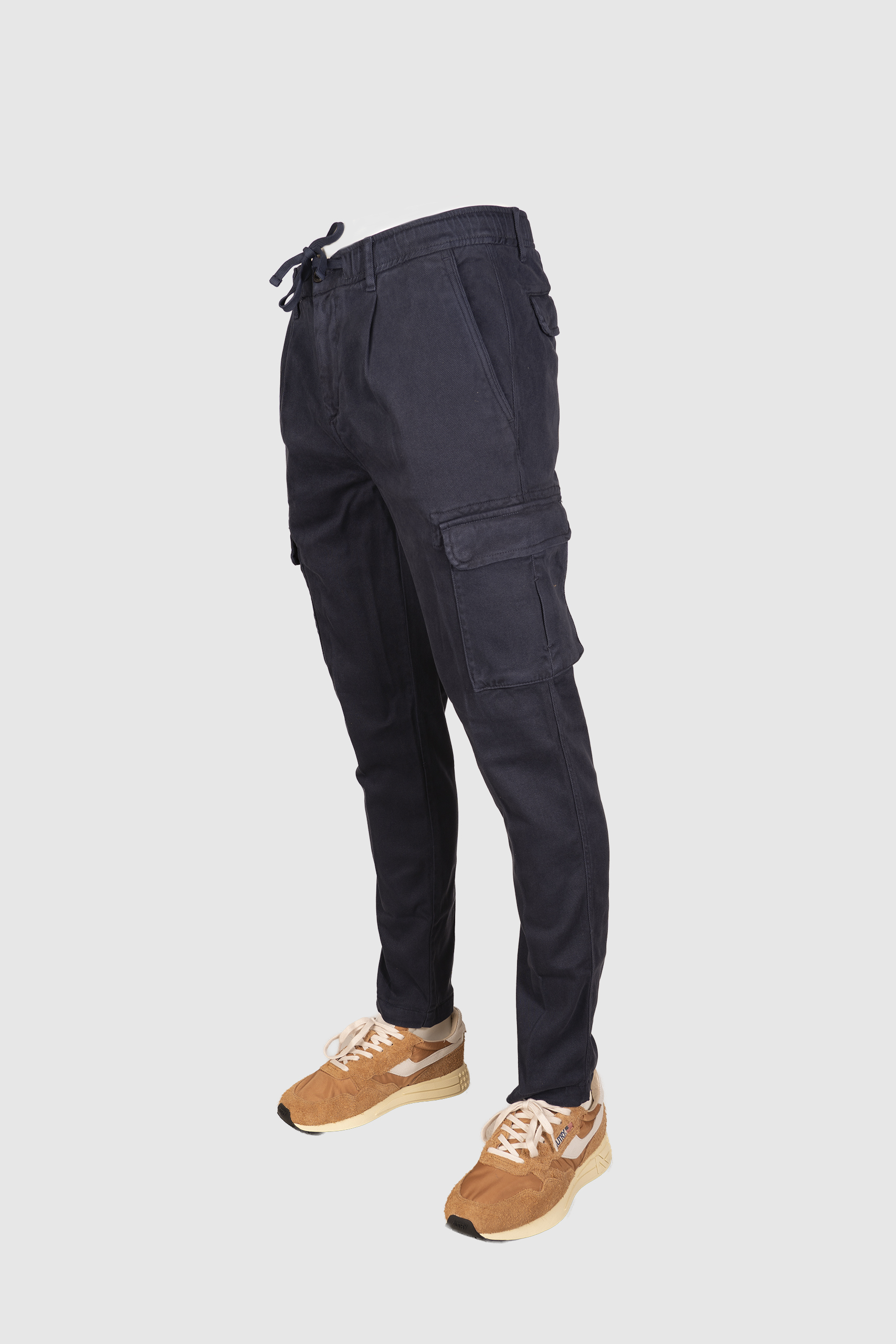 Pantalón cargo 73% tencell 25% algodón 2% elastane, con pinza matada, goma en cinturilla para dar mas confort, vestibilidad regular fit y ancho de bocas a 18cm.