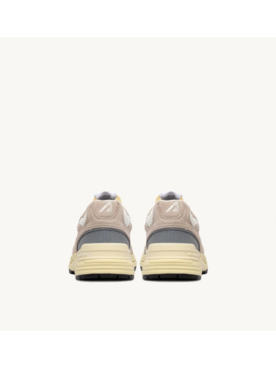 El empeine presenta una combinación de dos materiales. La malla ligera y transpirable garantiza la comodidad, mientras que el ante completa el diseño con un acabado sofisticado, recordando la estética vintage.