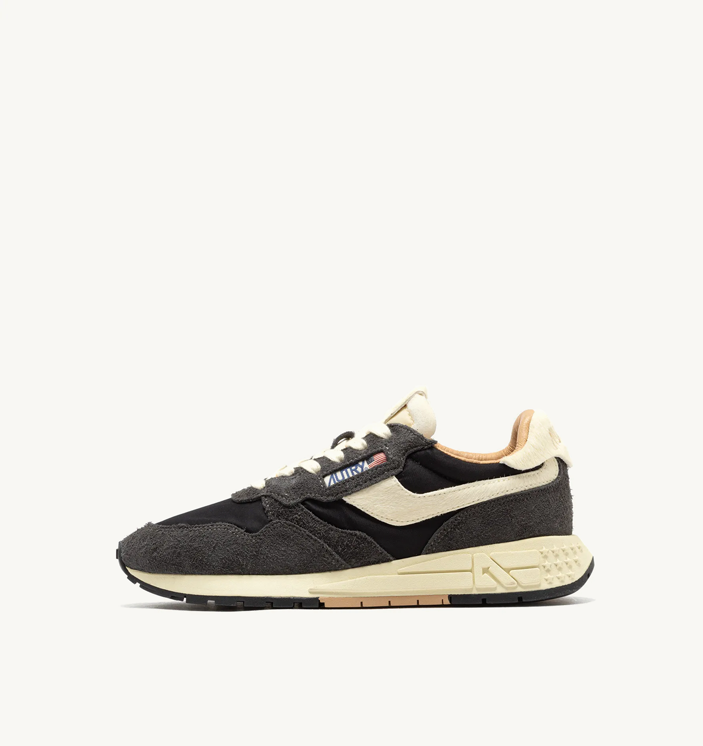 La Autry Action Shoes Reelwind combina el dinamismo y la ligereza de una zapatilla de alto rendimiento con un encanto nostálgico que refleja la esencia de los años 80. La zapatilla está fabricada con ante de alta calidad y nailon resistente, y cuenta con una suela de goma de phylon ultraligera para una pisada cómoda. Los detalles en forma de estrellas en la entresuela, las rayas clásicas de la marca y la icónica flecha en forma de A redondean el diseño.