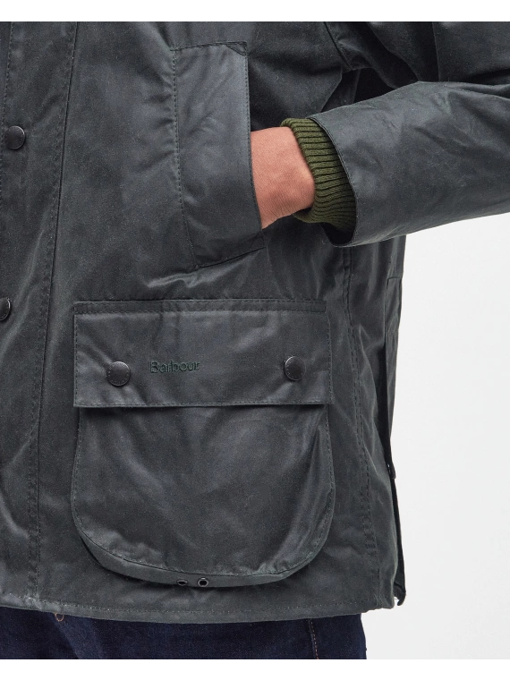 Diseñada en 1980, la chaqueta Bedale nace de la pasión de Barbour por la equitación, presentando una chaqueta corta y ligera que ofrece versatilidad y funcionalidad. Dame Margaret Barbour diseñó la Bedale pensando en la practicidad ecuestre, presentando un largo más corto, un corte holgado, aberturas traseras y la esencial banda interior de nailon que impedía que la humedad de los caballos se filtrara en la chaqueta. Confeccionada con algodón encerado de 170 g de peso medio y totalmente interactiva con forros térmicos y capuchas con cremallera opcionales, la Bedale es una chaqueta ideal para todo el año, ideal para una multitud de ocasiones. Incluye todos los elementos clásicos de una chaqueta Barbour, como una cremallera de anilla de latón de doble sentido y un frontal “Stormfly” con tachuelas, dos amplios bolsillos de fuelle y dos bolsillos calientamanos forrados de piel de topo, y el tradicional cuello de pana con tachuelas para una solapa oculta en el cuello. Convertida ya en un clásico, la practicidad y el estilo sencillo de la Bedale siguen siendo populares entre todas las edades. La popularidad del Bedale ha inspirado una versión reducida para mujeres, el Beadnell, que lleva el nombre de un pequeño pueblo pesquero de Northumberland.