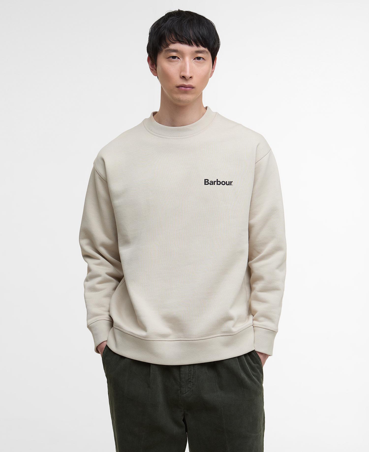 Logotipo pequeño de Barbour estampado en la parte delantera del pecho y logotipo grande de Barbour estampado en el centro de la espalda.