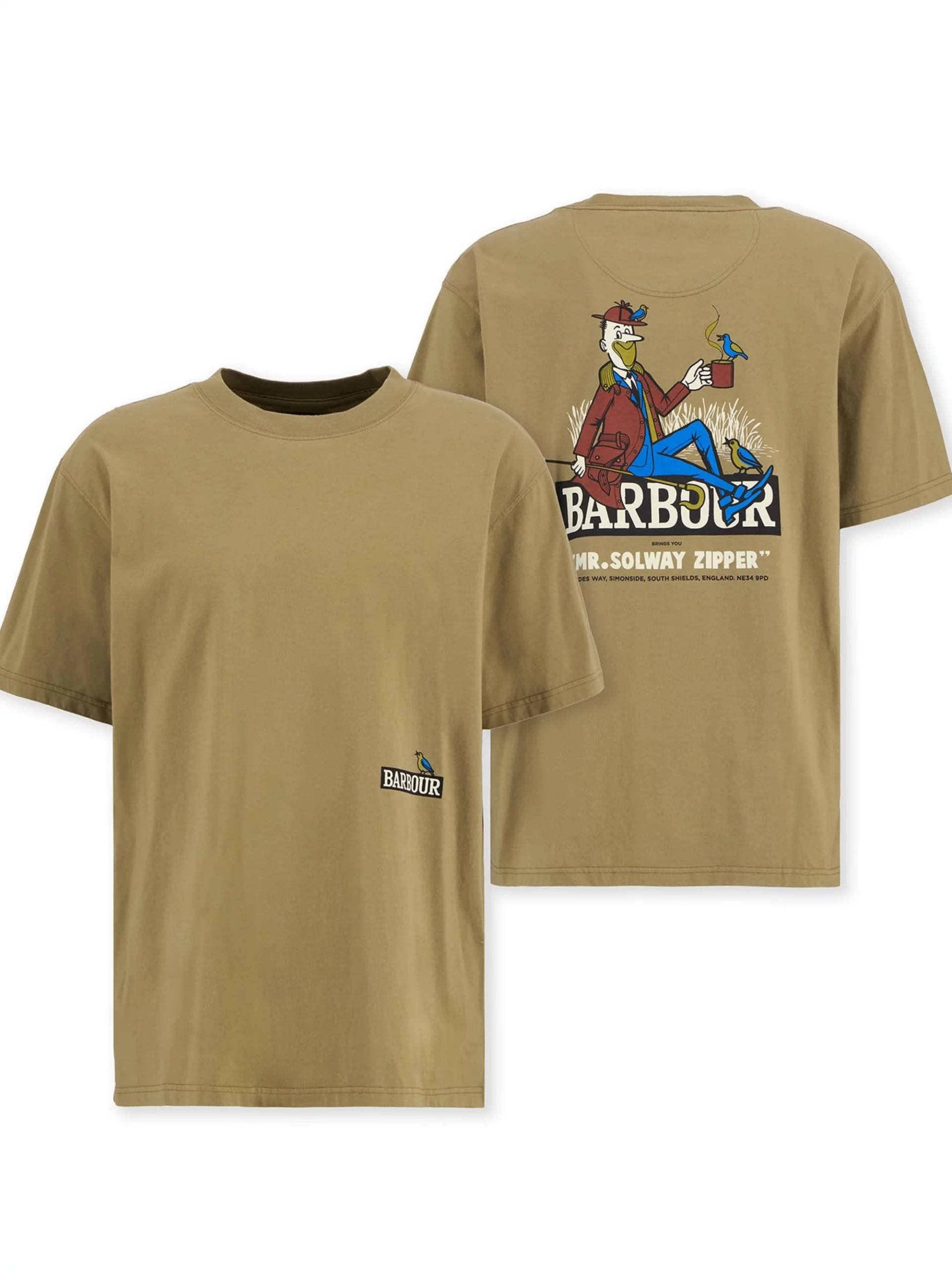 Pequeño gráfico de la marca Barbour en la parte inferior izquierda del pecho y gran estampado inspirado en el archivo de Barbour en la espalda.