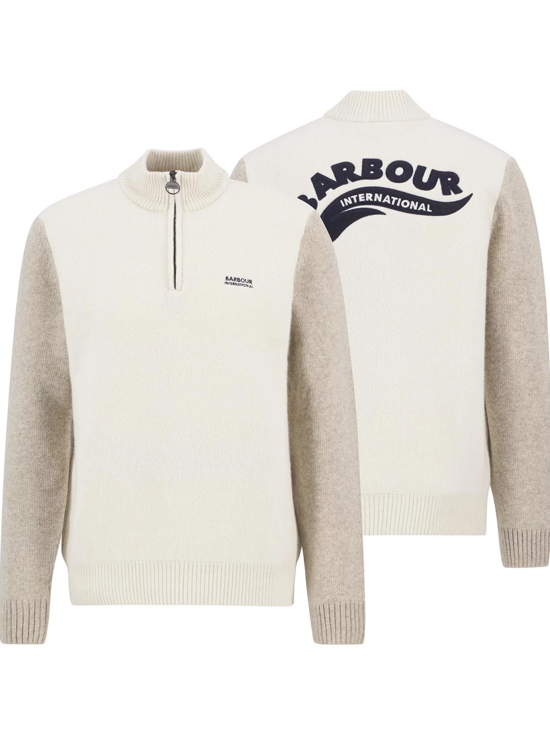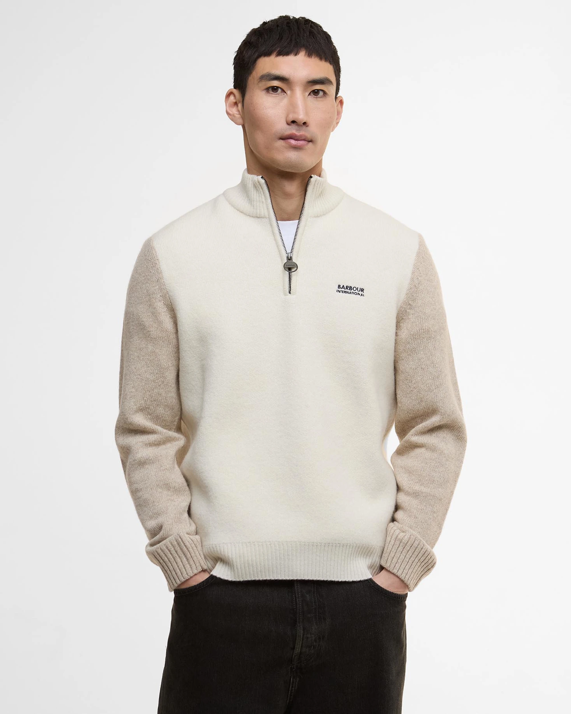 Abrígate con la calidez del jersey Hutchy de media cremallera de B.Intl y disfruta de una comodidad inigualable. Confeccionado en una mezcla de lana de primera calidad, este jersey de media cremallera presenta mangas raglán para un look relajado y la insignia del logotipo de Barbour International en la parte posterior, un sello de calidad inigualable.