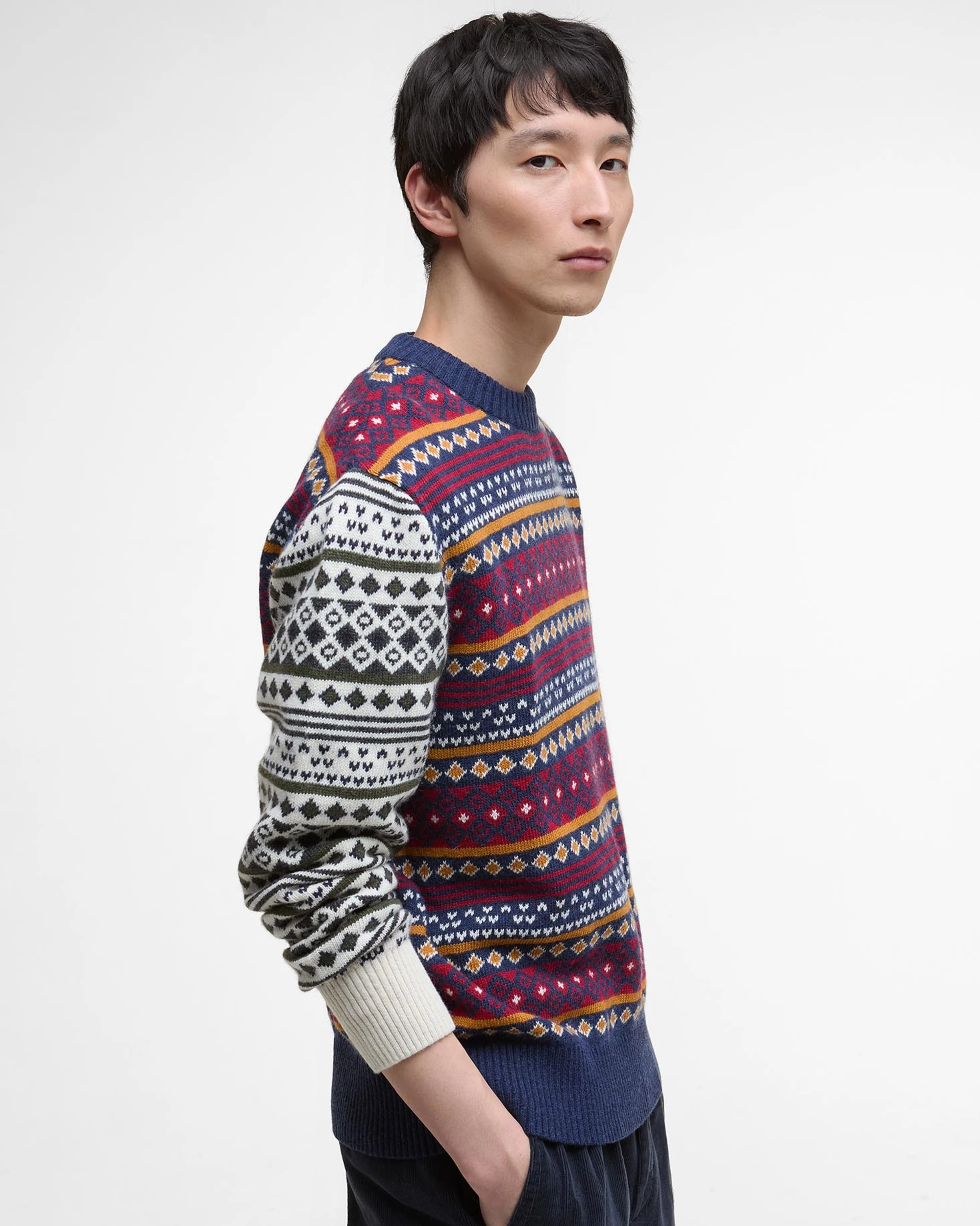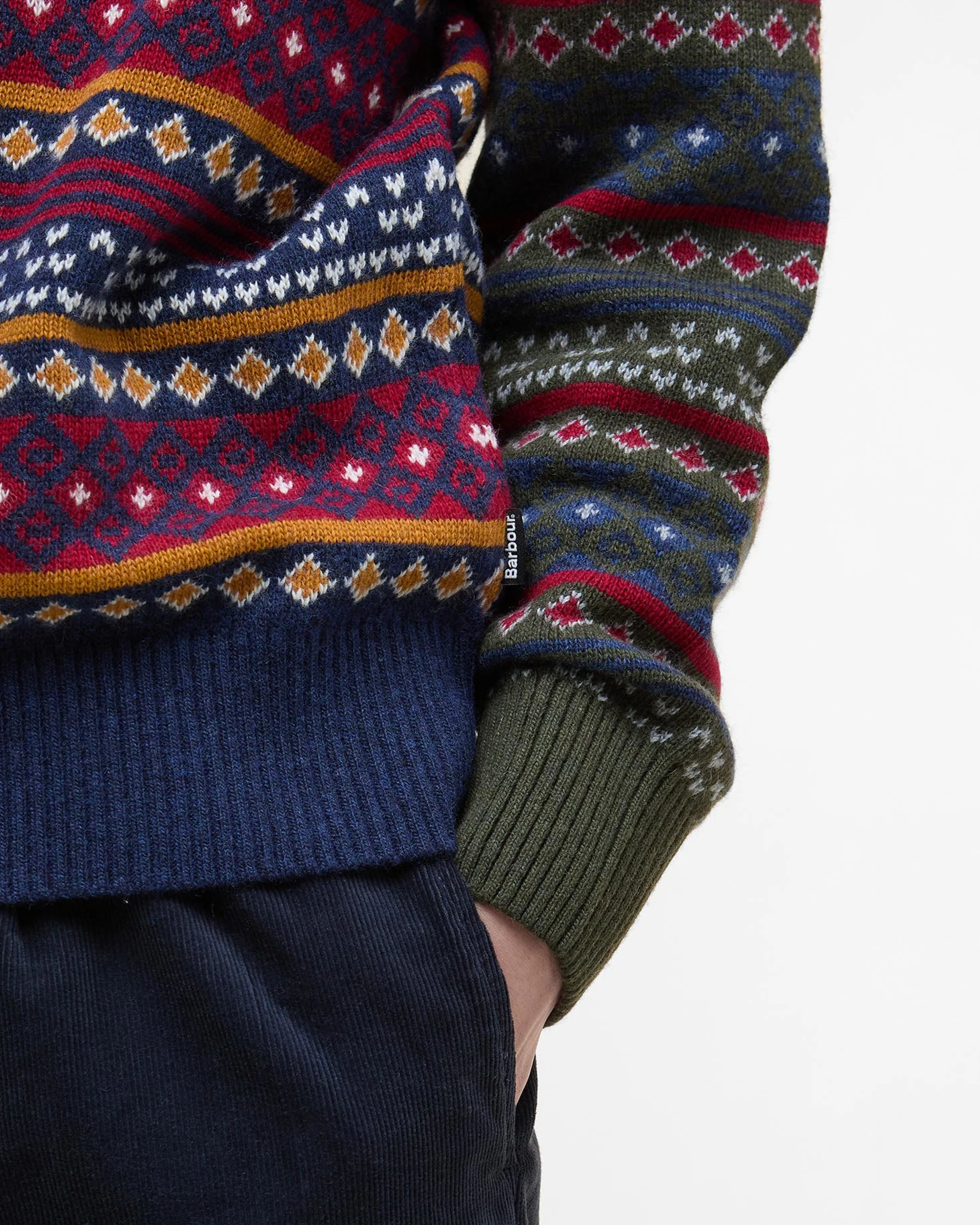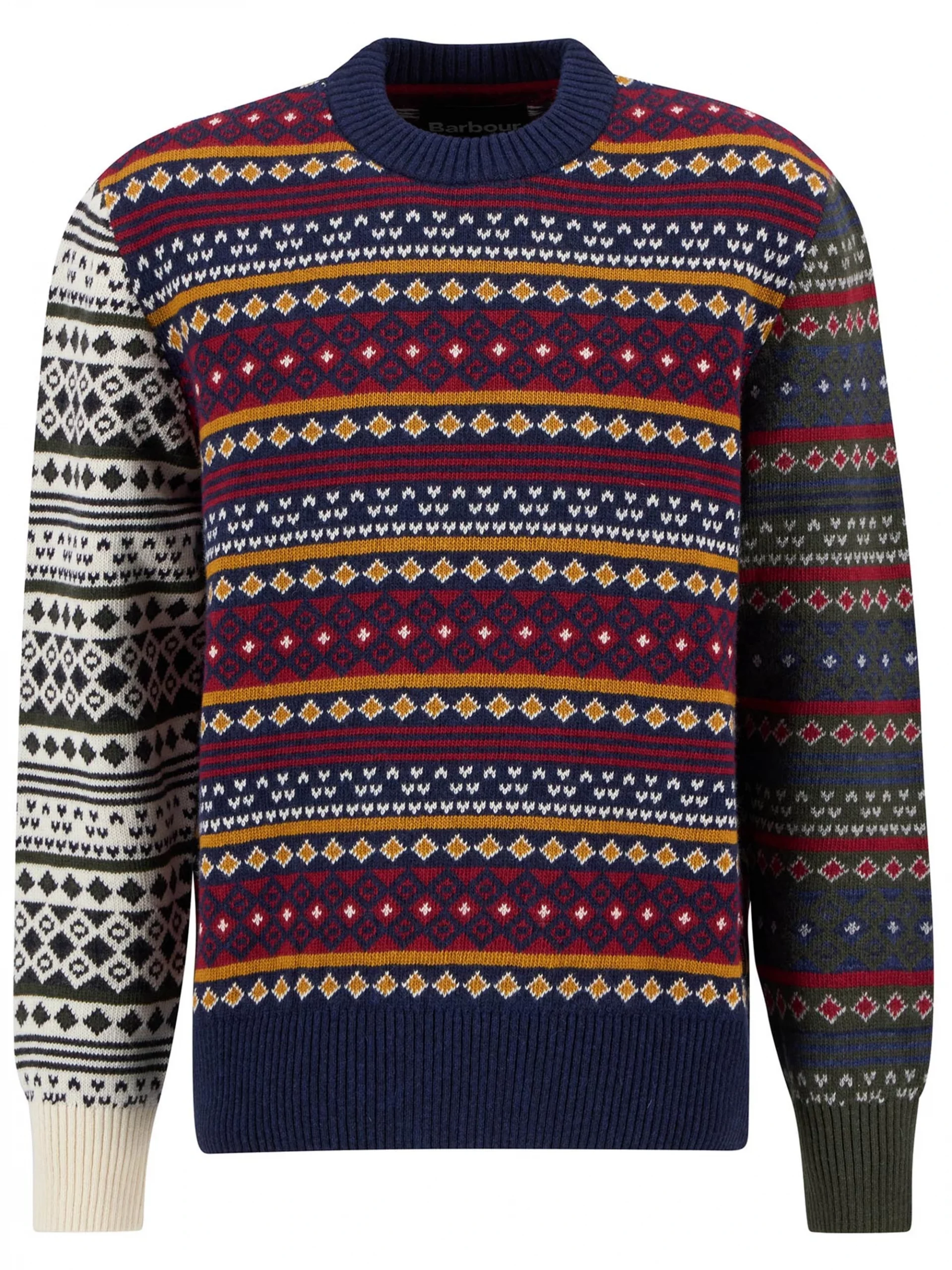 Perfecto para la temporada festiva, el jersey de cuello redondo Barbour Patchwork Fair Isle combina un vibrante patchwork de patrones Fair Isle enmarcados por ribetes en contraste en el cuello, el dobladillo y los puños.