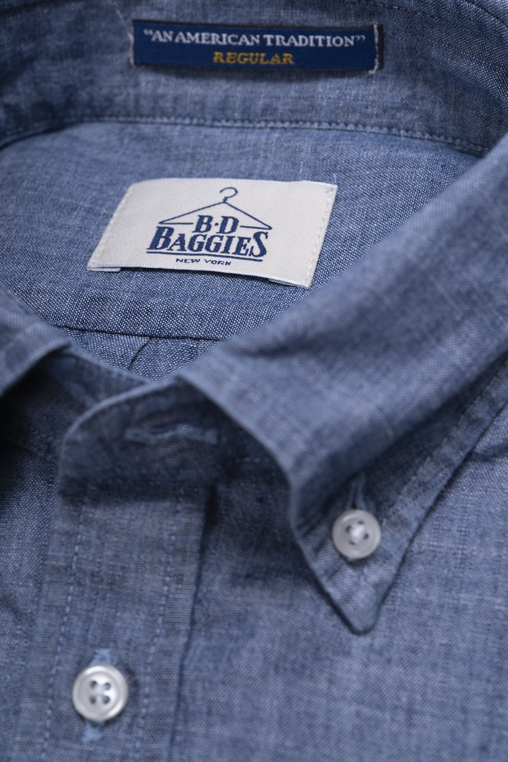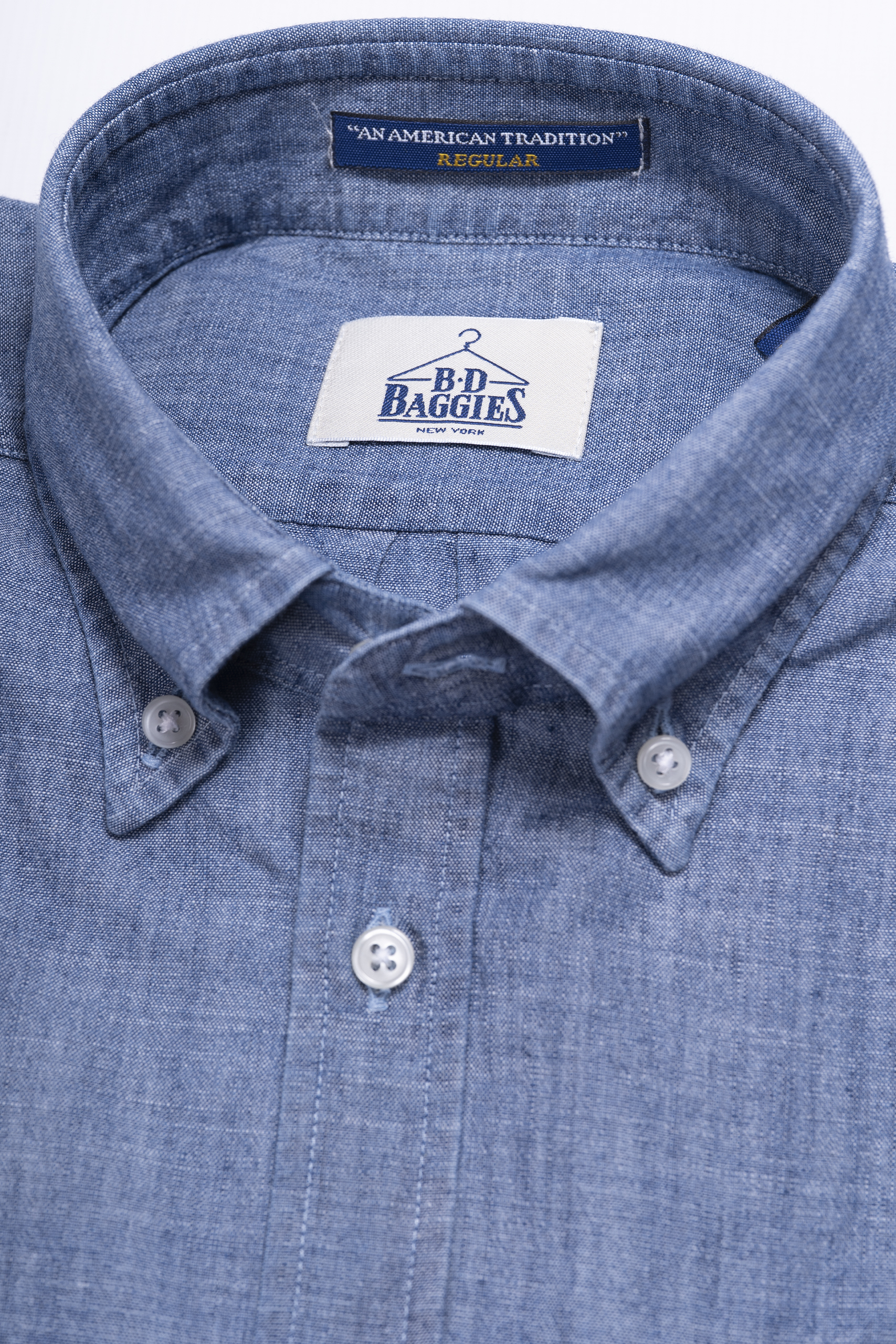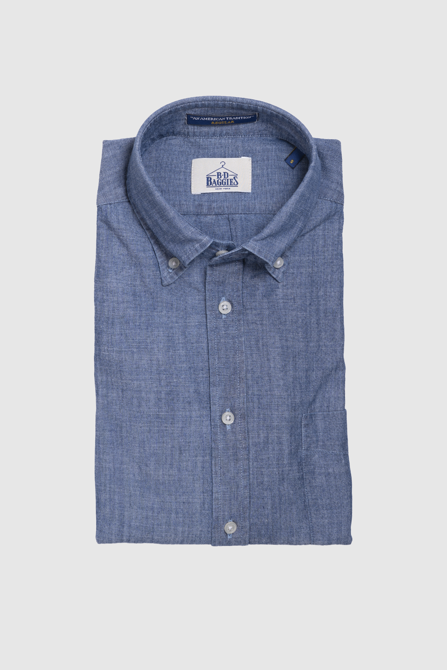 Camisa de tejido chambray algodón 100%, botón denim en el cuello, regular fit.