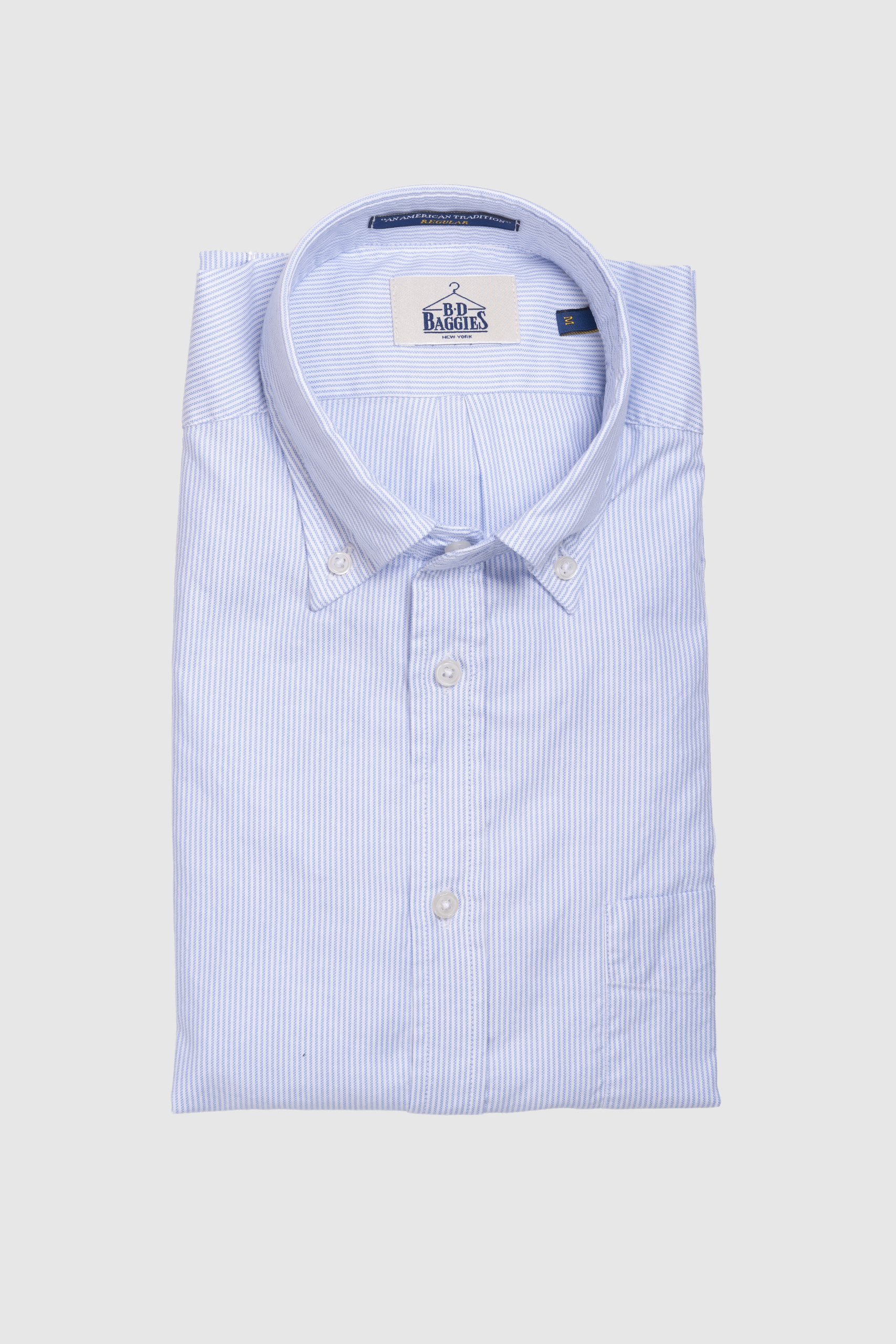 Camisa de algodón 100%, botón denim en el cuello, regular fit.