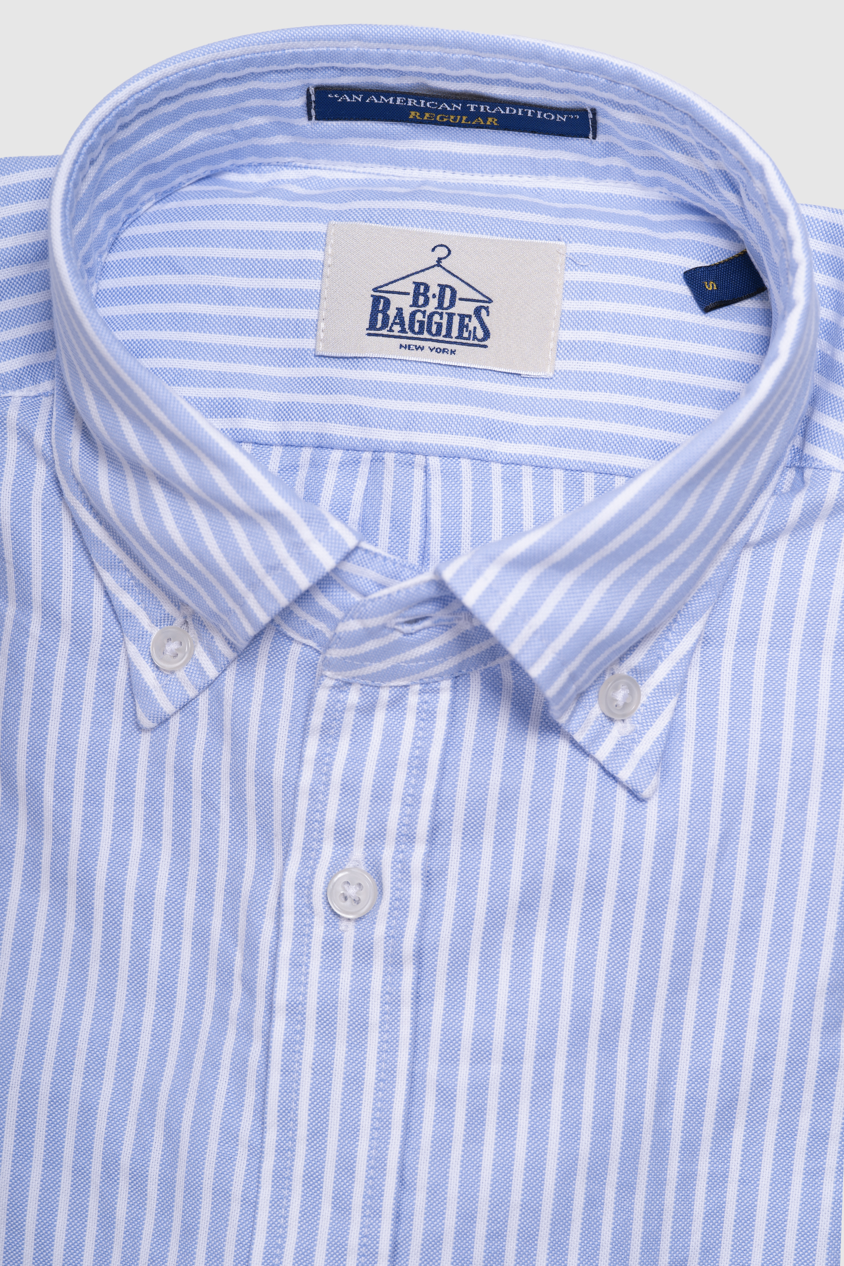 Camisa de  algodón 100%, botón denim en el cuello, regular fit.