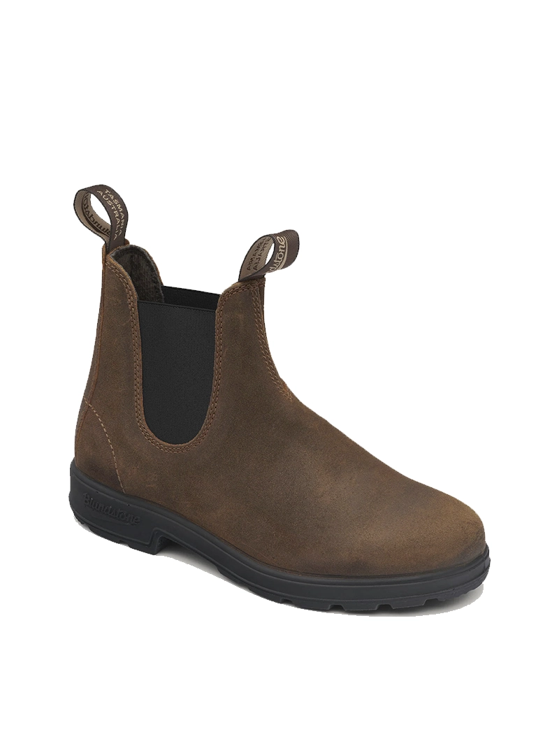 Las Blundstone #1911 están confeccionadas con un empeine de ante resistente al agua en color tabaco. Un diseño inspirado en las botas Chelsea con el clásico elástico en los laterales, se apoyan en una cómoda suela de goma antideslizante con tacos. Dotados de una lengüeta delantera y trasera para facilitar el ajuste, son unos botines cómodos y modernos de la serie Originals para looks informales de diario.