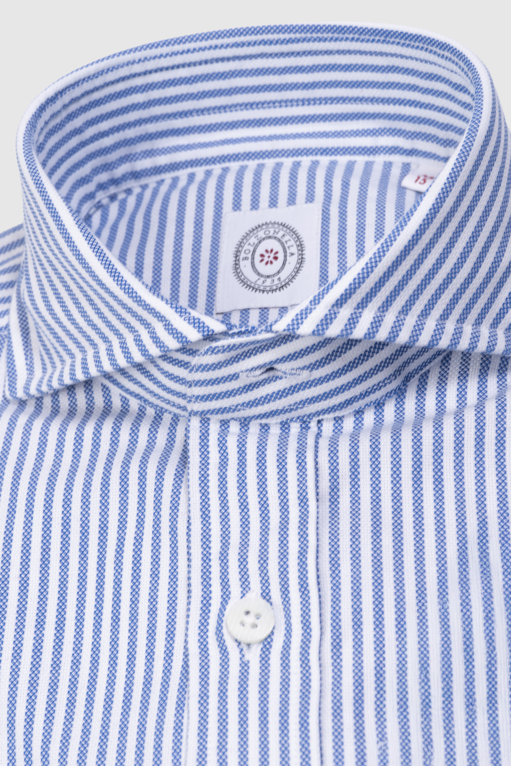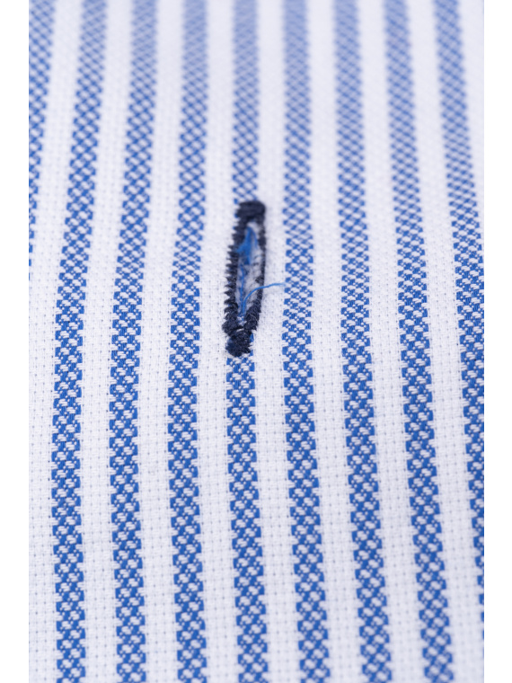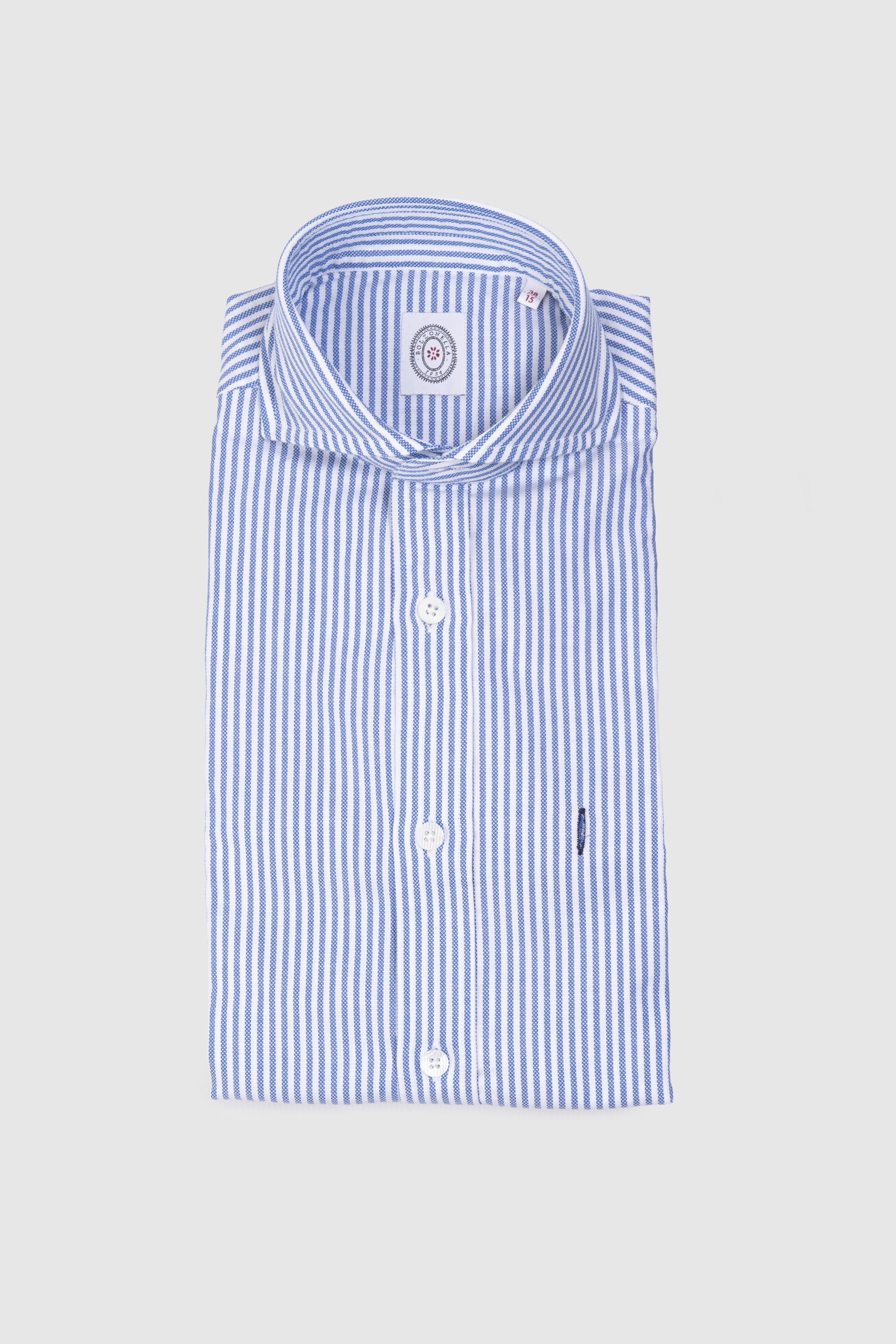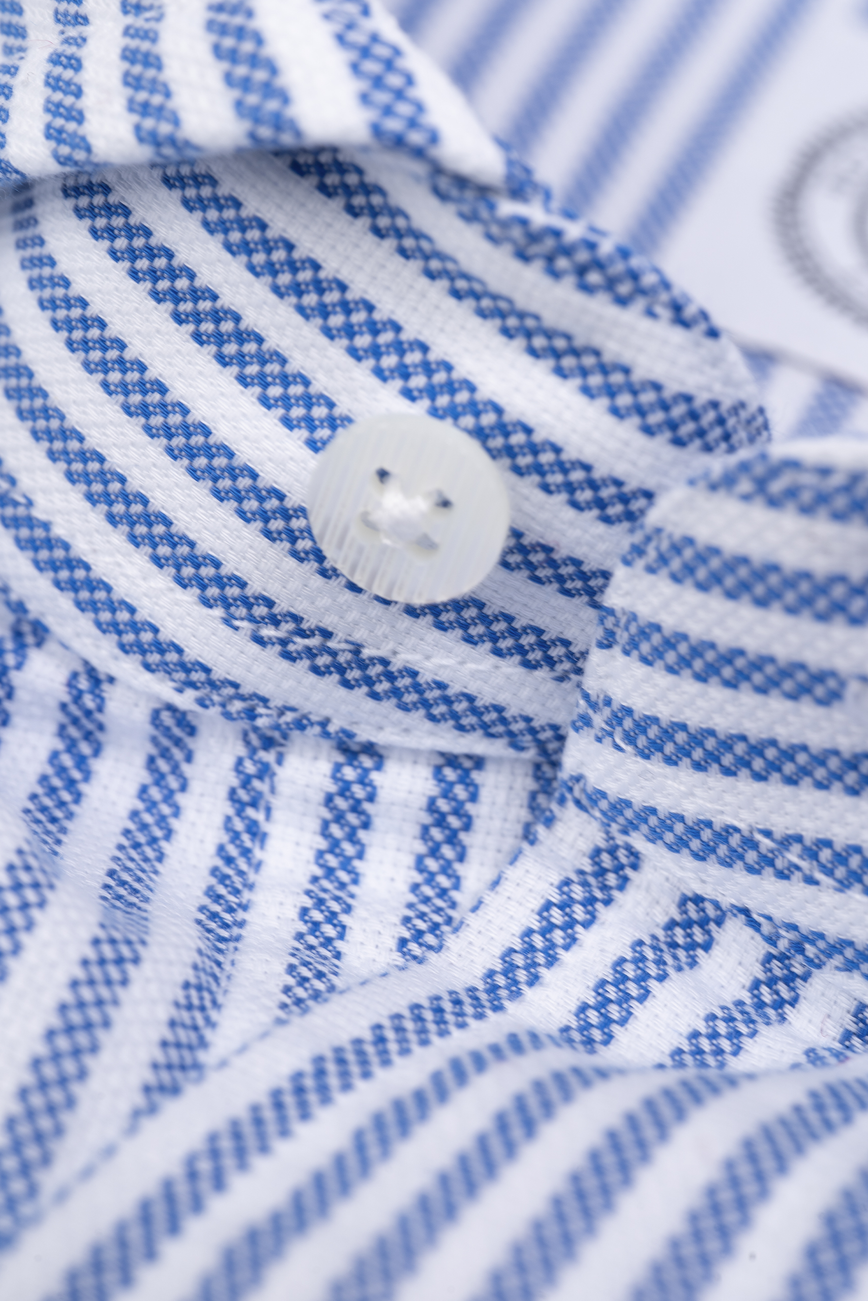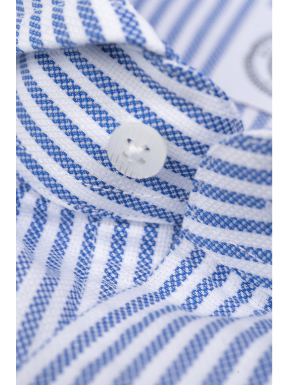 Camisa napolitana de algodón 100%, botonadura madre perla en contraste, cuello napolitano, ojal en pecho, vestibilidad slim fit.