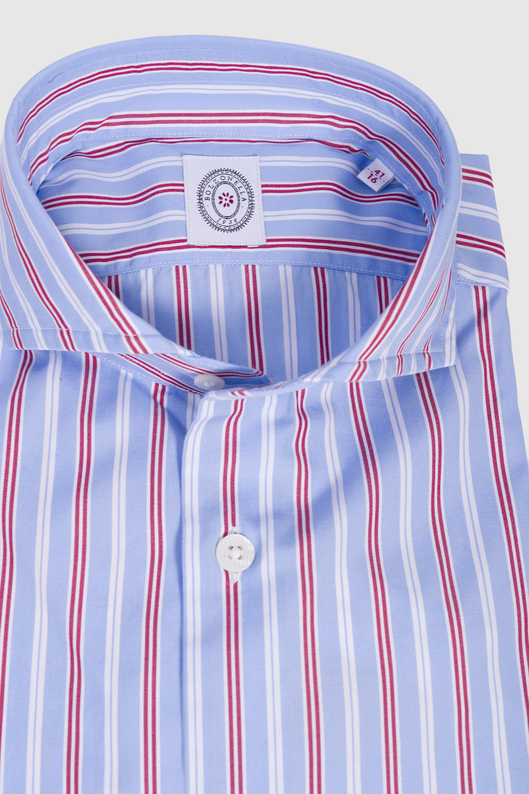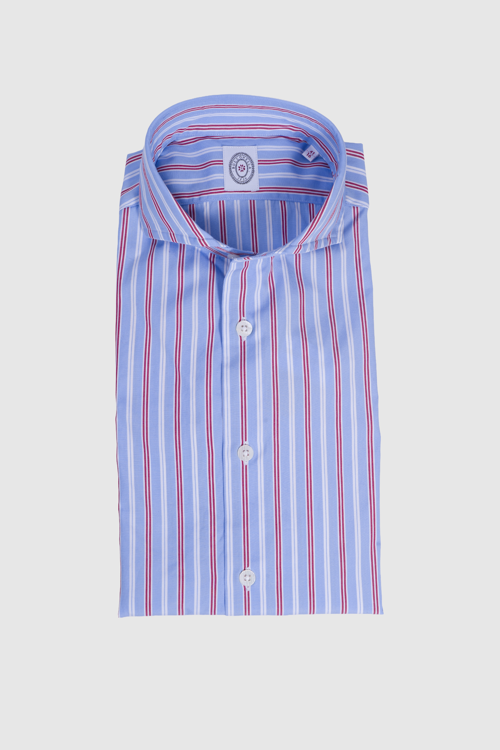 Camisa de algodón 100%. cuello italiano, botonadura madre perla, ojal en el pecho, vestibilidad slim fit. Made in Italy.