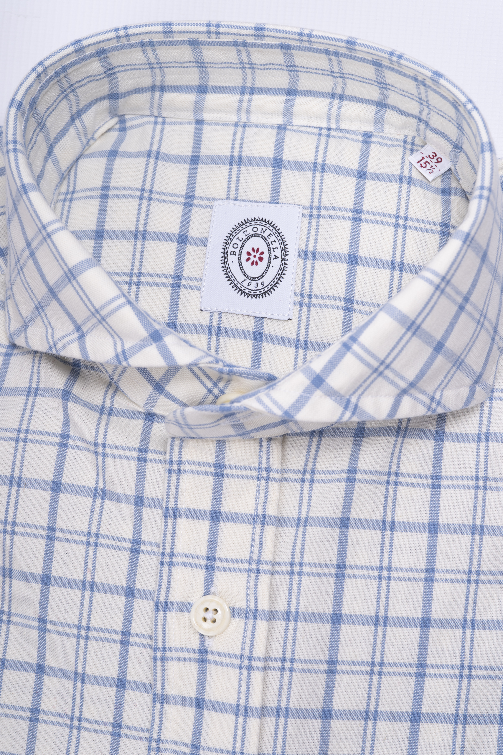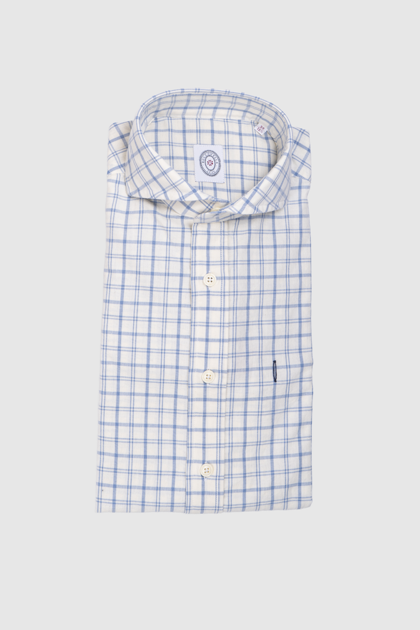 Camisa napolitana de algodón 100%, botonadura madre perla en contraste, cuello napolitano, ojal en pecho, vestibilidad slim fit.