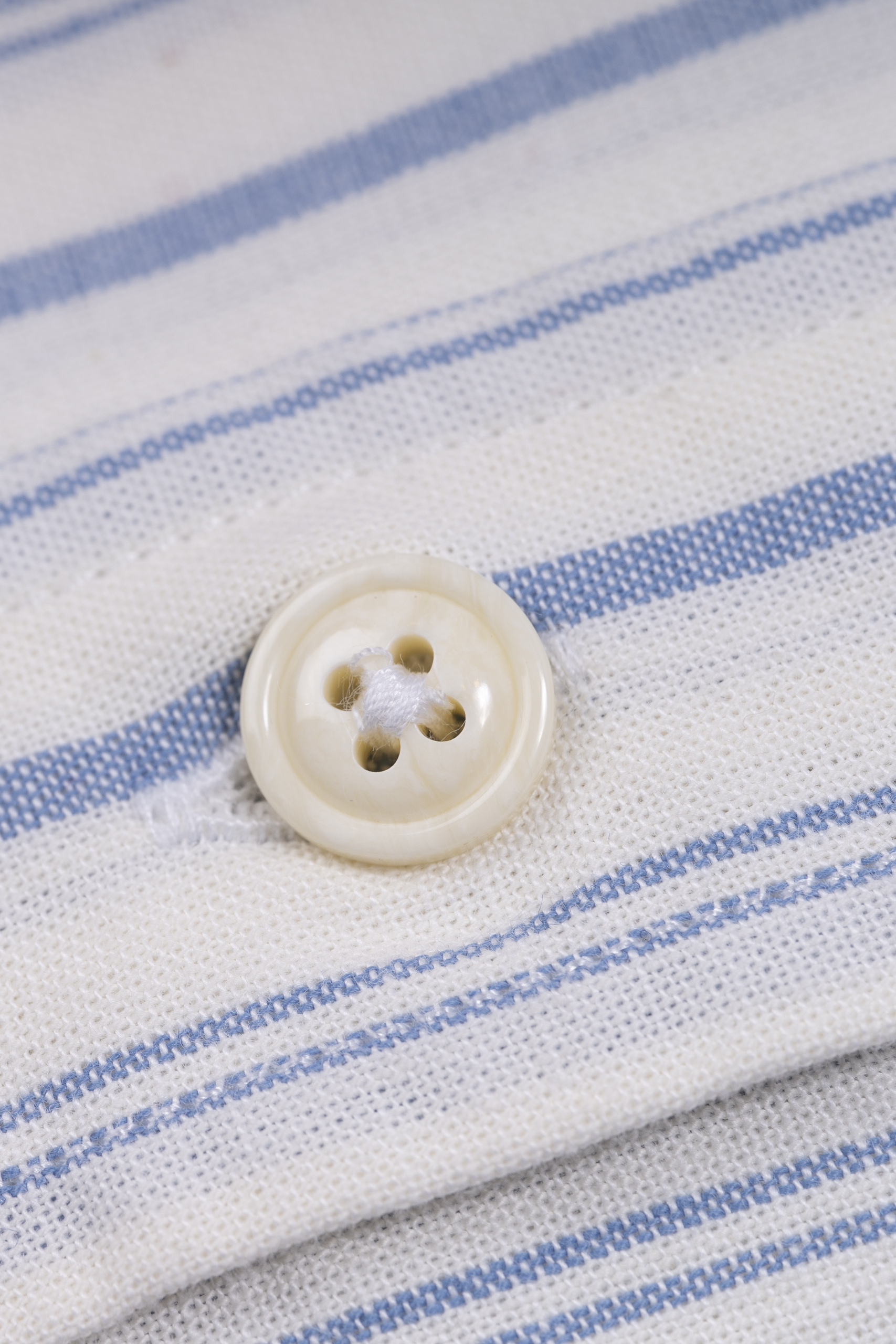 Camisa napolitana de algodón 100%, botonadura madre perla en contraste, cuello napolitano, ojal en pecho, vestibilidad slim fit.