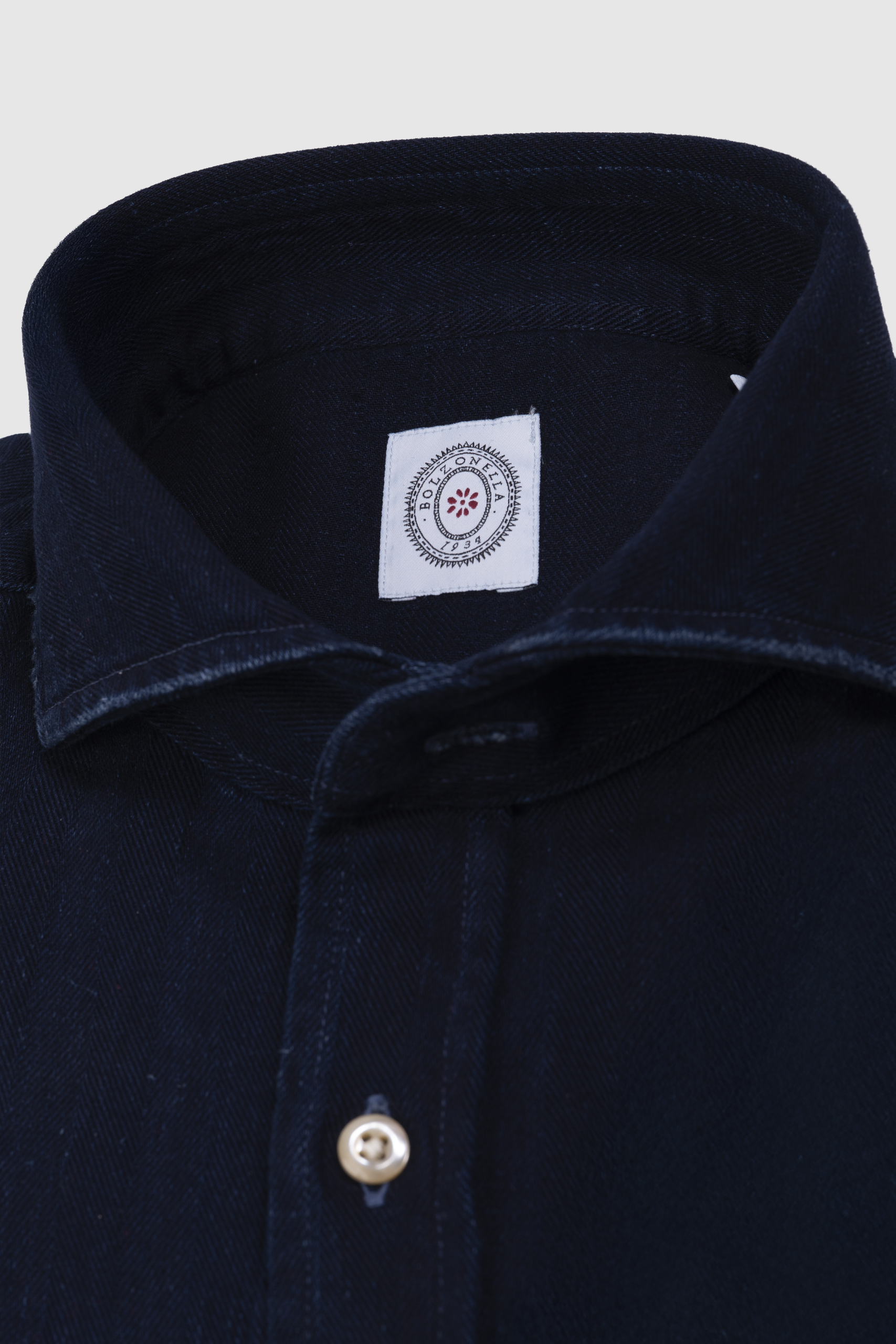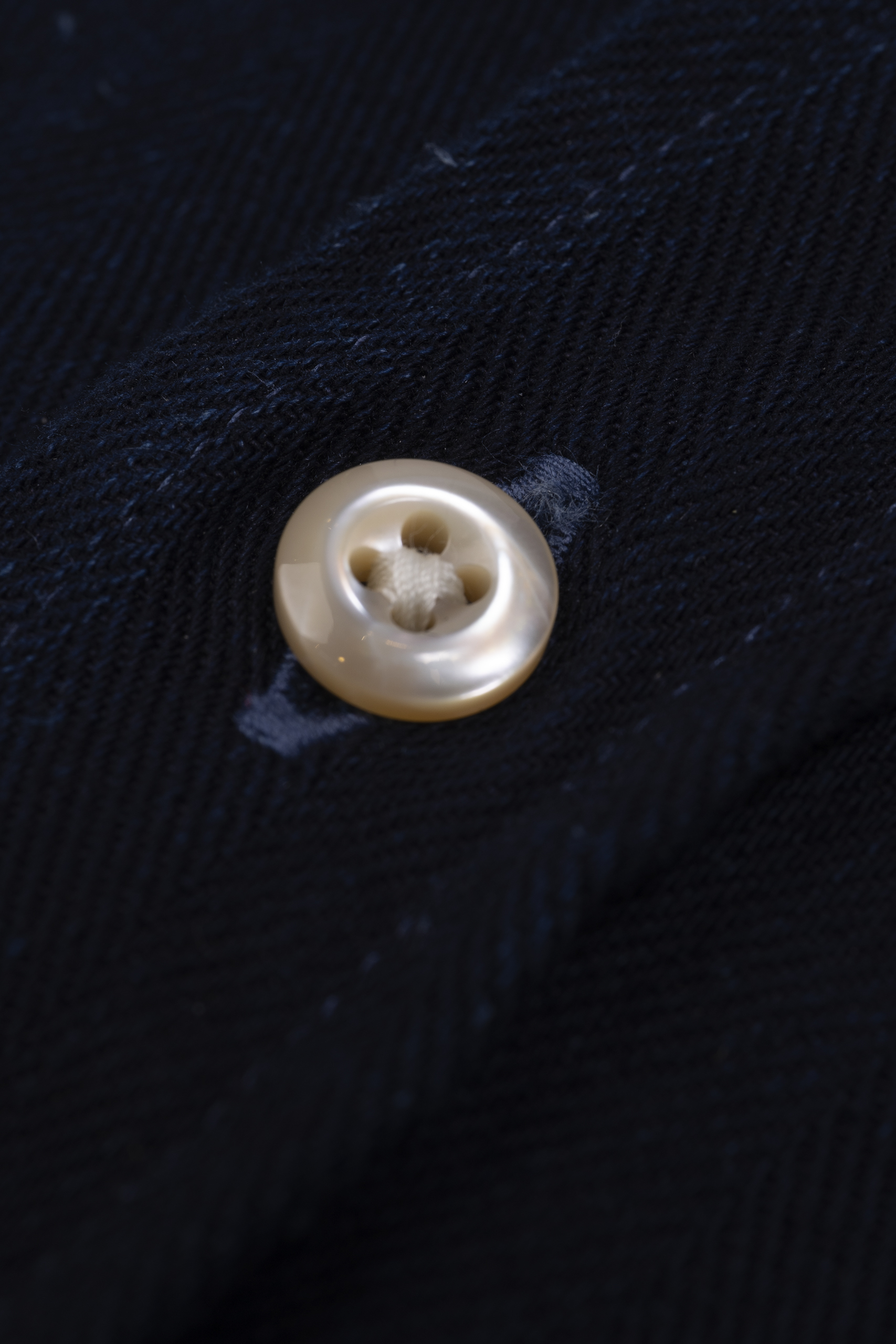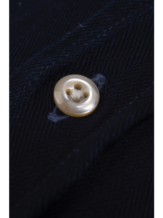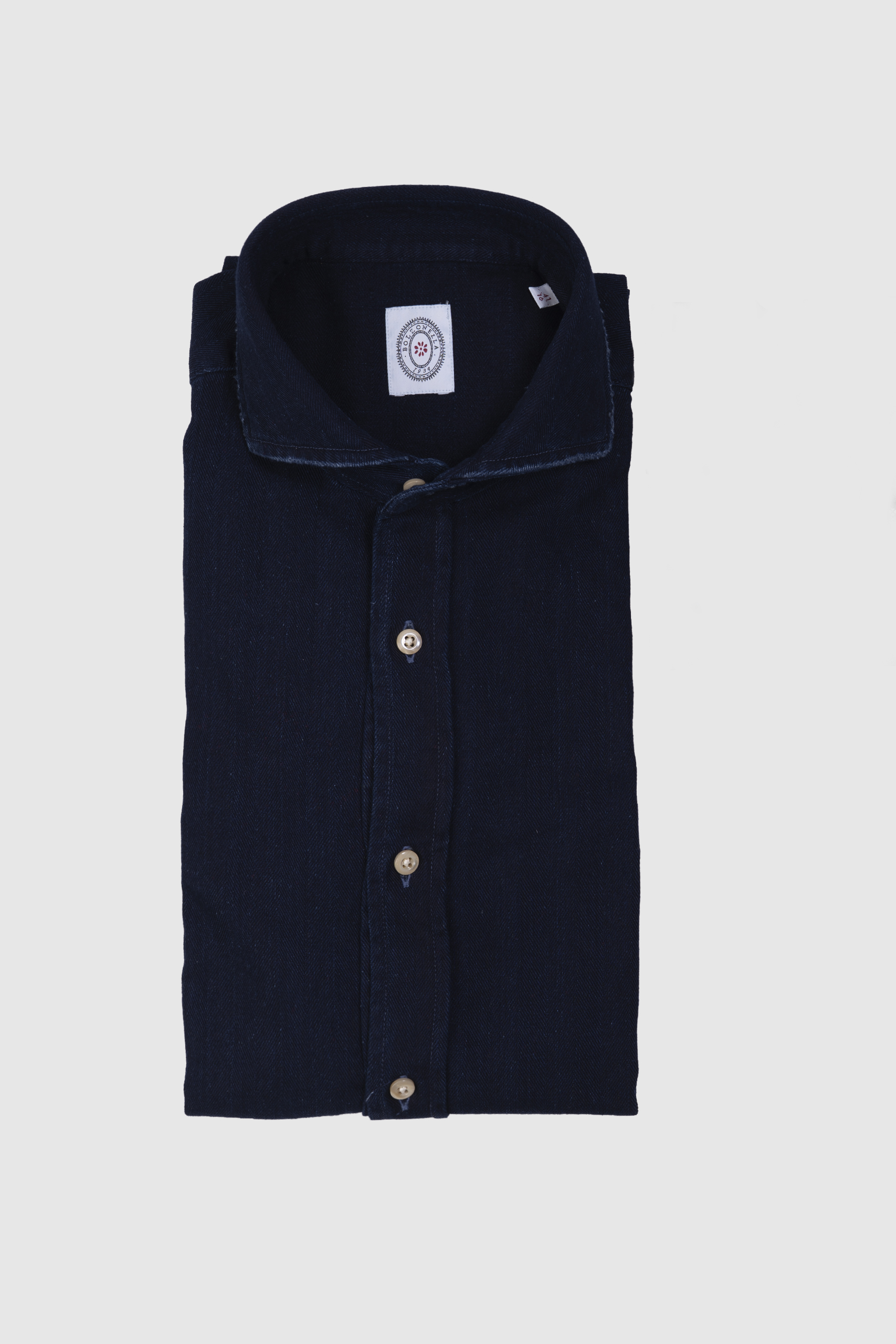 Camisa napolitana de algodón 100%, botonadura madre perla en contraste, cuello napolitano, vestibilidad slim fit.