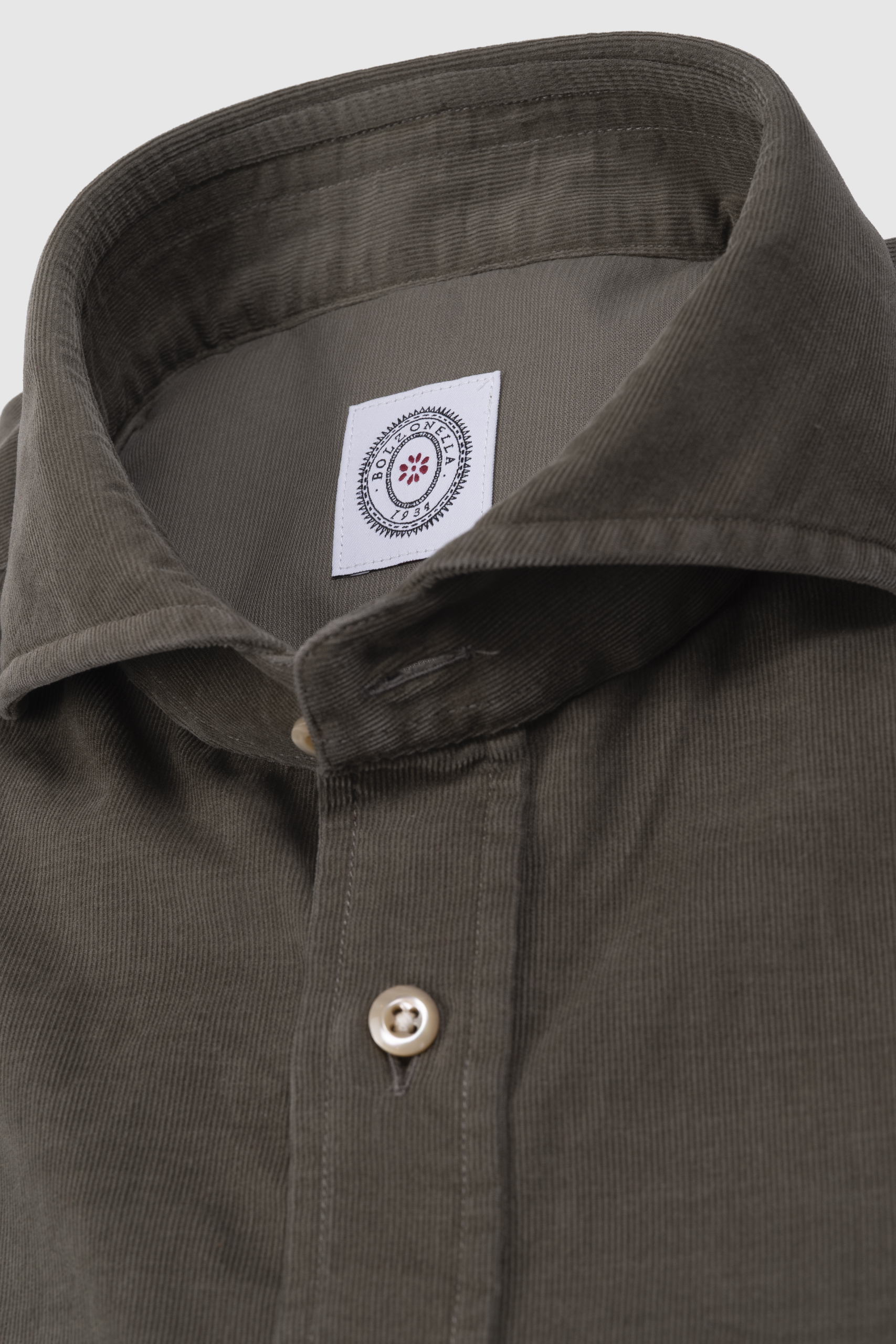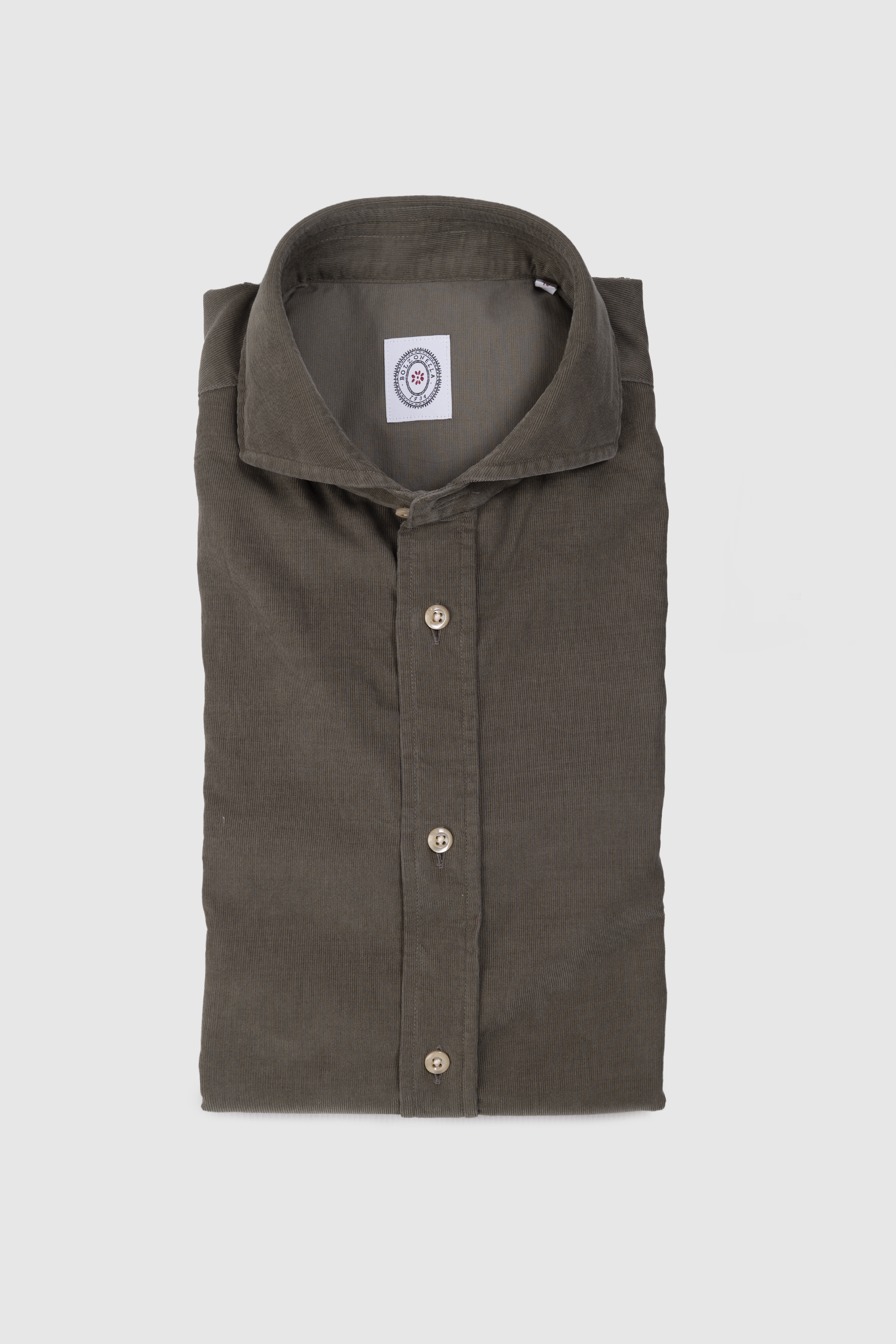 Camisa napolitana de micropana de algodón 100%, botonadura madre perla en contraste, cuello napolitano, vestibilidad slim fit.