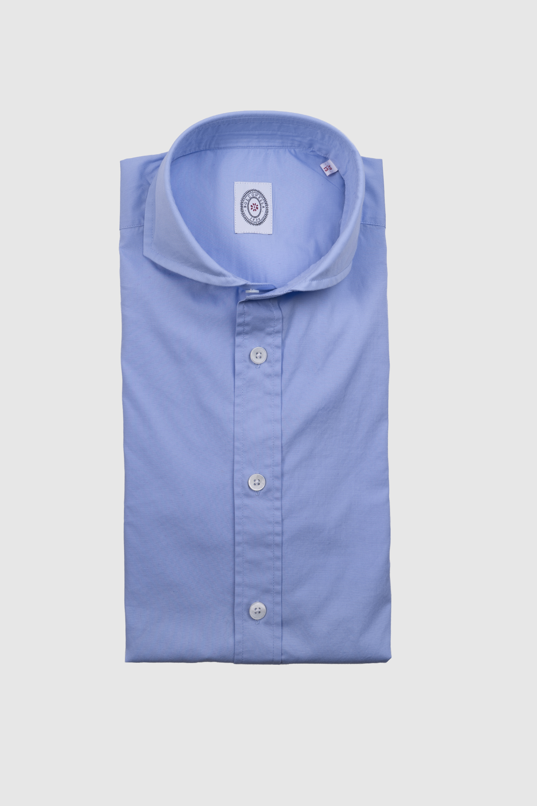 Camisa napolitana 100% algodón, vestibilidad slim fit, el tejido es un popelín de algodón, botonadura madre perla en contraste. Made in Italy.
