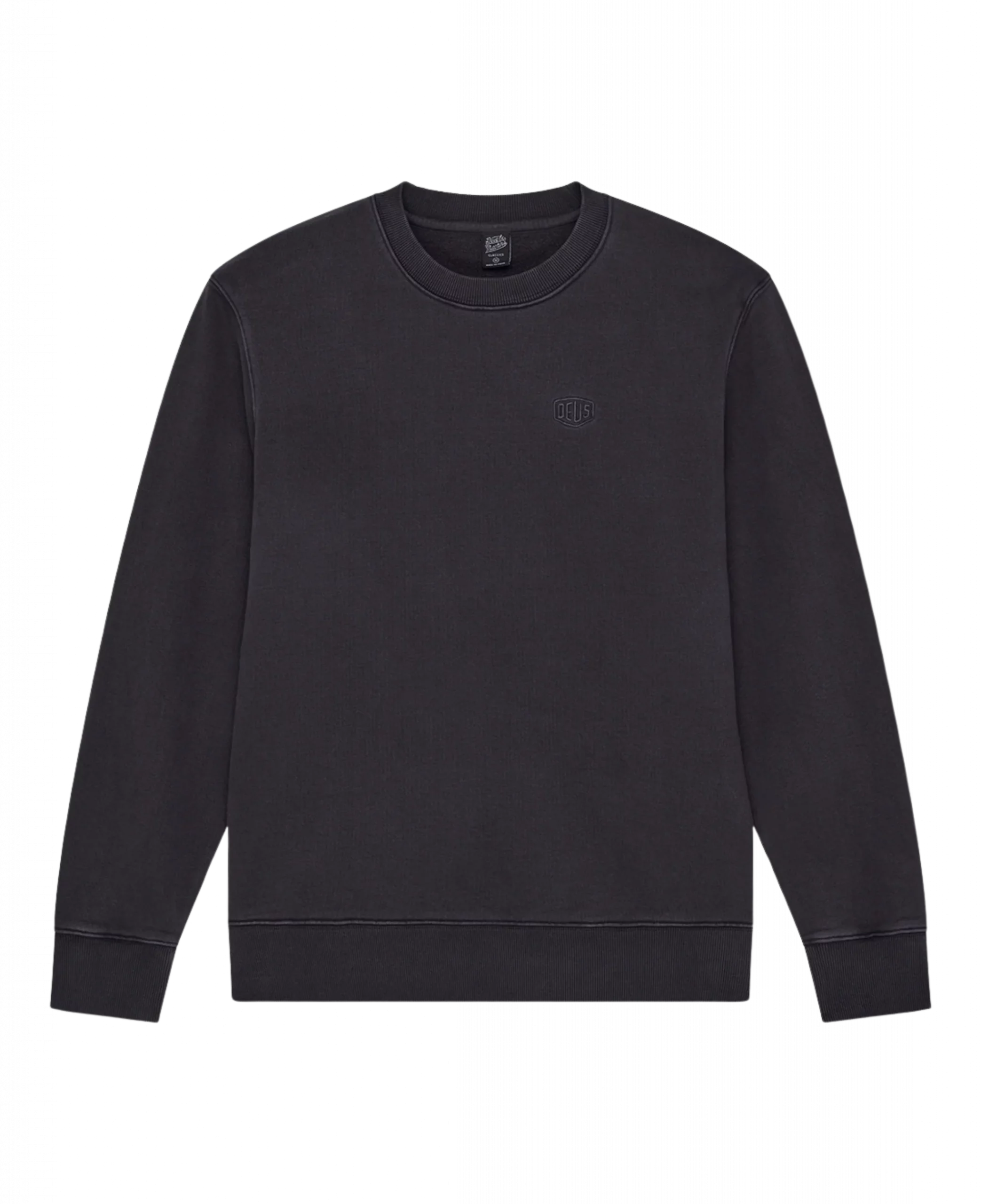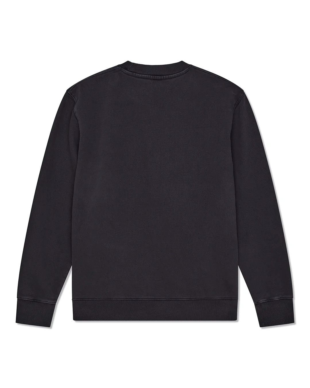 Sudadera Box Fit Crew con diseño bordado en el pecho, confeccionada en tejido de felpa gruesa con interior cepillado, teñida con pigmentos y lavada con enzimas.