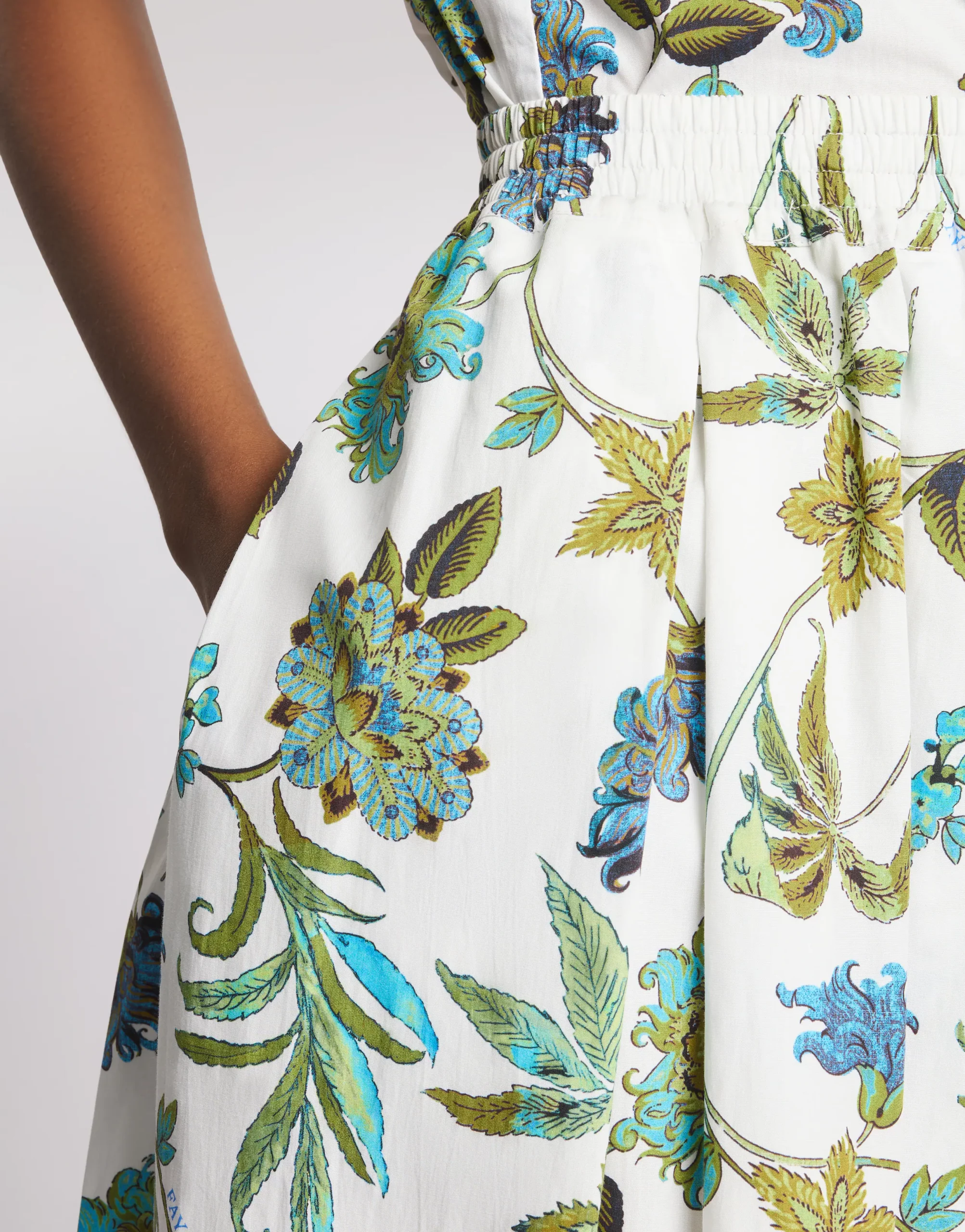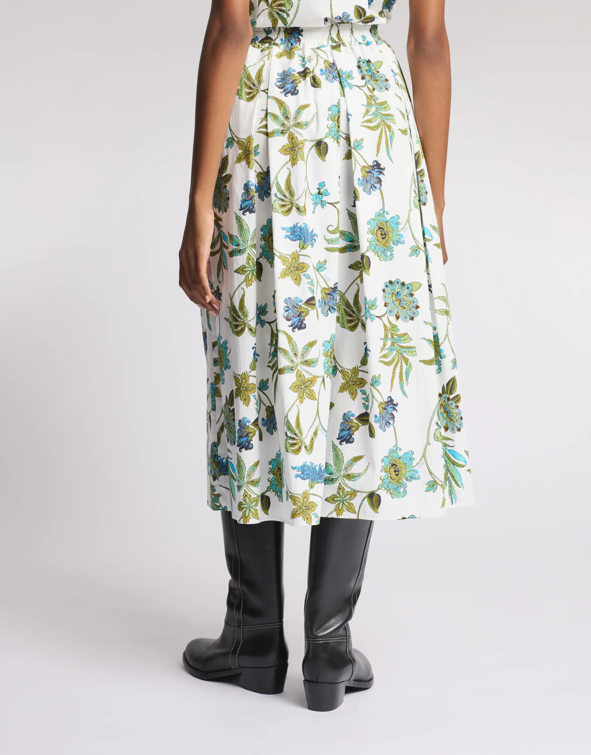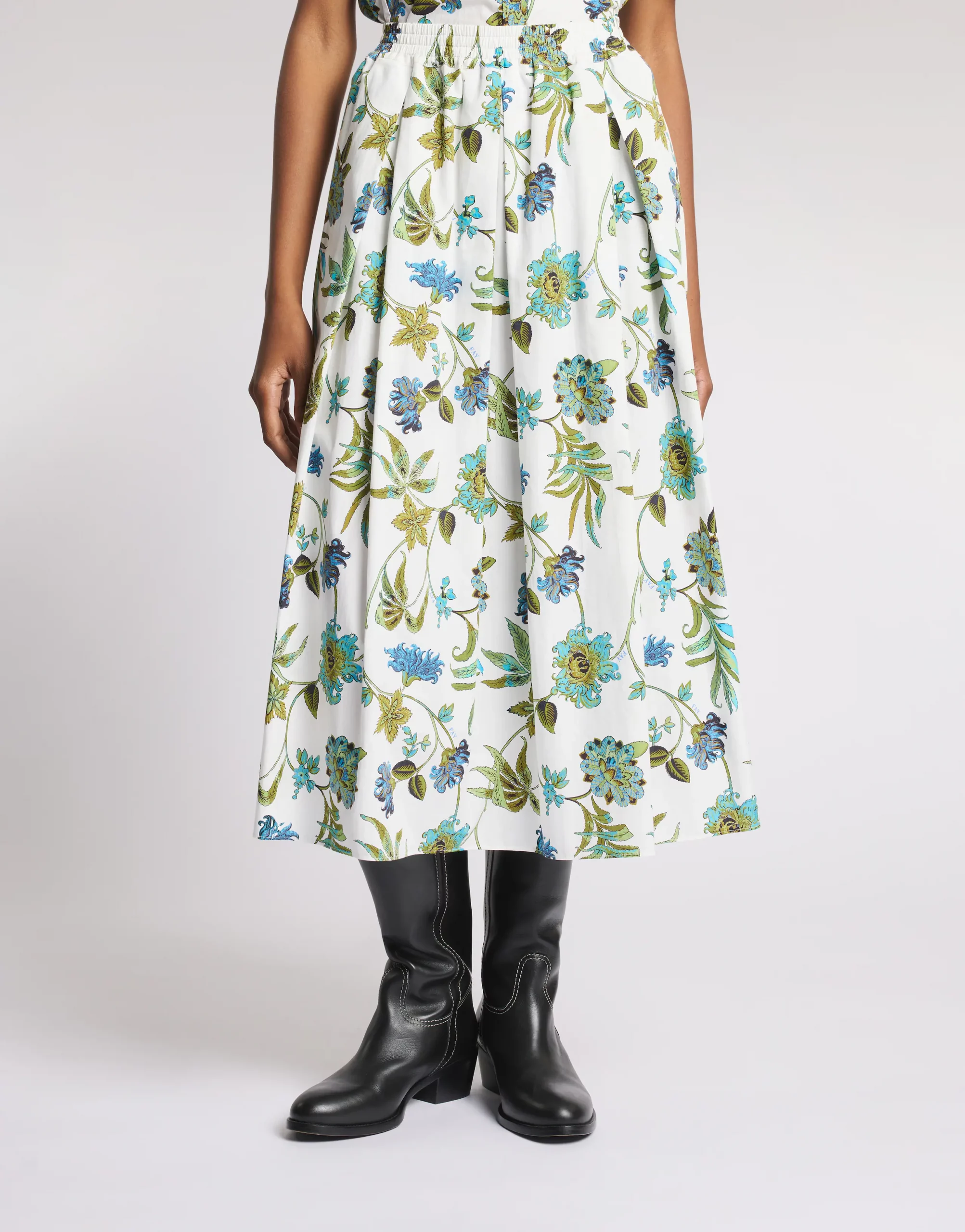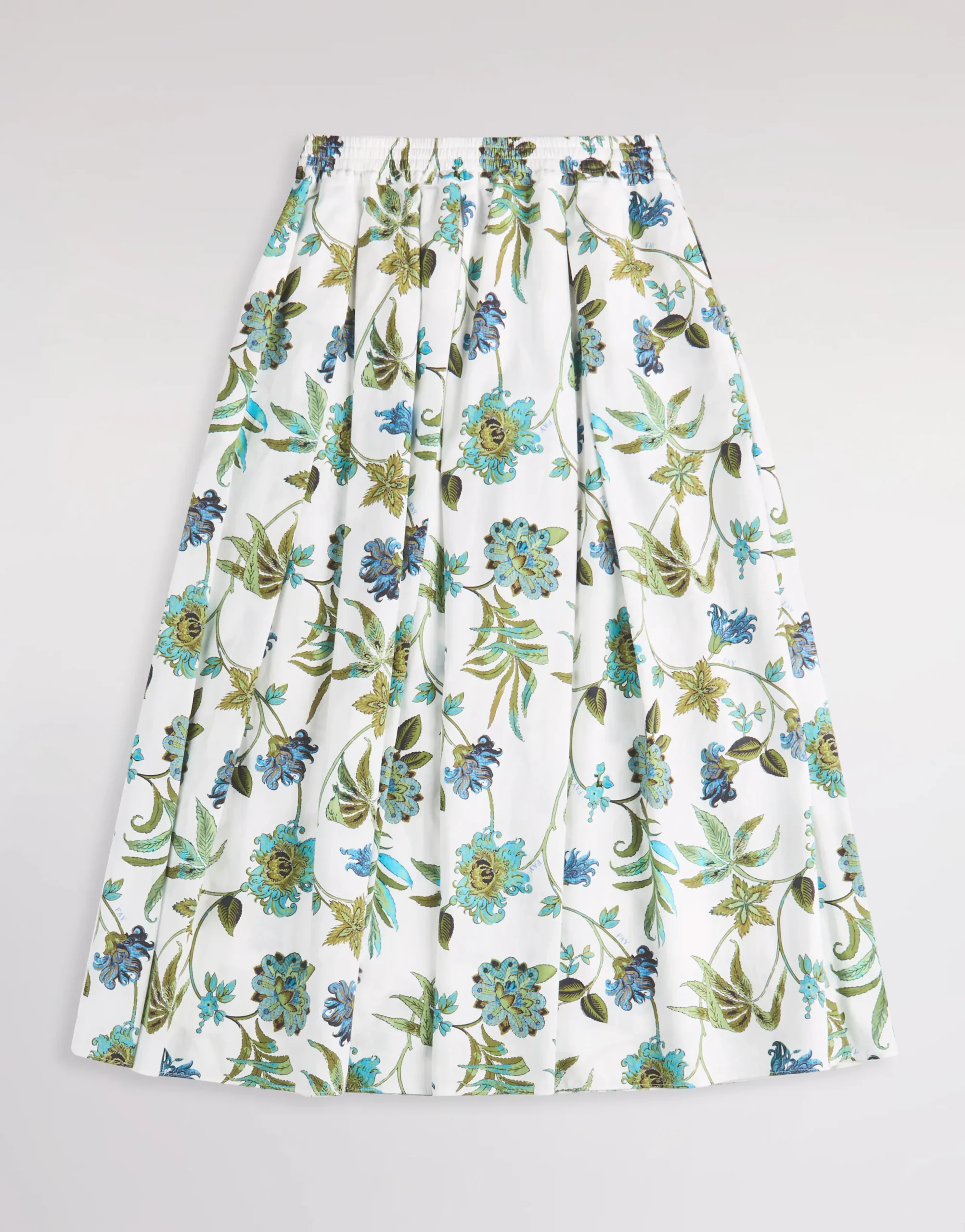 Falda larga regular fit realizada en popelín de algodón con estampado floral y logotipo Fay. El modelo presenta pliegues frontale y una práctica tira elástica en la cintura.