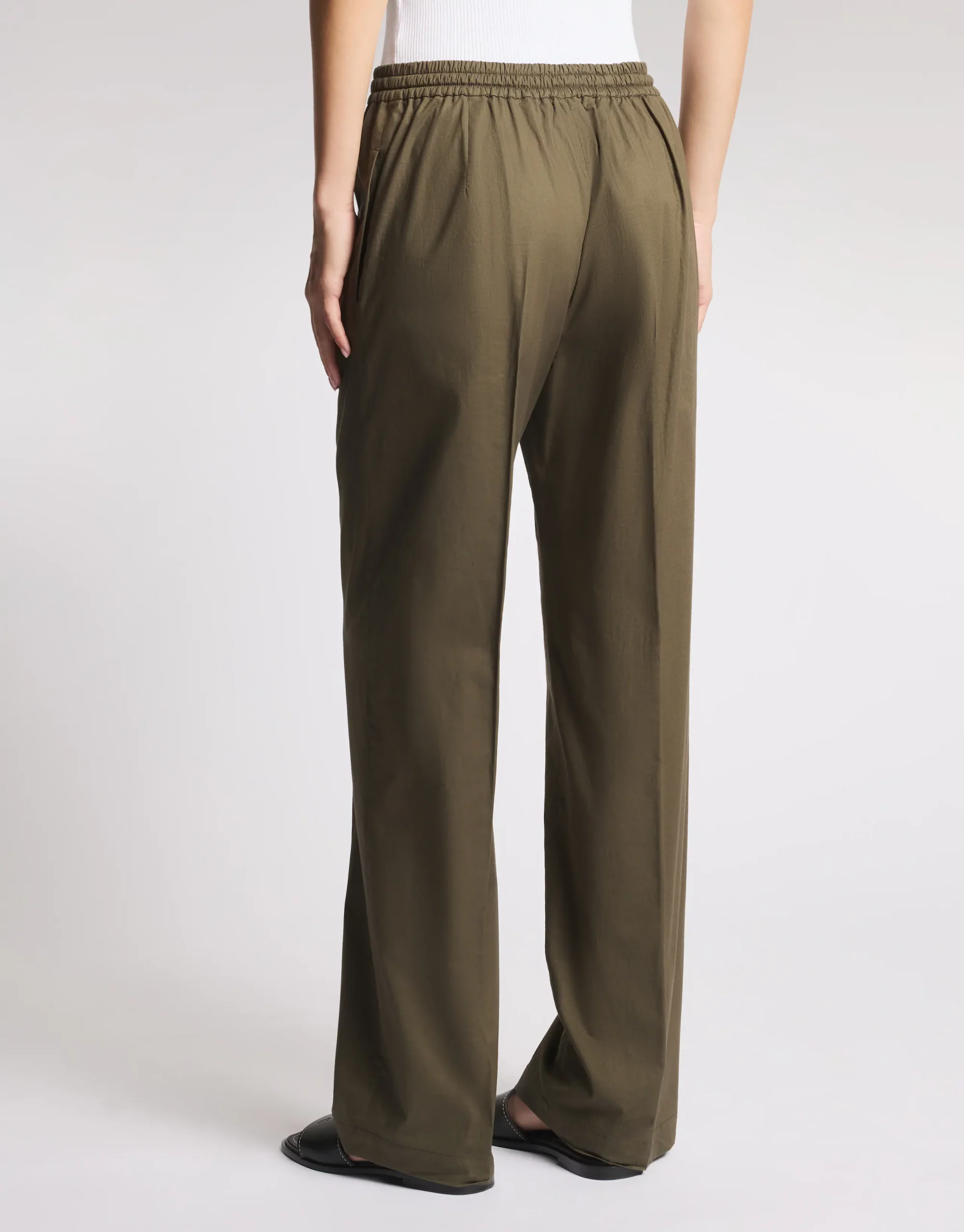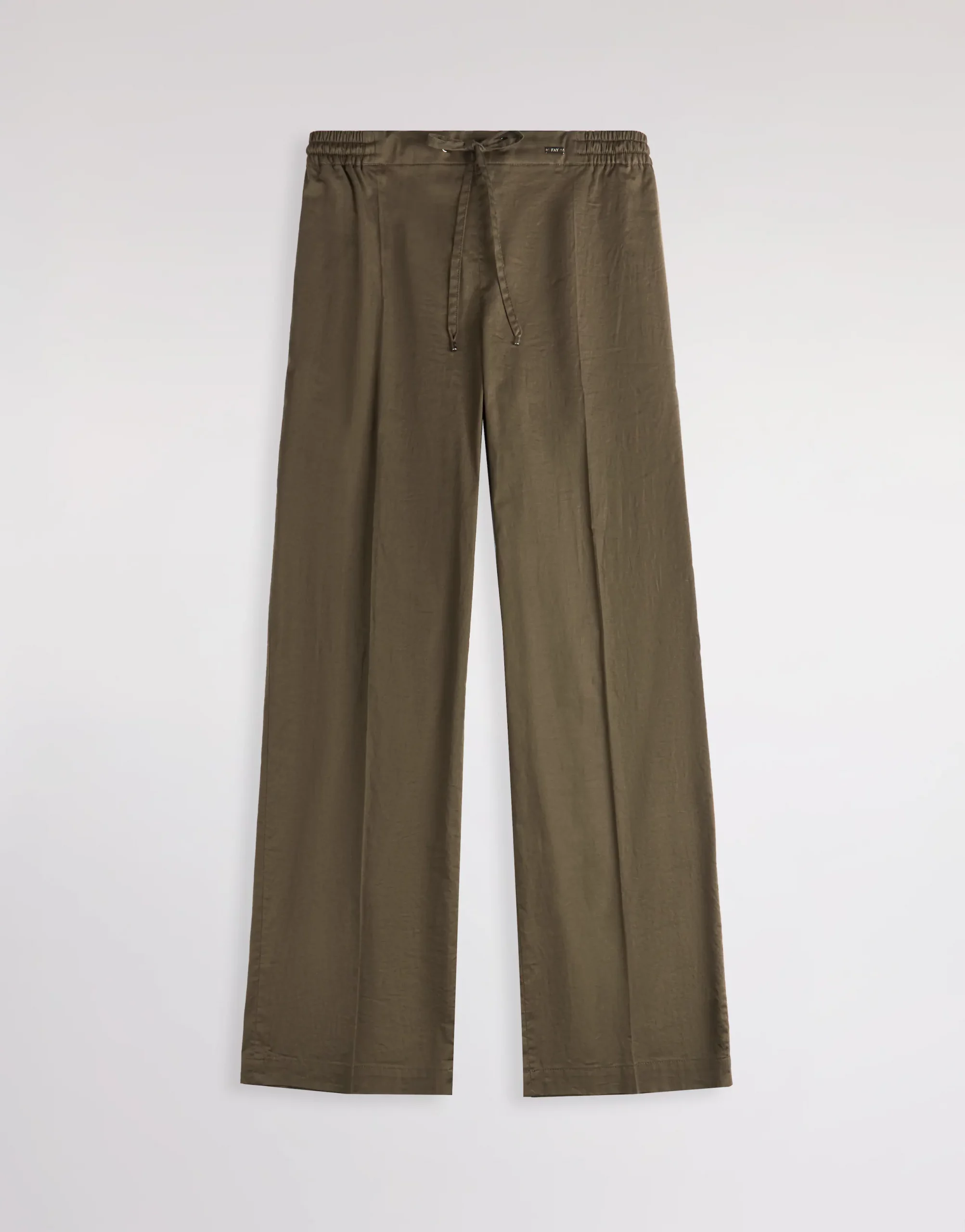Pantalones de corte recto realizados en popelín de algodón stretch, con pliegue planchado y pliegues. Presenta bolsillos frontales diagonales y una tira elástica en la cintura, se caracteriza por la placa en metal con logotipo Fay.