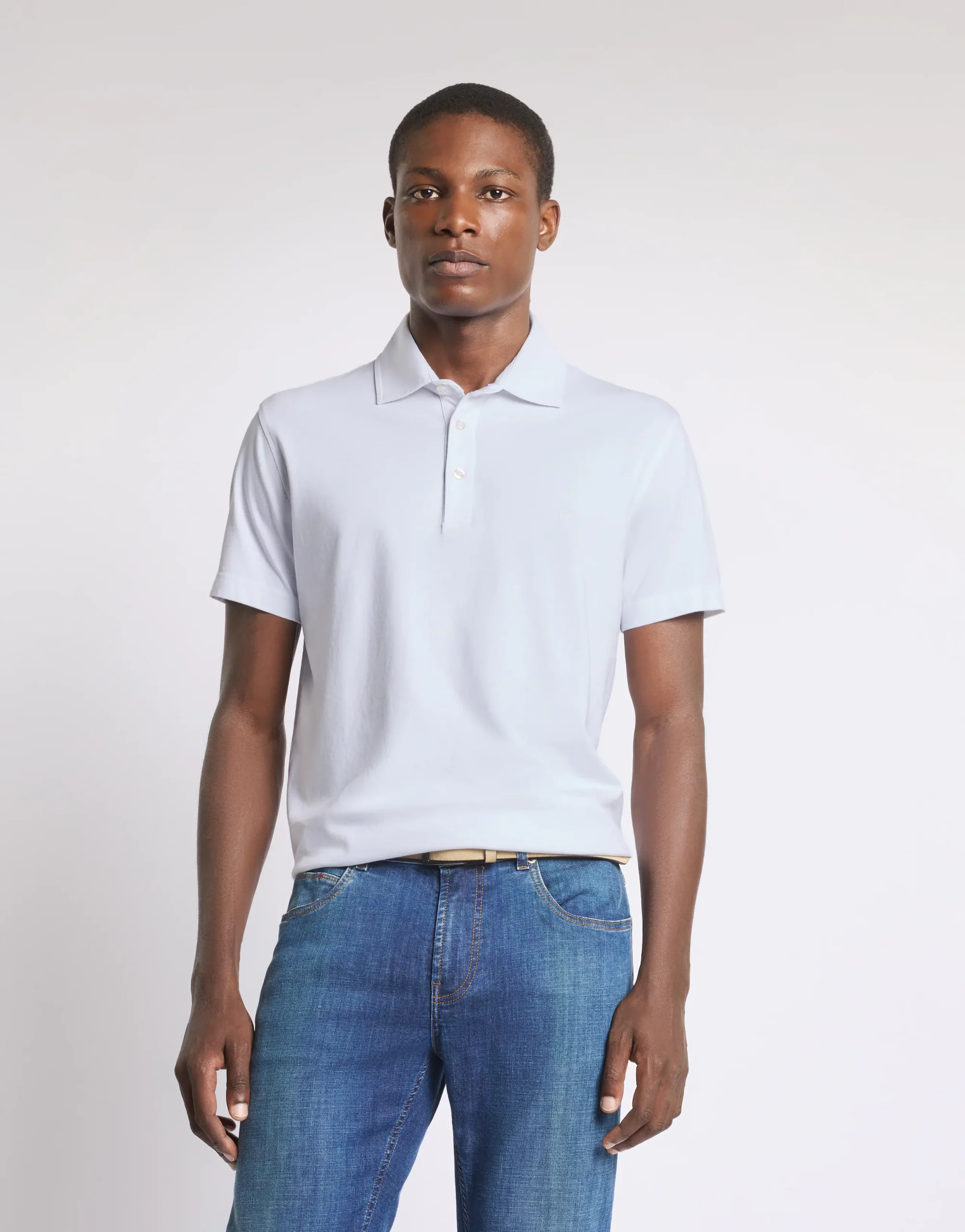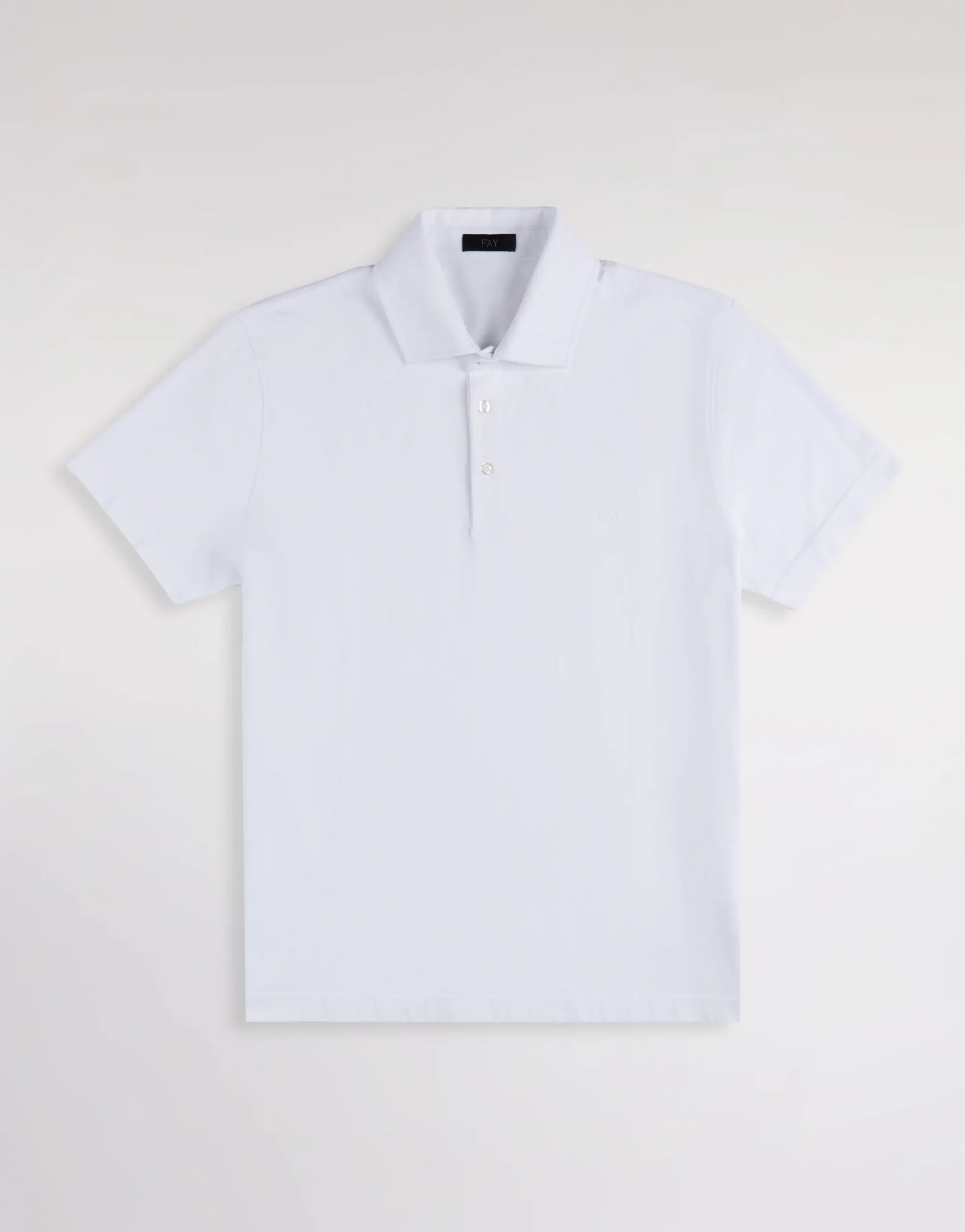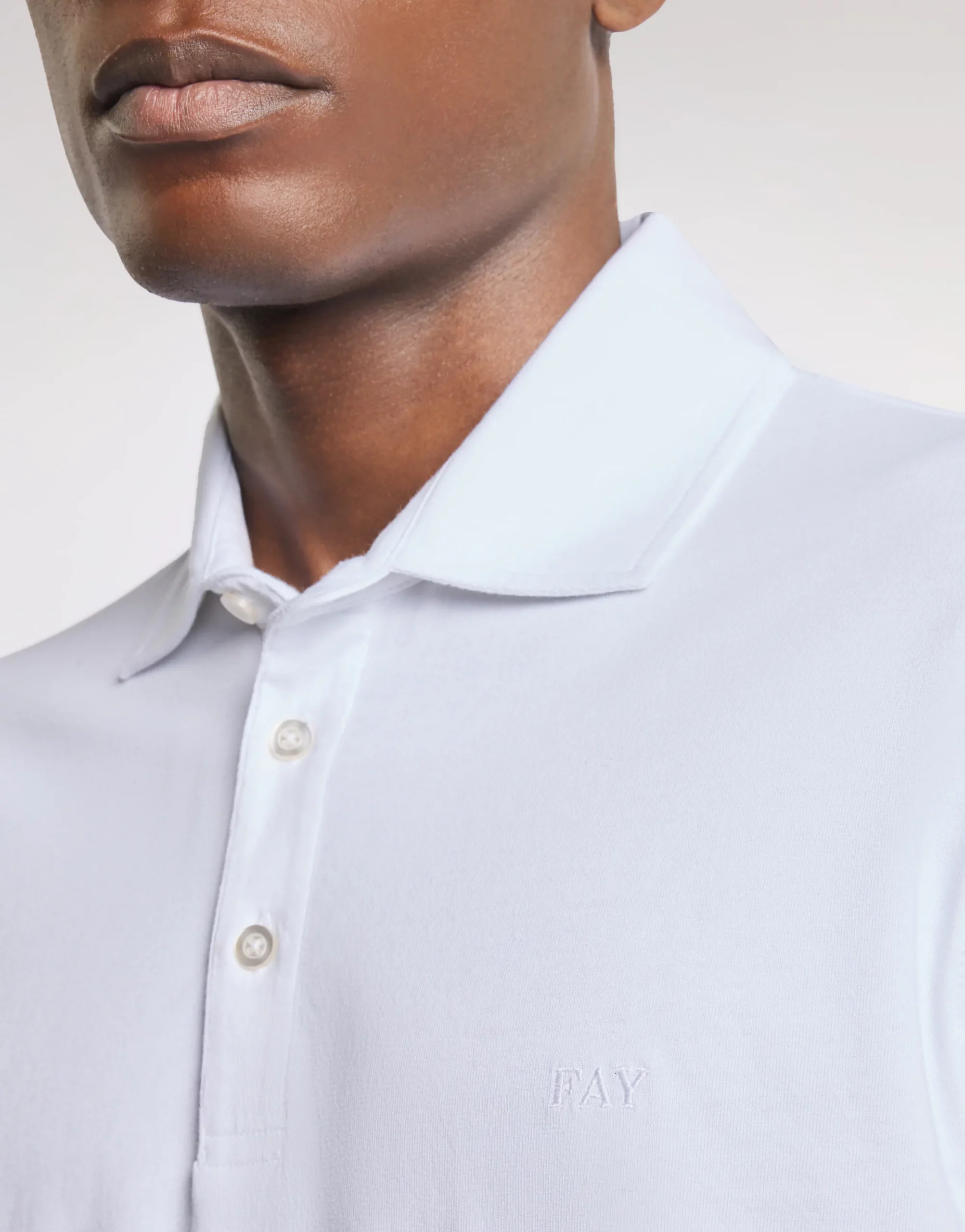 Polo de manga corta realizada en tejido jersey con tratamiento de teñido en prenda y efecto ligeramente descolorido. Presenta un cuello V con tres botones y logotip Fay bordado en el pecho.