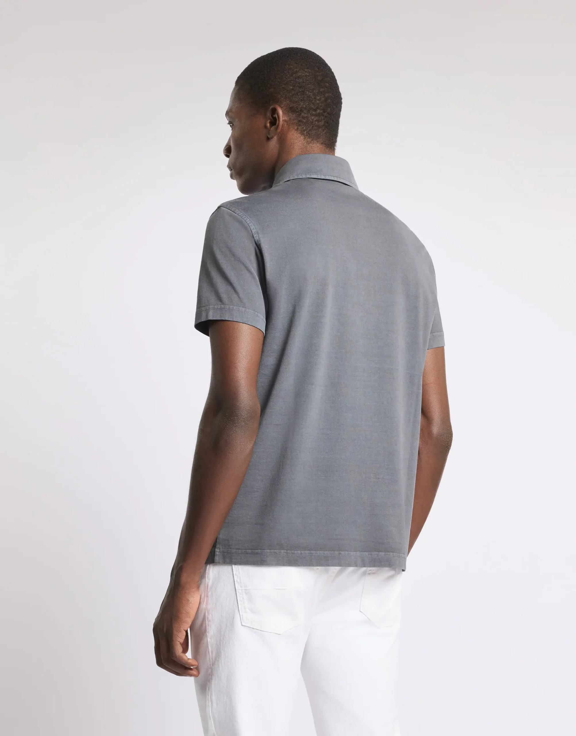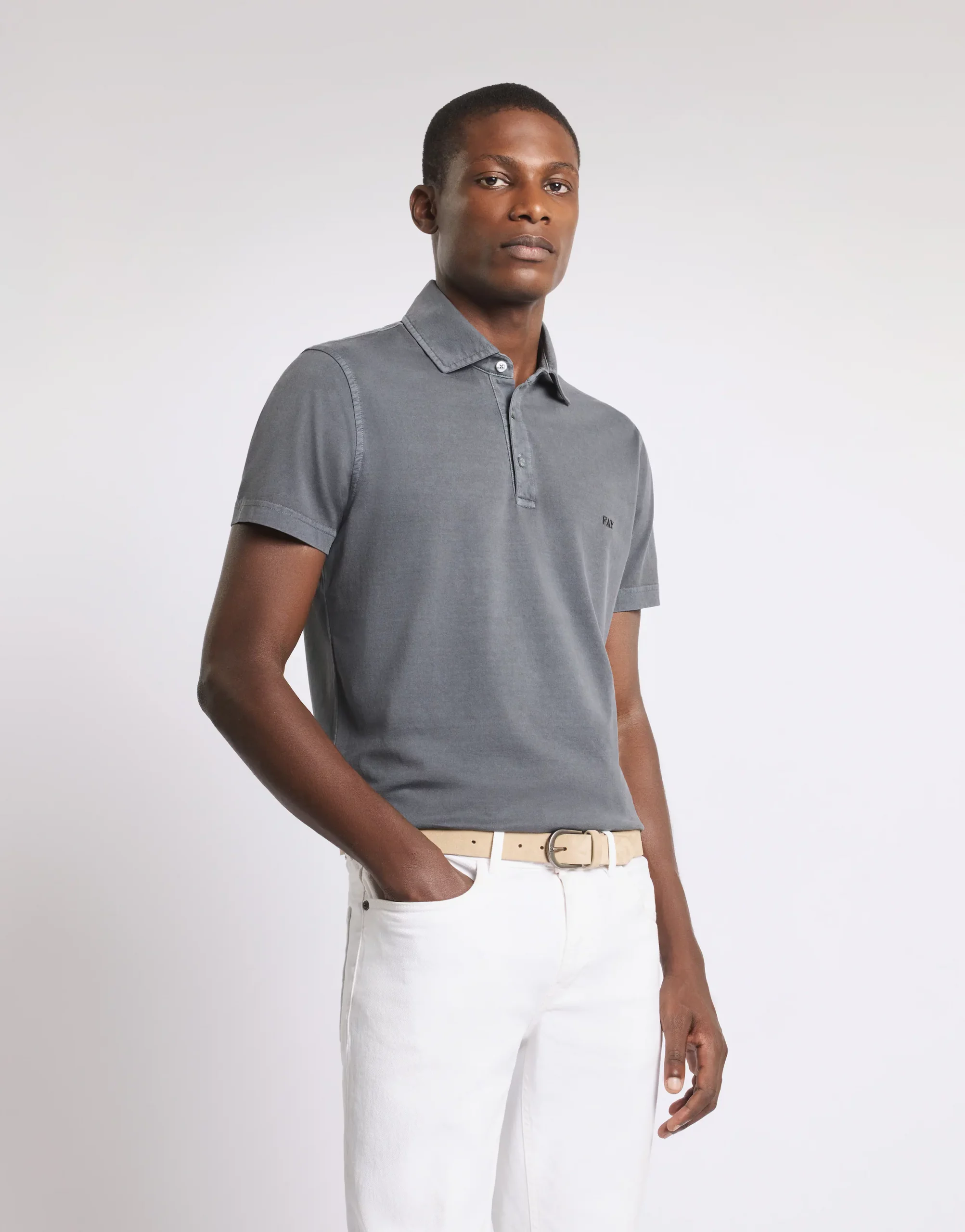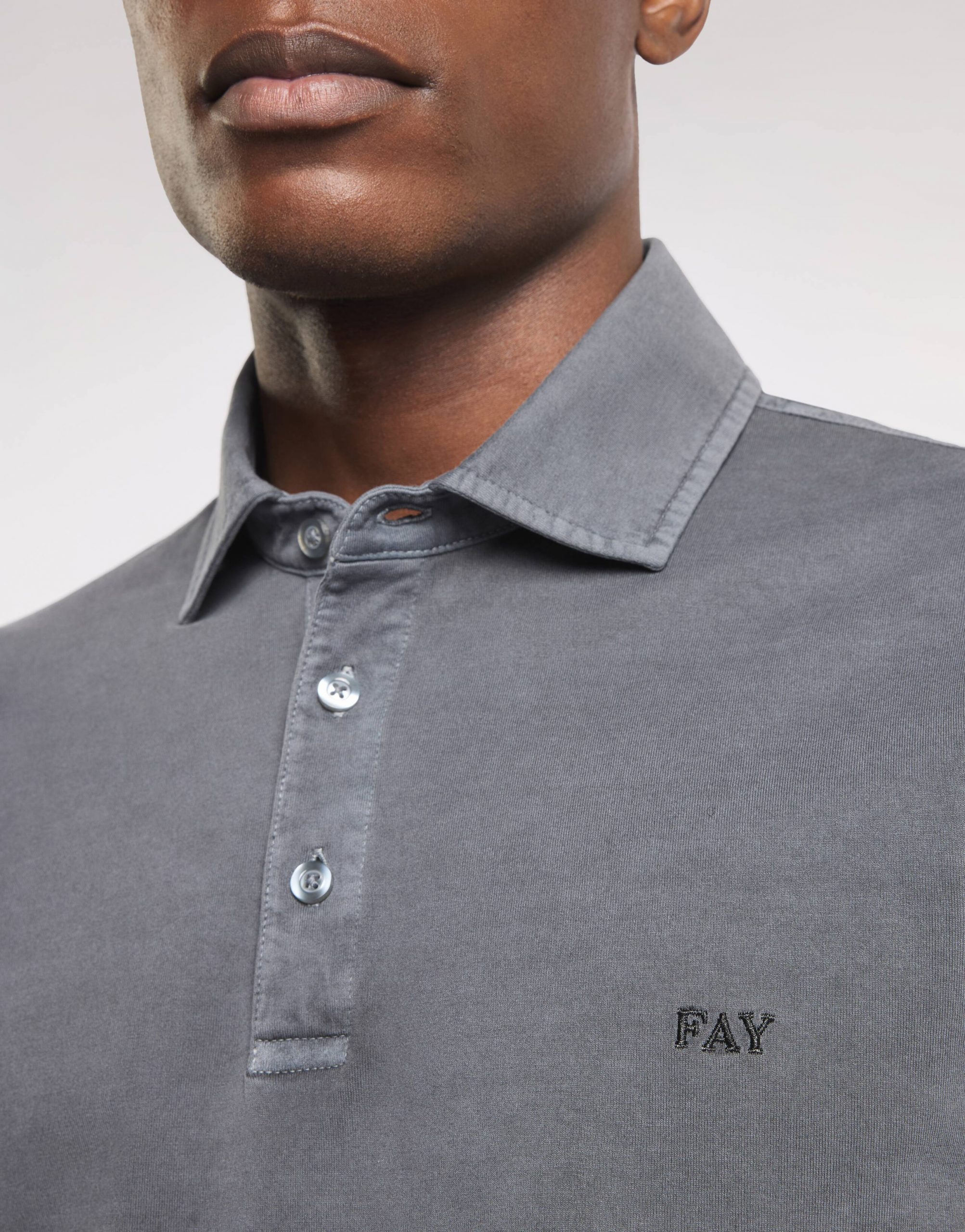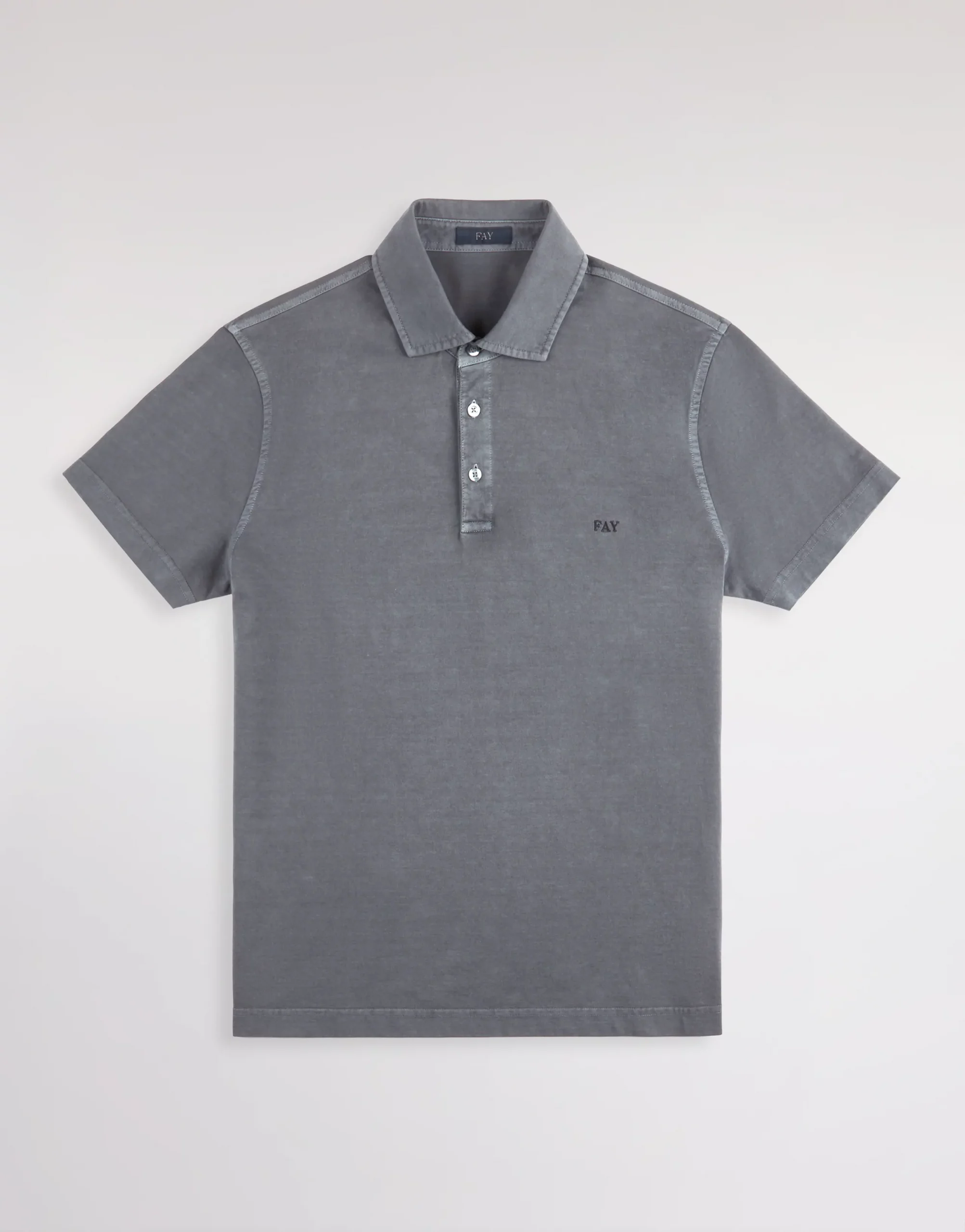 Polo de manga corta realizada en tejido jersey con tratamiento de teñido en prenda y efecto ligeramente descolorido. Presenta un cuello V con tres botones y logotip Fay bordado en el pecho.