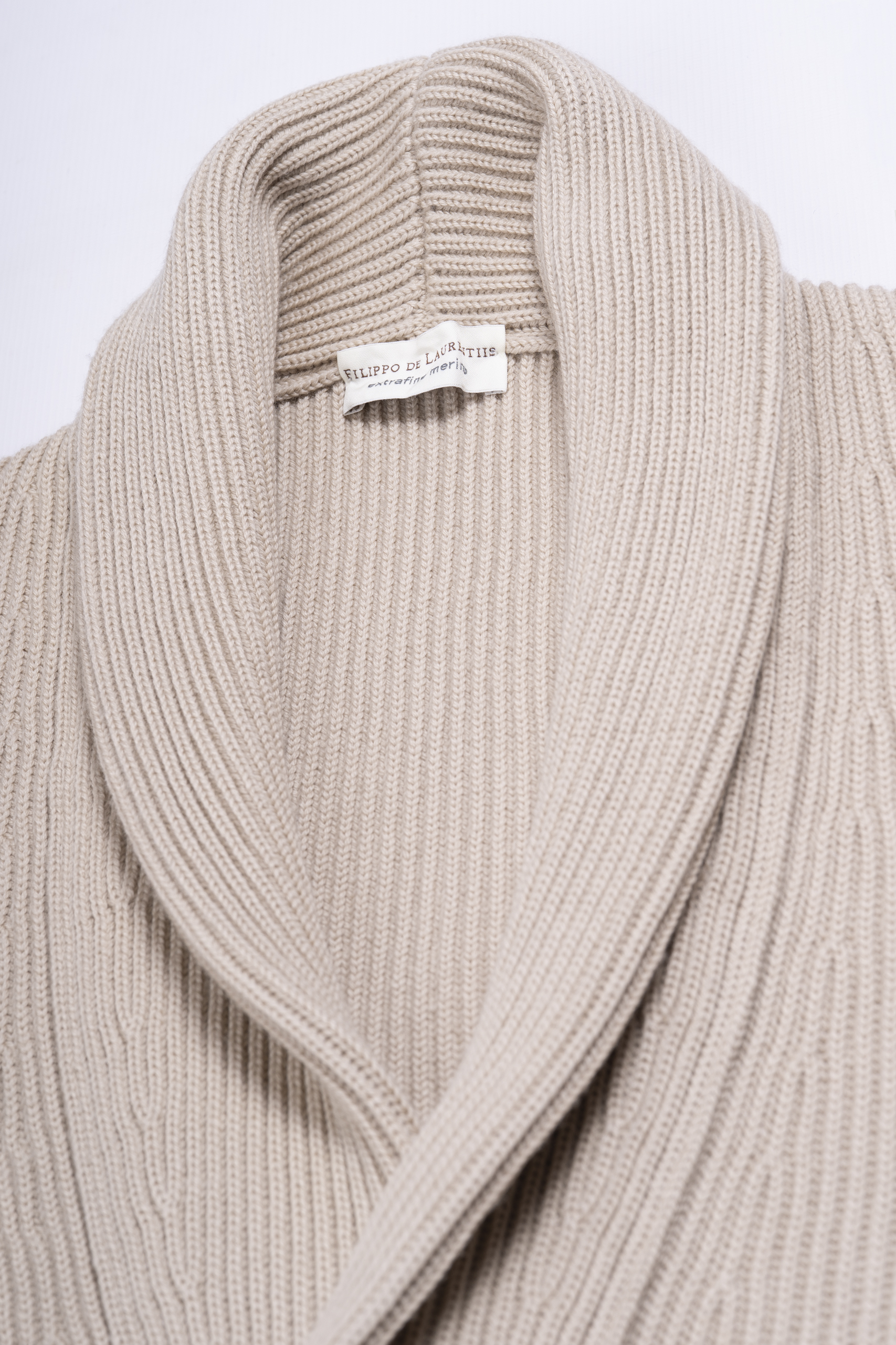 Chaqueta de punto, cuello smoking canalé extrafina cashmerino.