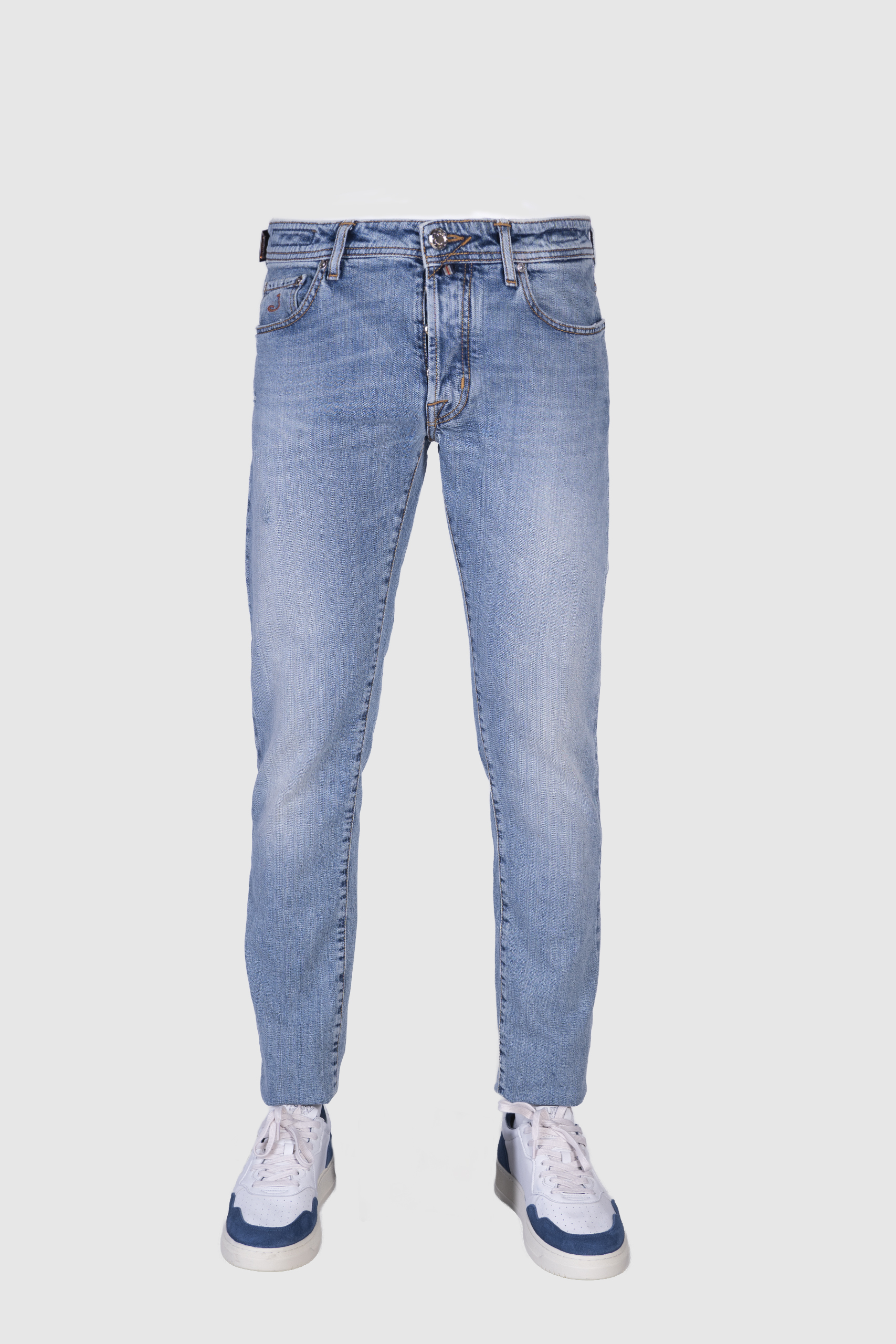 Este exclusivo jean de Jacob Cohen destaca por su diseño y detalles de alta calidad. El botón frontal ha sido creado en colaboración con Audemars Piguet, prestigiosa marca de relojes suizos, aportando un toque de lujo a la prenda.