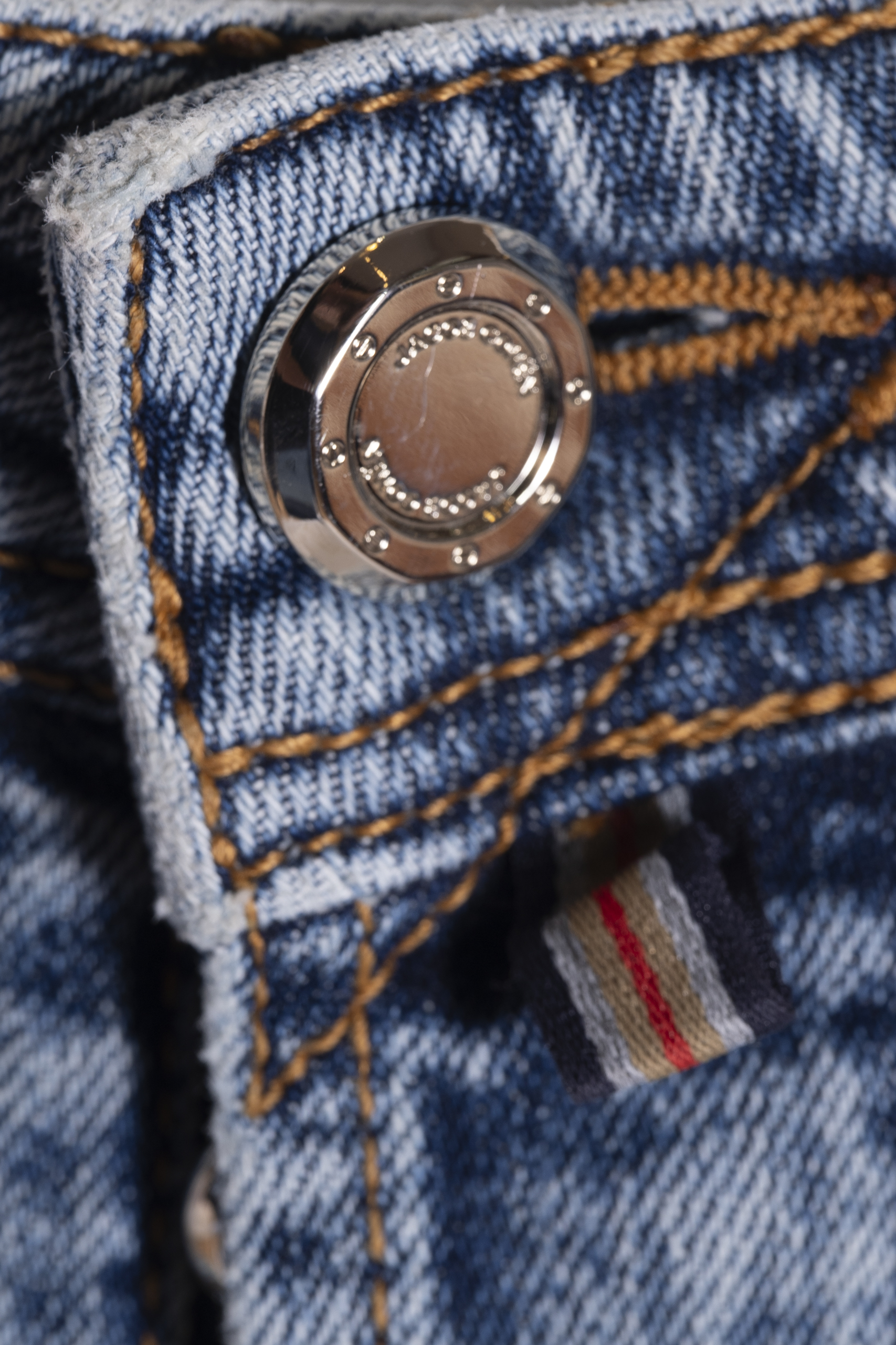 En el interior del pantalón, diversas etiquetas recuerdan las características únicas de este jean: “Luxury Denim”, “Limited Edition Denim”, y “Japanese Fabrics”.