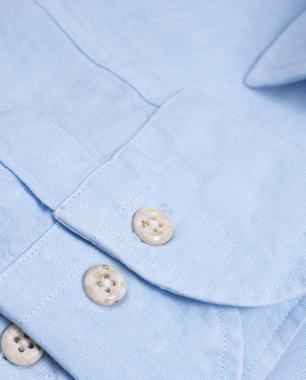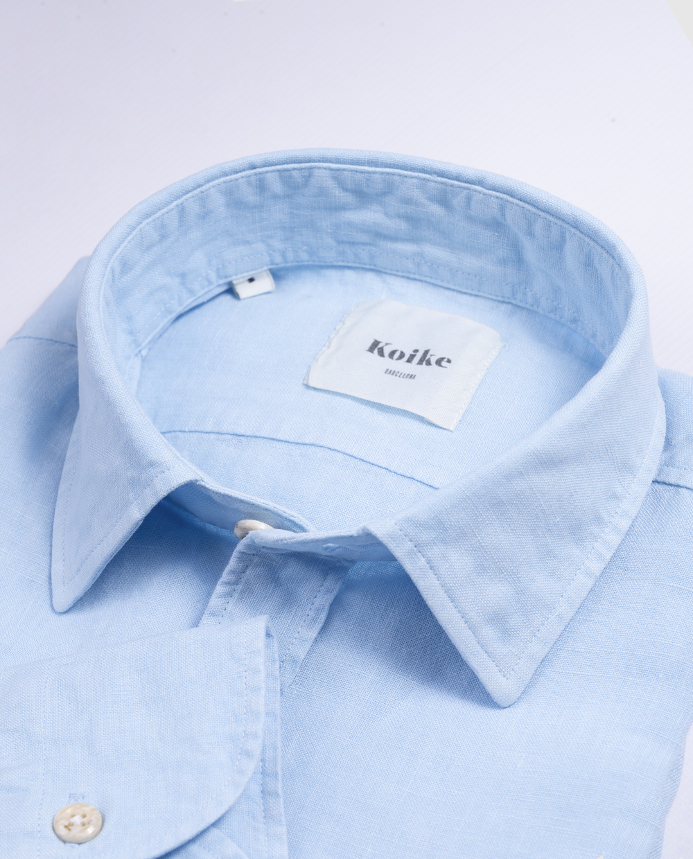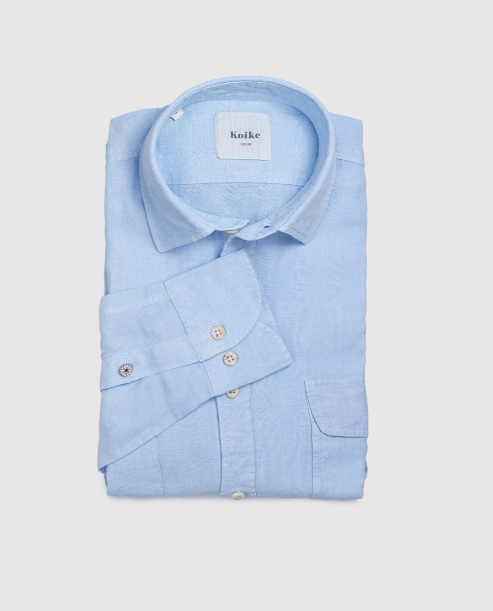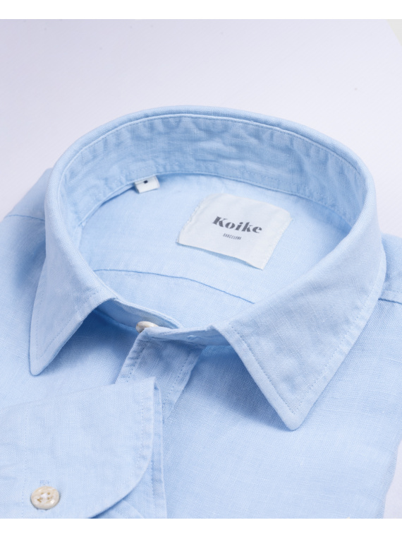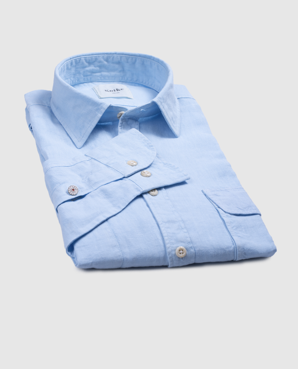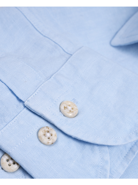 Camisa lino 100% con dos bolsillos en el pecho, vestibilidad slim fit.