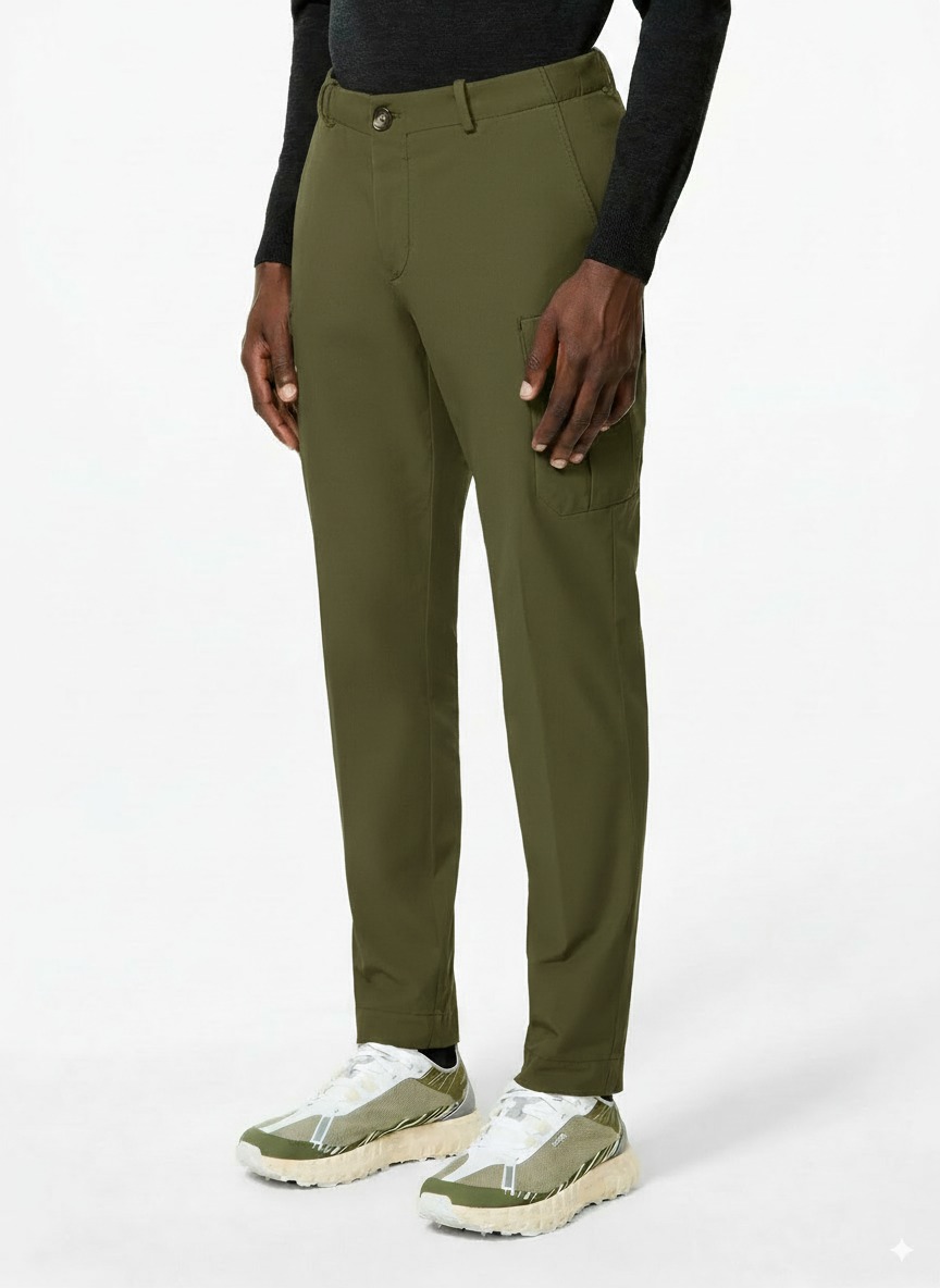Estos pantalones cargo combinan una elegancia relajada con un diseño funcional. Están confeccionados en lona de algodón elástica y teñidos en prenda para un sutil efecto desgastado. Su corte regular garantiza una comodidad natural, ideal para días ajetreados y tiempo libre. Detalles de inspiración sastre, como la tapeta con botones de cuerno oculta por la solapa frontal y los bolsillos laterales franceses, añaden un toque de sobriedad y elegancia. Bolsillos de fuelle en las perneras y bolsillos de ribete en la espalda, con detalles de Jacron en contraste, completan el diseño. El interior de la cinturilla luce el exclusivo estampado tono sobre tono del monograma Razzle Dazzle. El pantalón cargo Albert Wash es ideal para crear una variedad de looks casuales contemporáneos y combina a la perfección con las prendas de punto y las prendas de abrigo de inspiración urbana de la colección.