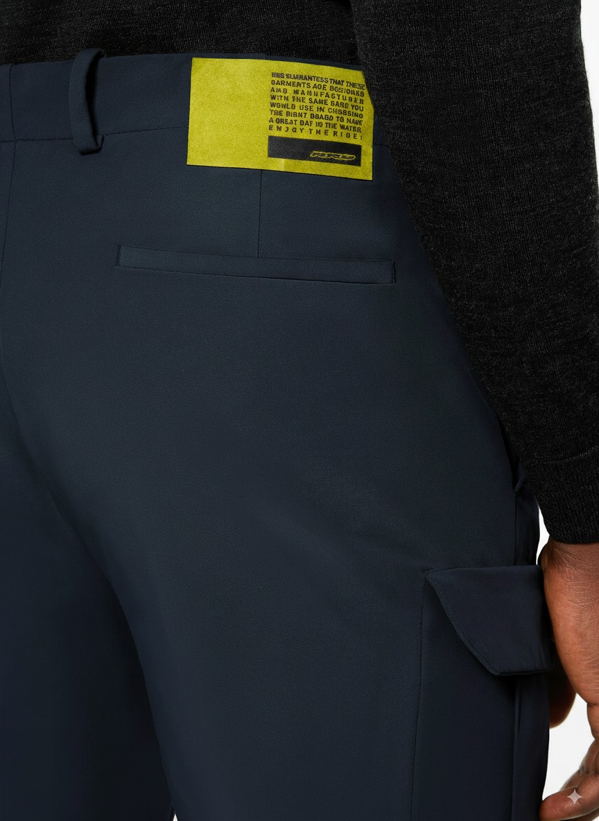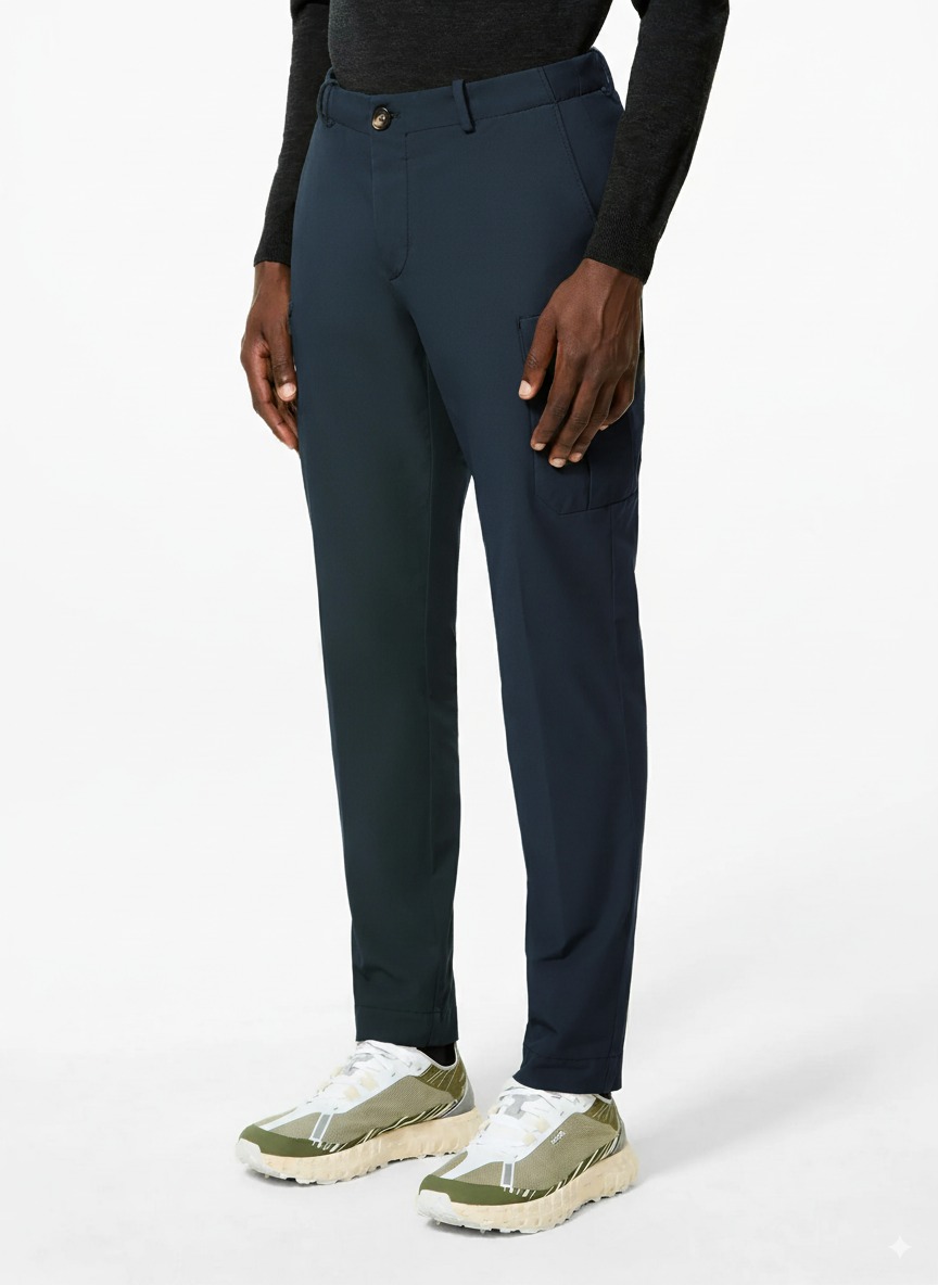 Estos pantalones cargo combinan una elegancia relajada con un diseño funcional. Están confeccionados en lona de algodón elástica y teñidos en prenda para un sutil efecto desgastado. Su corte regular garantiza una comodidad natural, ideal para días ajetreados y tiempo libre. Detalles de inspiración sastre, como la tapeta con botones de cuerno oculta por la solapa frontal y los bolsillos laterales franceses, añaden un toque de sobriedad y elegancia. Bolsillos de fuelle en las perneras y bolsillos de ribete en la espalda, con detalles de Jacron en contraste, completan el diseño. El interior de la cinturilla luce el exclusivo estampado tono sobre tono del monograma Razzle Dazzle. El pantalón cargo Albert Wash es ideal para crear una variedad de looks casuales contemporáneos y combina a la perfección con las prendas de punto y las prendas de abrigo de inspiración urbana de la colección.