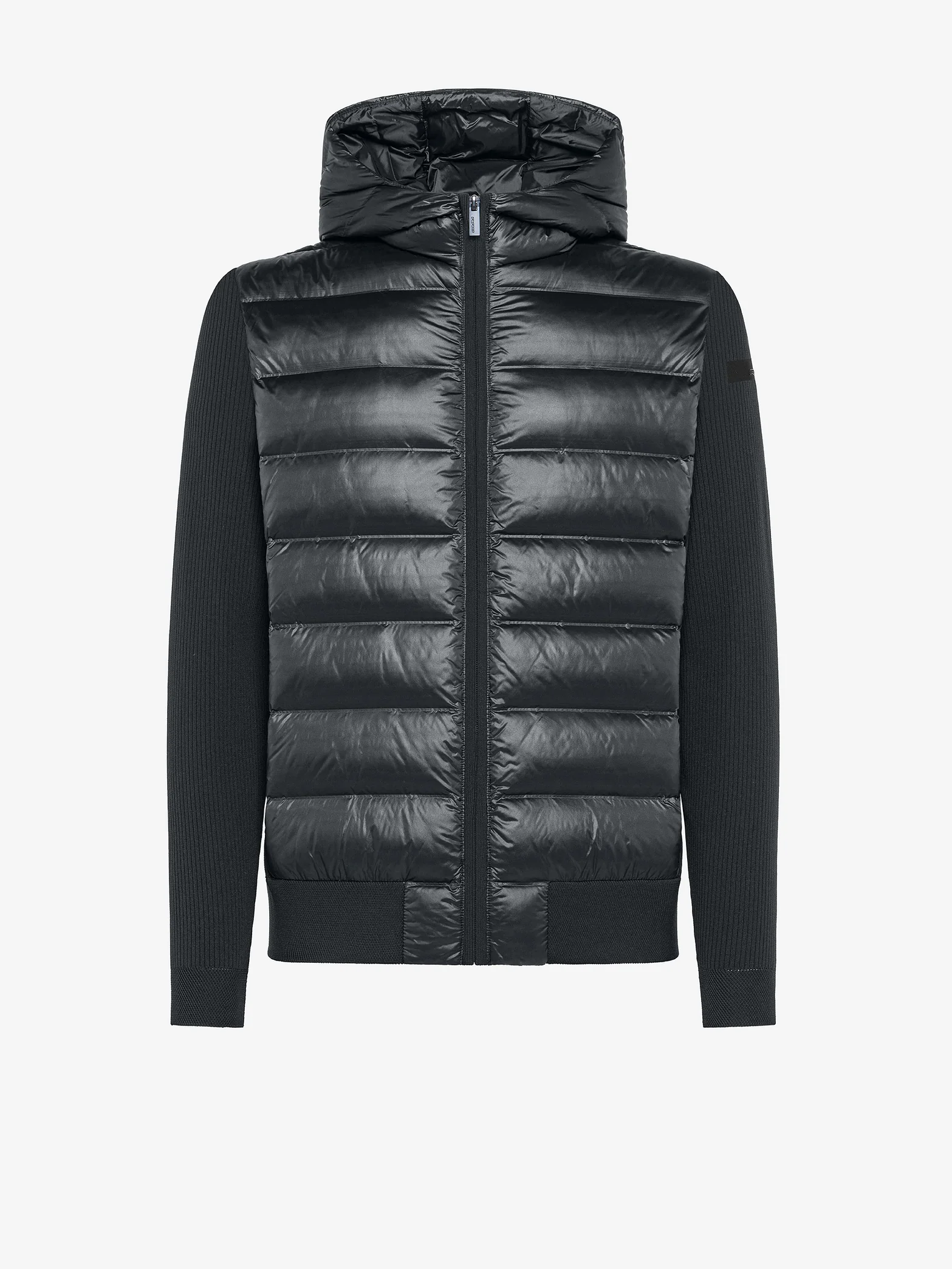 El diseño contemporáneo y el estilo urbano distintivo de este suéter de manga larga son el resultado de una construcción compuesta de alta tecnología que ofrece una refinada interacción de tejidos y acabados en contraste. Una prenda clave para el entretiempo, el Amos Perlupin Duck Hood Zip Knit destaca por su cuerpo tubular y capucha fija, relleno de un ligero y suave relleno de 90% plumón de pato. Sin costuras visibles, su textura sin costuras realza las líneas limpias y las mangas de fino punto elástico de canalé inglés. La parte delantera presenta una cremallera de espiral que se extiende para cerrar el cuello y la capucha; también cuenta con dos bolsillos laterales con cremalleras invisibles. Los puños y el bajo de punto elástico de canalé inglés crean un ajuste regular. El interior cuenta con un pequeño bolsillo con doble ribete naranja. La comodidad y la versatilidad son los puntos fuertes de esta incisiva creación de ocio, ofrecida en los tonos oscuros de la temporada y completada por el logotipo RRD negro microinyectado en la manga izquierda.