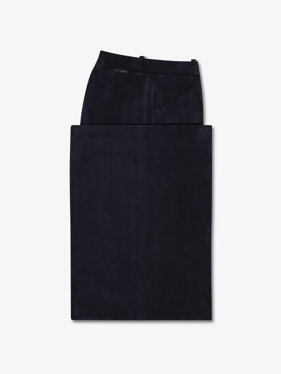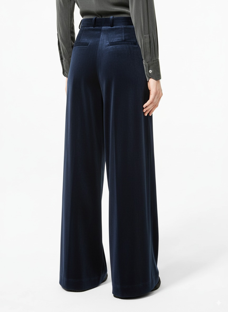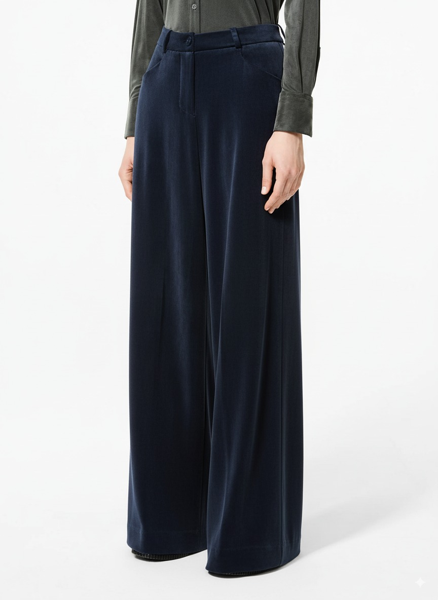 Estos pantalones palazzo encarnan la elegancia en su máxima expresión. Con una silueta amplia y fluida, se adaptan con naturalidad al cuerpo, logrando el equilibrio perfecto entre comodidad y estilo. Confeccionados con el Cupro más fino, un tejido natural de tacto sedoso y una ligereza impalpable, son una prenda esencial de cualquier armario contemporáneo. Los bolsillos de estilo francés se integran con inteligencia en el diseño, realzando su cuidado estilo. La cintura alta, inspirada en el corte refinado de los años 60, estiliza la figura y realza la silueta. Estos pantalones versátiles y distintivos se adaptan a una amplia gama de estilos, desde el glamour sofisticado hasta el chic deportivo actual. Combínalos con el jersey de cuello alto con estampado geométrico de la colección para crear un conjunto elegante y con carácter.