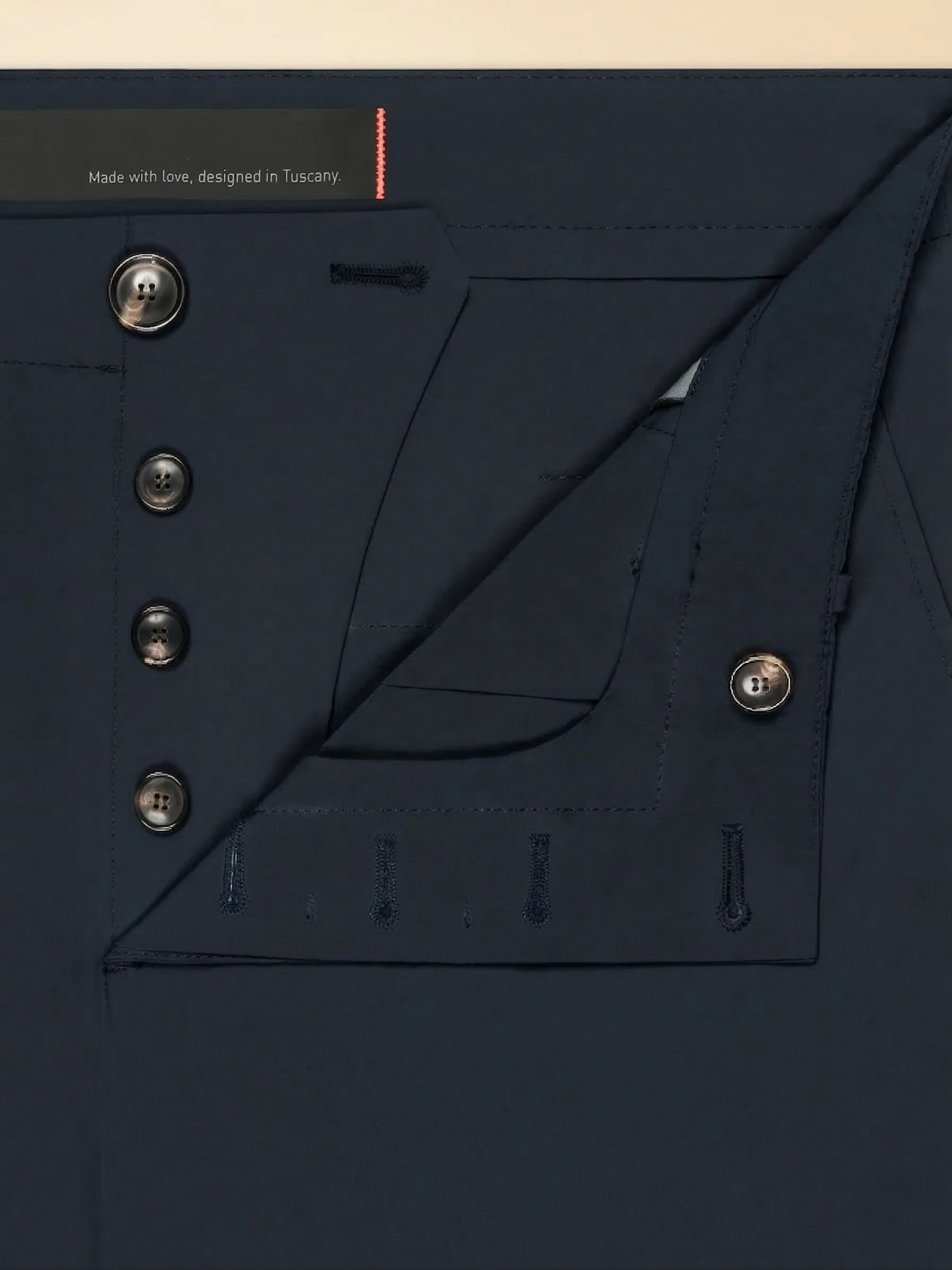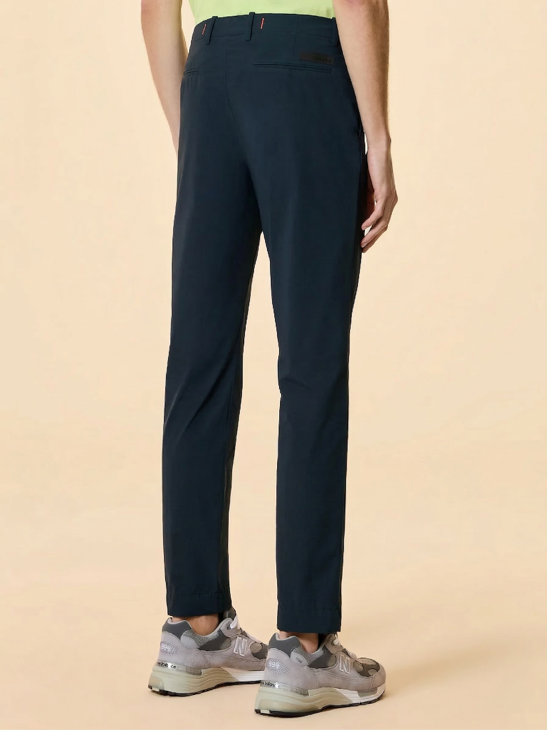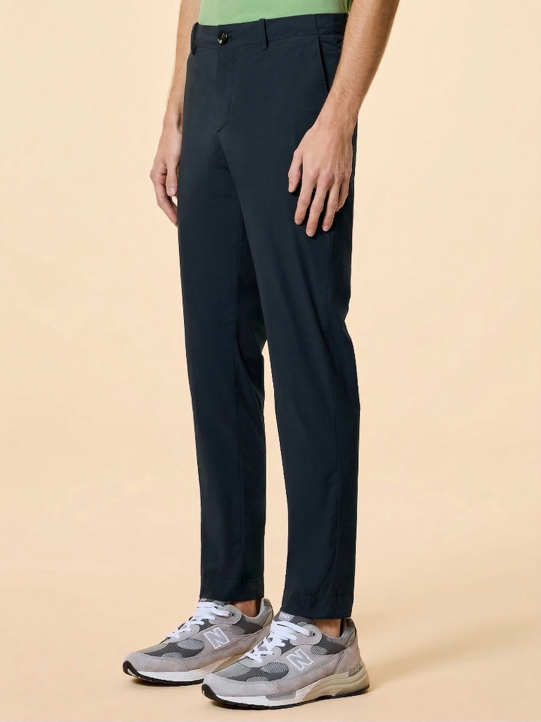 Estos pantalones dinámicos y versátiles capturan el espíritu de la temporada con un carácter ligero y alegre. El estilo ajustado de tiro medio está confeccionado en nailon elástico ultraligero con un sutil acabado desgastado que le confiere un carácter único. Su transpirabilidad, resistencia a las arrugas y la ausencia de necesidad de planchado se combinan para brindar una comodidad óptima y un rendimiento impecable en los días de verano. La cinturilla y el cierre frontal se abrochan con finos botones de cuerno, ocultos por una solapa. Los bolsillos laterales franceses combinan con los bolsillos traseros ribeteados, que se realzan con el accesorio en el cinturón interior y el distintivo logotipo negro microinyectado. Su estilo versátil es perfecto para un look dinámico e informal. Combínalo con una camiseta y una chaqueta de verano de la colección para lucir con estilo en tu tiempo libre.