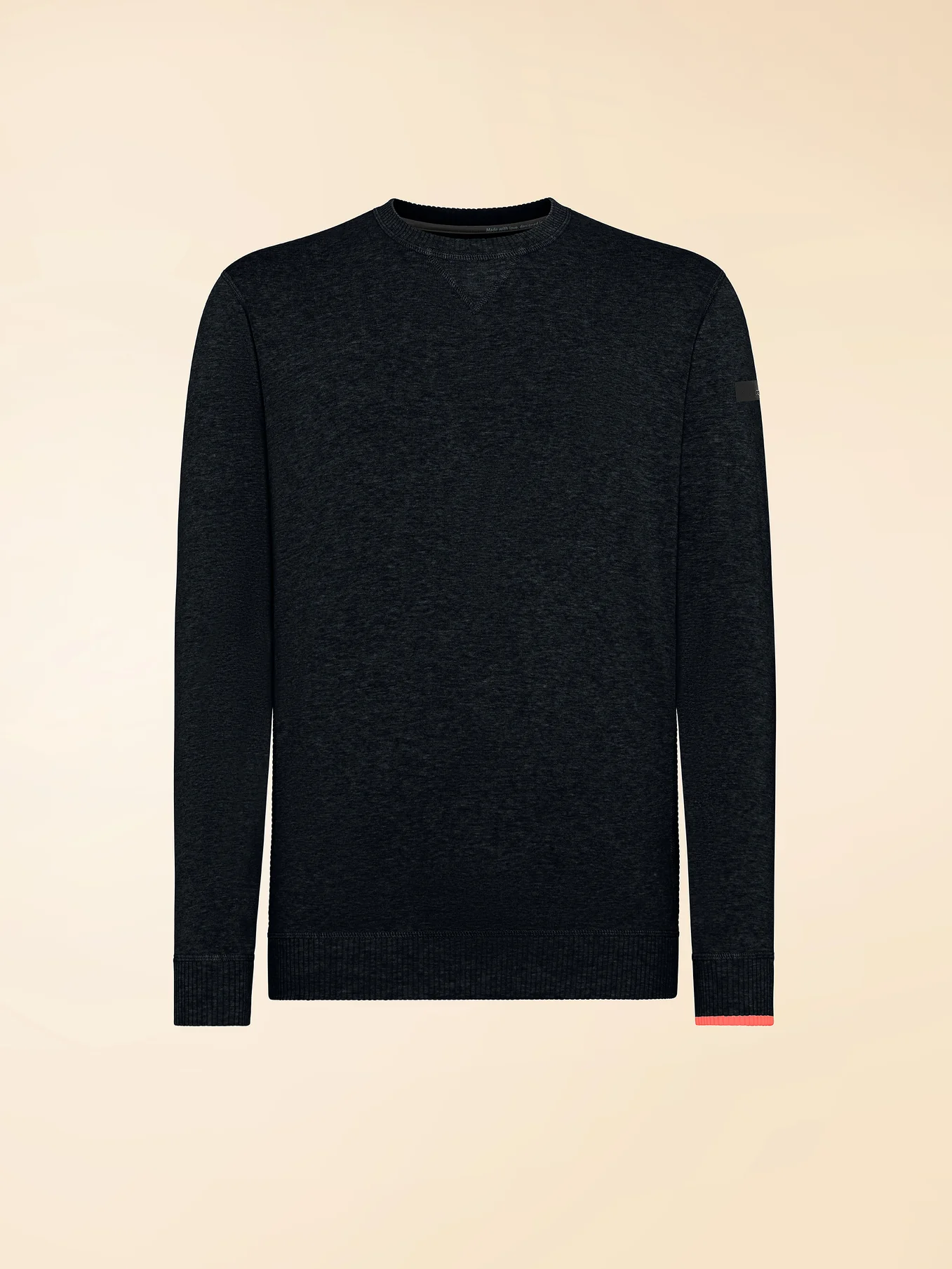 Esta sudadera monocromática de cuello redondo luce un hilo de algodón natural de alta torsión ultrafino, suave y uniforme. Las inserciones elásticas acanaladas en los laterales definen la silueta, logrando un sofisticado equilibrio entre comodidad y estructura. El ribete en el cuello, los puños y el bajo refinan el corte clásico. El ribete naranja brillante en el puño izquierdo y en el bajo trasero añade un toque de color inesperado, aportando un atractivo contemporáneo y distintivo. El logotipo negro microinyectado en la manga izquierda completa la prenda con un toque emblemático. El tejido Fleece Round Knit combina a la perfección con el jersey o con cualquier pantalón de cinco bolsillos de la colección, definiendo un estilo urbano esencial y sofisticado.