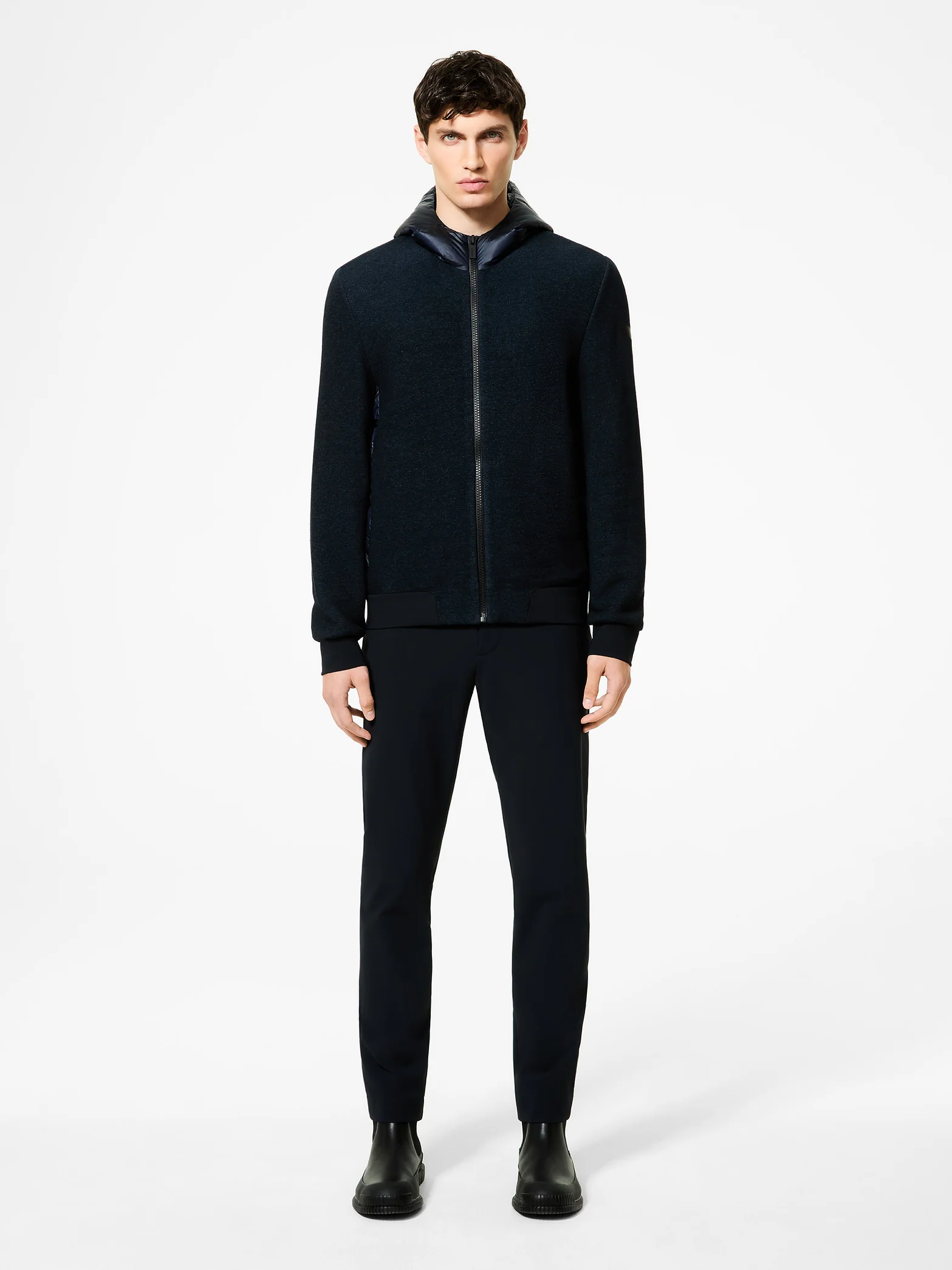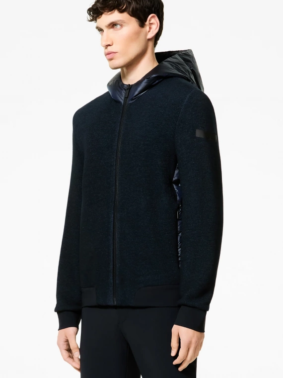 Diseñado para afrontar los cambios de temporada con estilo y protección, este forro polar estructurado con capucha acolchada fija es el aliado ideal para los viajeros urbanos en constante movimiento.