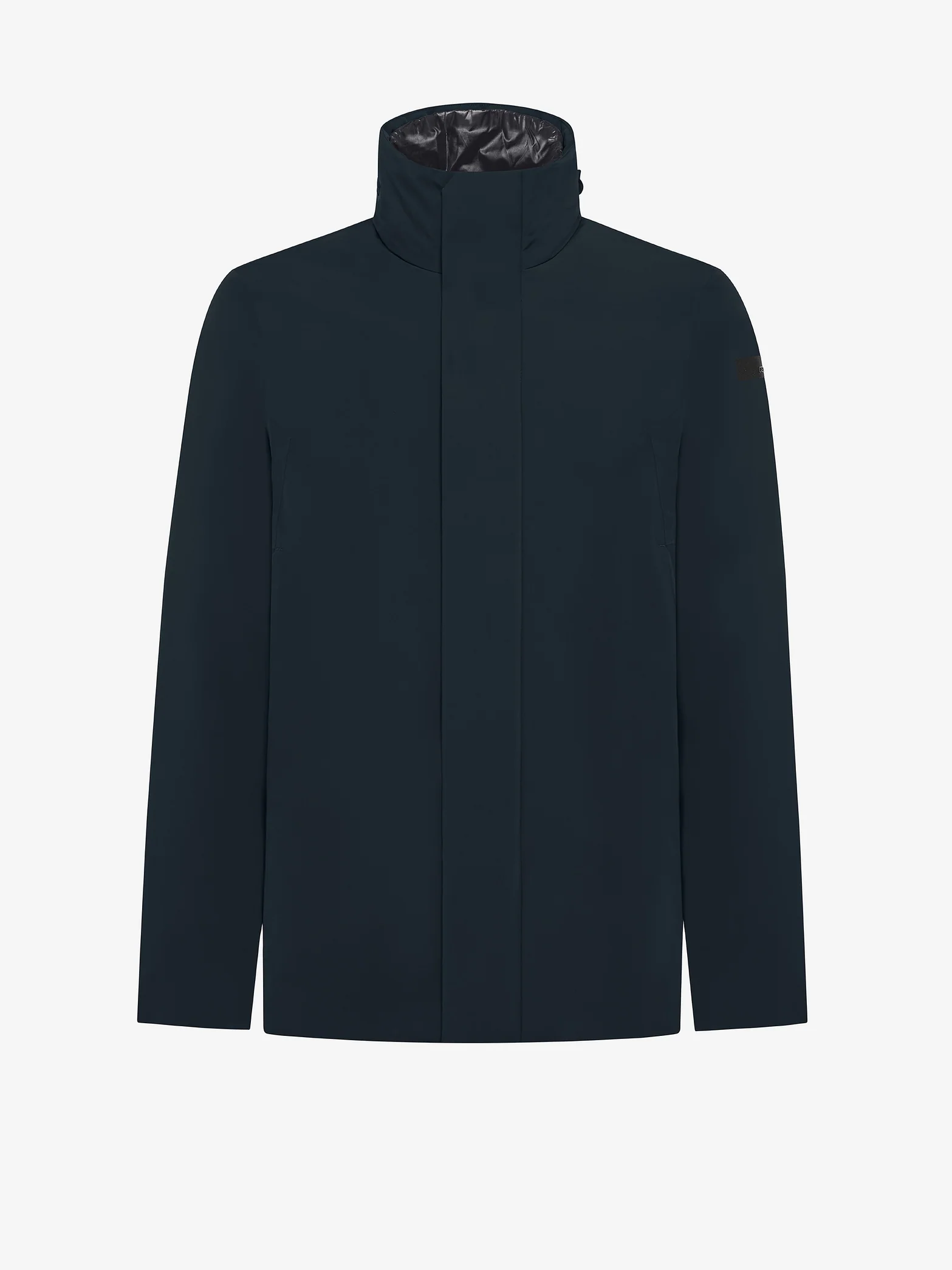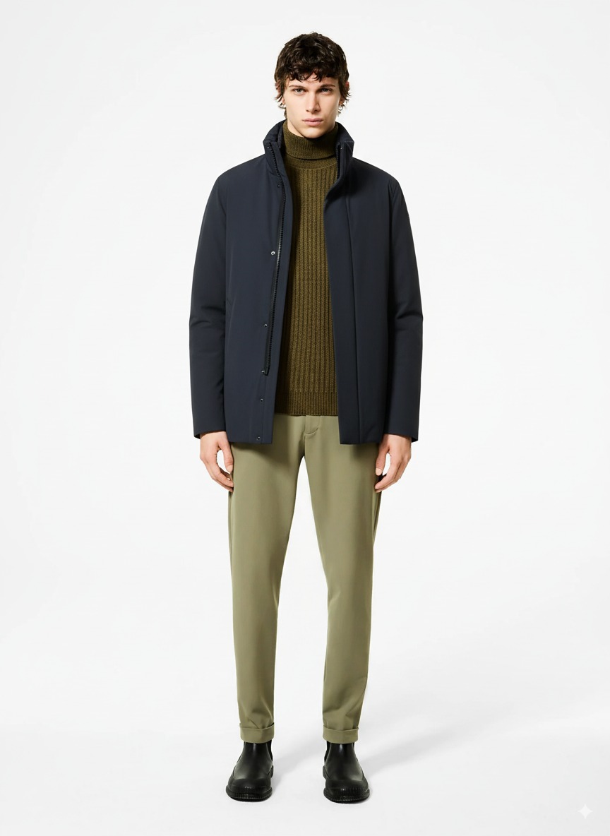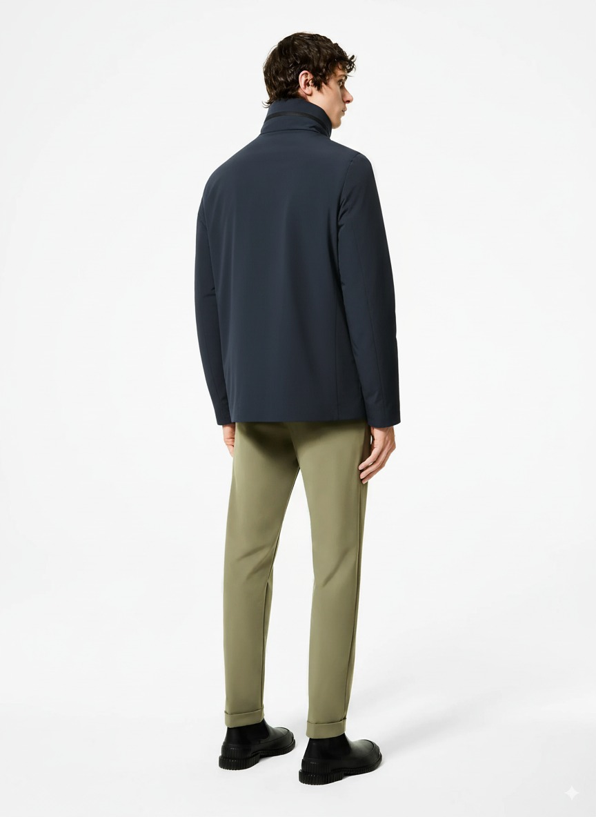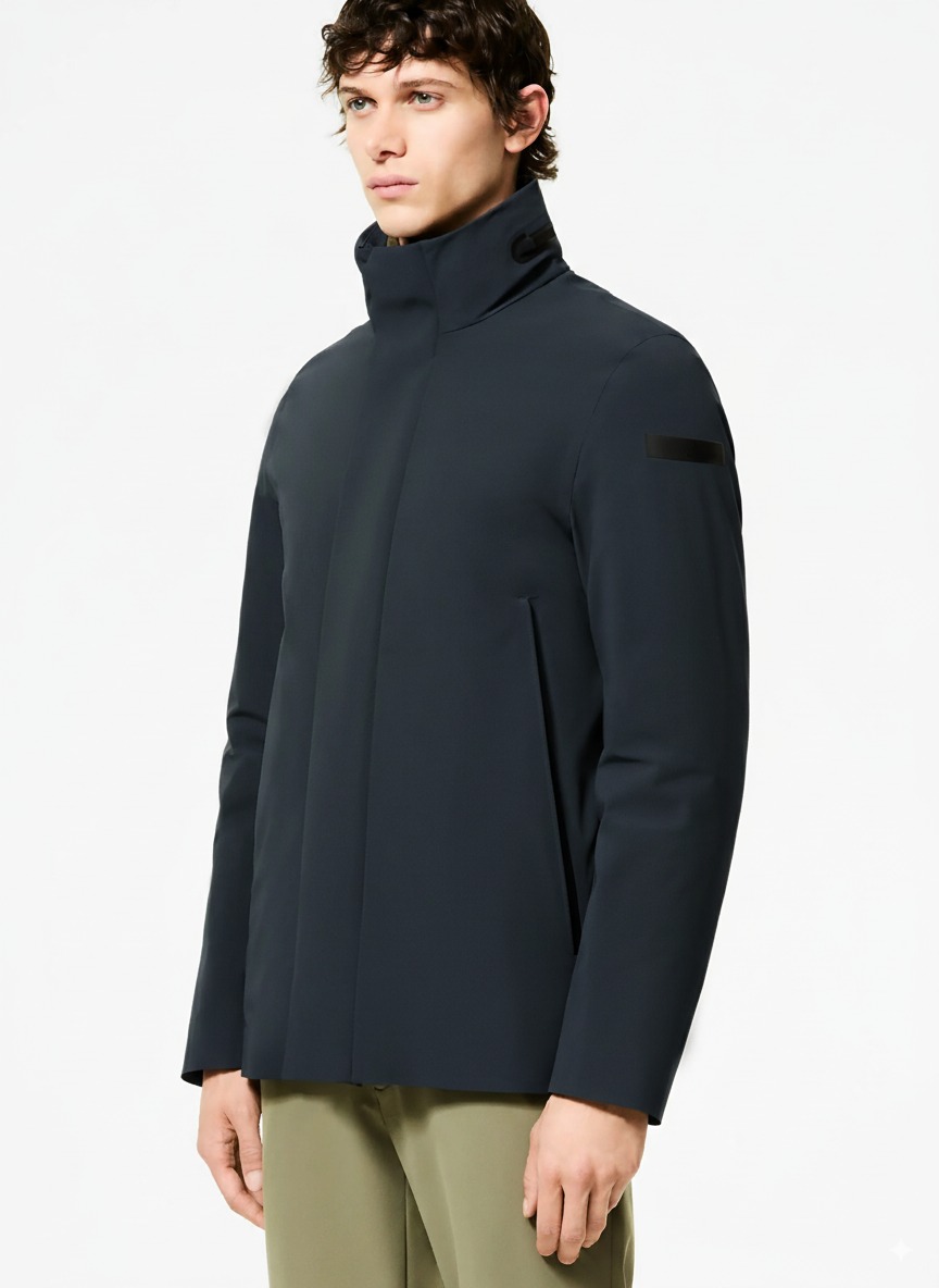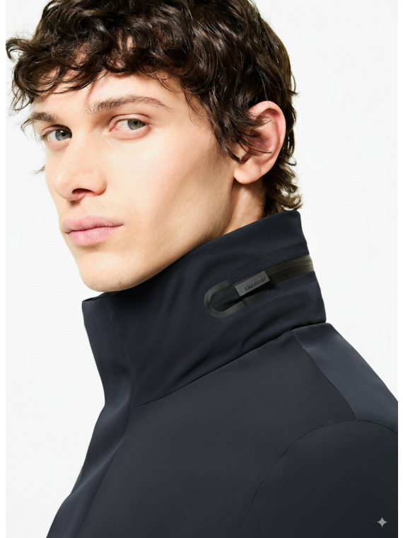 El diseño de esta chaqueta de campo invernal trasciende la inspiración militar para convertirse en una prenda versátil, minimalista y ajustada. El aspecto mate del tejido transpirable Stratofabric#3 con revestimiento Montecristo y construcción Laser Glue Lock, sin costuras, realza su estética limpia y su resistencia a la lluvia y al viento. Cuando es necesario, la capucha en el cuello alto proporciona protección adicional para la cabeza. En la parte delantera, la tapeta con botones a presión oculta la cremallera metálica de doble cursor termosellada, flanqueada por dos amplios y prácticos bolsillos laterales sin rematar, con cierres de cremallera recubiertos y pegados. El suave relleno de plumón de pato 90/10, contenido en el tubo cuadrado del exclusivo sistema Floating Shield, garantiza aislamiento del frío, comodidad y un ajuste recto e impecable. El doble ribete naranja en el bolsillo interior del pecho, la etiqueta en forma de corazón “Hecho con amor, diseñado en Toscana” y el logotipo negro microinyectado en la manga izquierda son los toques icónicos que completan esta prenda de abrigo tan contemporánea.