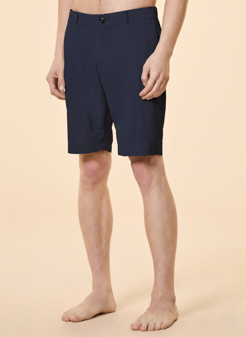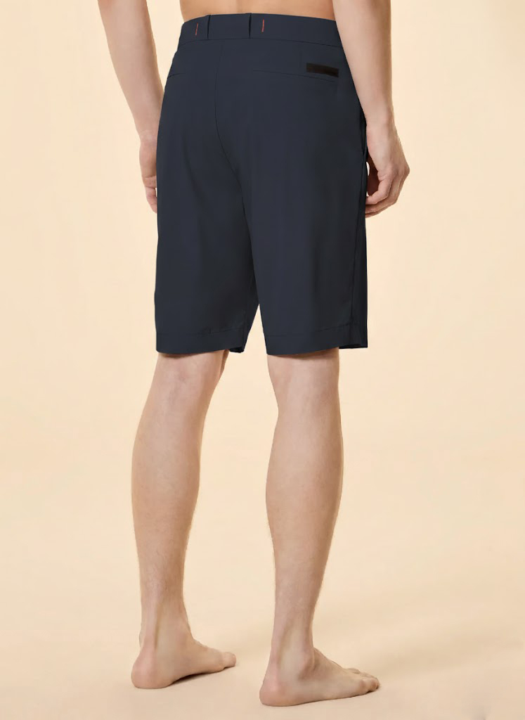 Ligeros, frescos y transpirables, estos shorts Bermuda ofrecen un estilo relajado y natural para el tiempo libre en la ciudad y los fines de semana junto al mar. El aspecto mate del exclusivo tejido elástico Montecristo realza el diseño esencial y minimalista del modelo. La cinturilla se ajusta mediante un práctico cordón interno con extremos de goma y se cierra con un botón de cuerno y una cremallera oculta. El interior revela el detalle de la banda estampada con el exclusivo monograma Razzle Dazzle tono sobre tono, lo que realza aún más la confección de la prenda. El modelo cuenta con bolsillos laterales inclinados y bolsillos de ribete traseros, rematados con un logo negro microinyectado a la derecha. Su tejido ligero, combinado con su tacto suave y propiedades de secado rápido, convierte a estos shorts en un imprescindible de la temporada. Perfectos para combinar con un polo o una camiseta de la colección, definen un look veraniego versátil y contemporáneo, listo para la acción.