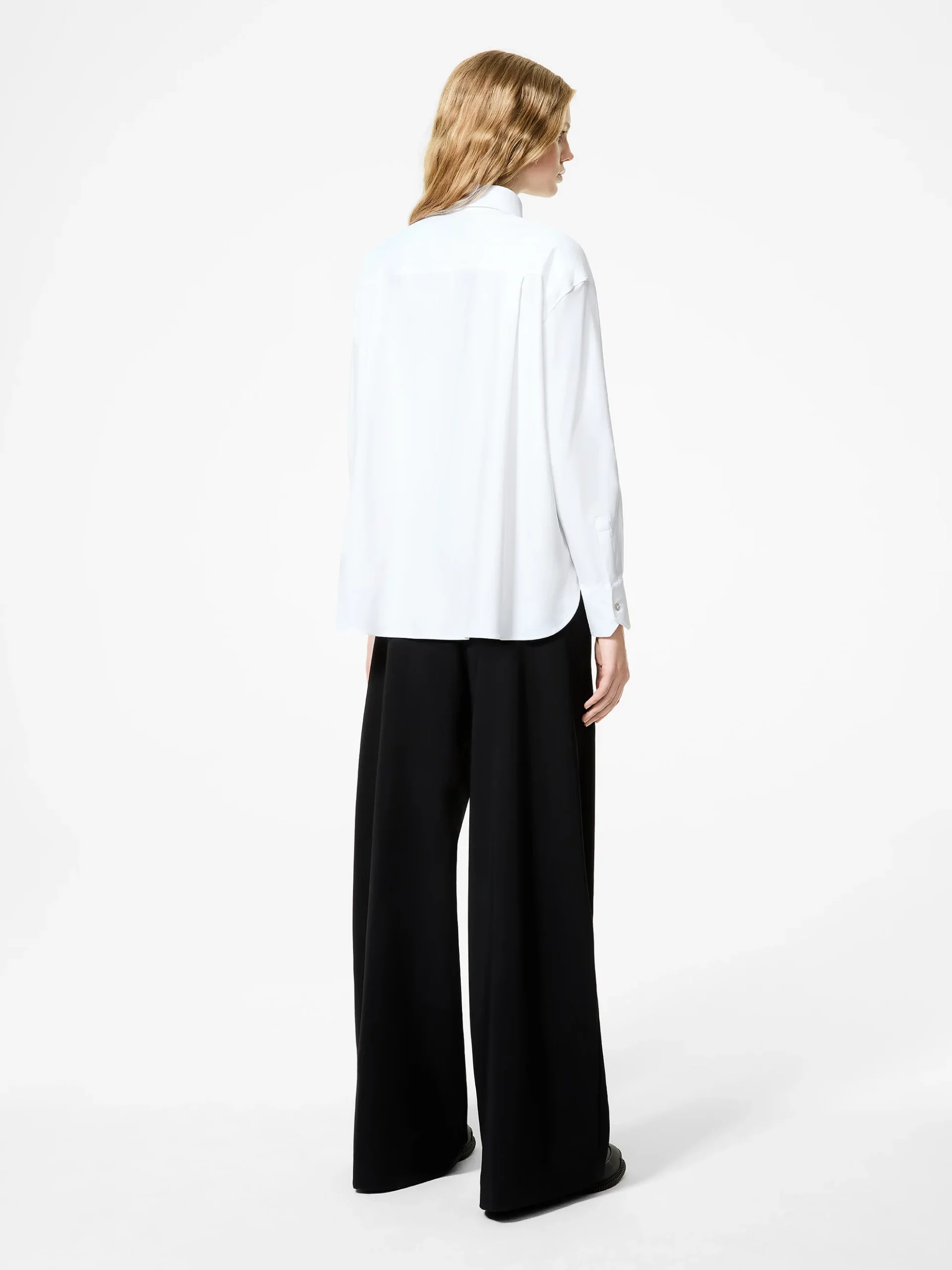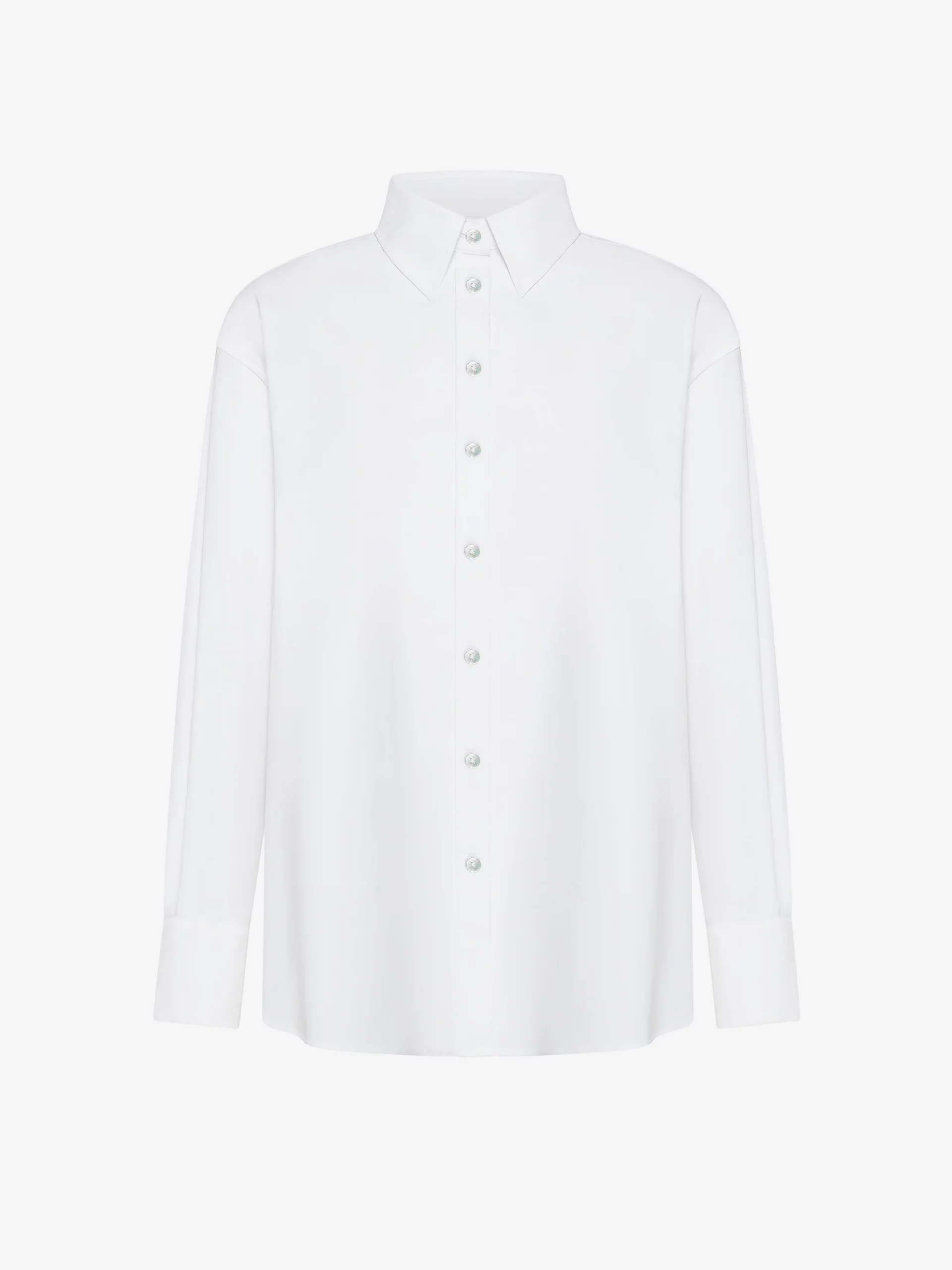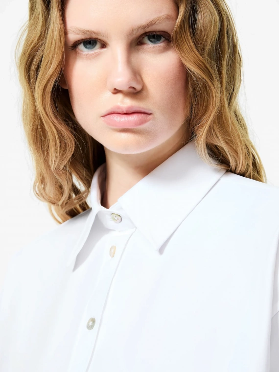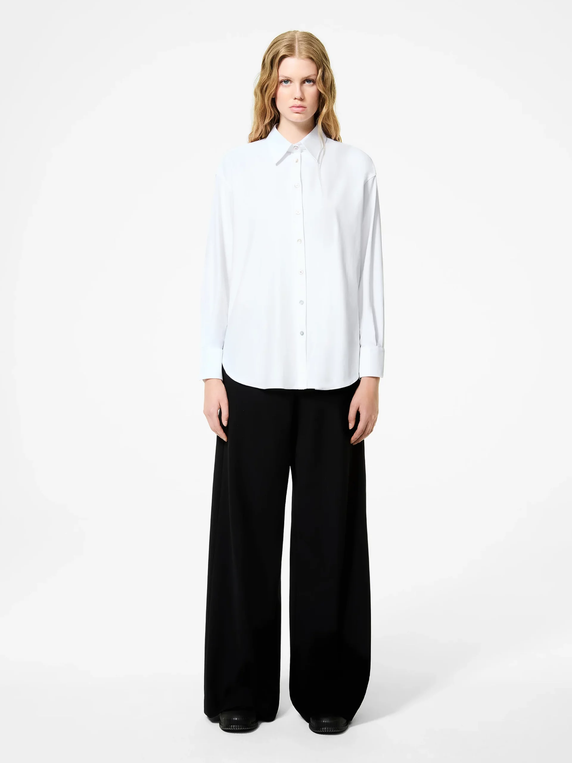 Con una elegancia relajada pero refinada, esta camisa oversize combina comodidad y modernidad con una silueta fluida y un encanto informal. Confeccionada en fino tejido Oxford elástico con tejido jacquard, luce una textura sofisticada y un ajuste cómodo. El canesú estructurado y el cierre frontal, realzados por botones de nácar, revelan una confección a medida con atención al detalle. El cuello regular define una línea limpia y versátil. La ligereza del tejido, combinada con sus propiedades antiarrugas y de fácil cuidado, realza su versatilidad sin restarle belleza. Al combinarla con un pantalón chino Surflex®, la camisa se convierte en el centro de atención de un conjunto sofisticado y dinámico, perfecto para cualquier ocasión.