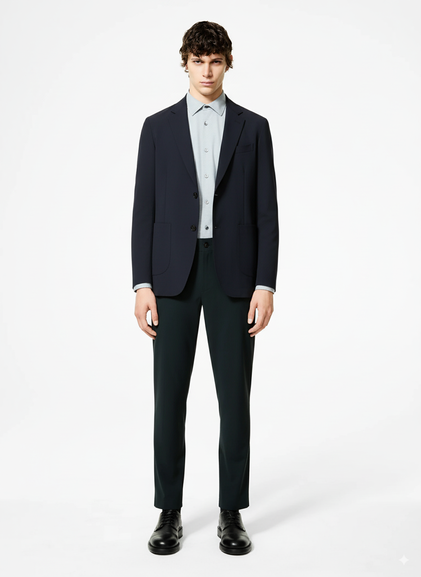 El diseño contemporáneo del Surflex Wintech Blazer destaca por su moderna confección. La tecnología Laser Glue Lock, perfeccionada mediante soldadura ultrasónica y sellado interno, permite un diseño sin costuras, donde la simplicidad se convierte en sofisticación. La elegancia de este modelo de botonadura sencilla y corte regular se ve realzada por el aspecto ultramate del exclusivo tejido SURFLEX®. Sus propiedades elásticas y resistentes a las arrugas, combinadas con la abertura central en la espalda, realzan el rendimiento y la comodidad del blazer, garantizando un ajuste impecable durante largas jornadas en la oficina y fuera de ella. El modelo se estiliza gracias al cierre de dos botones y las solapas de muesca, con un bolsillo de ribete y dos bolsillos laterales de parche. El Wintech Blazer puede combinarse con una camisa Oxford y un pantalón chino a medida para un atuendo profesional o de noche, o con un jersey de cuello alto y un pantalón de cinco bolsillos para un estilo informal sofisticado.