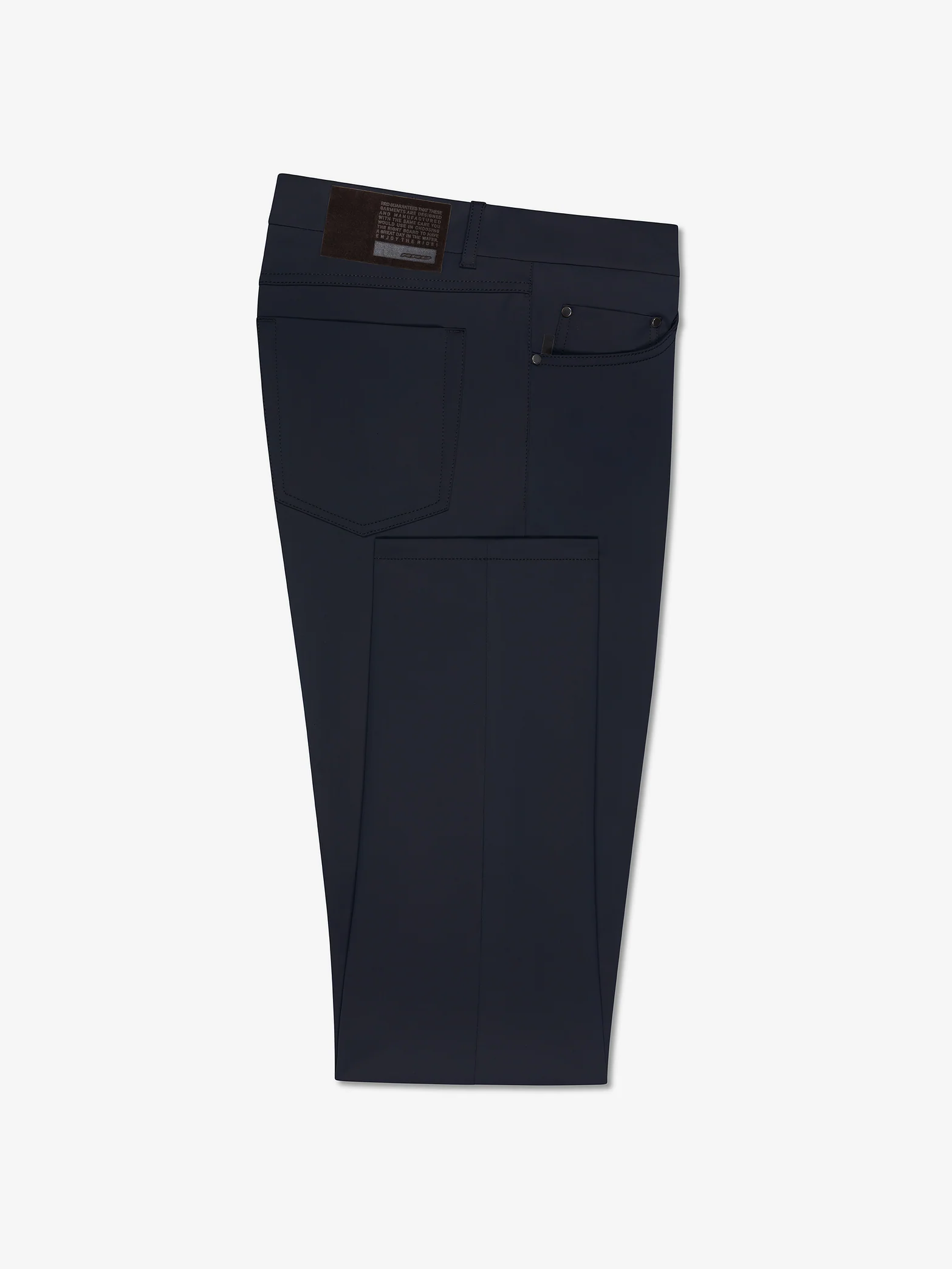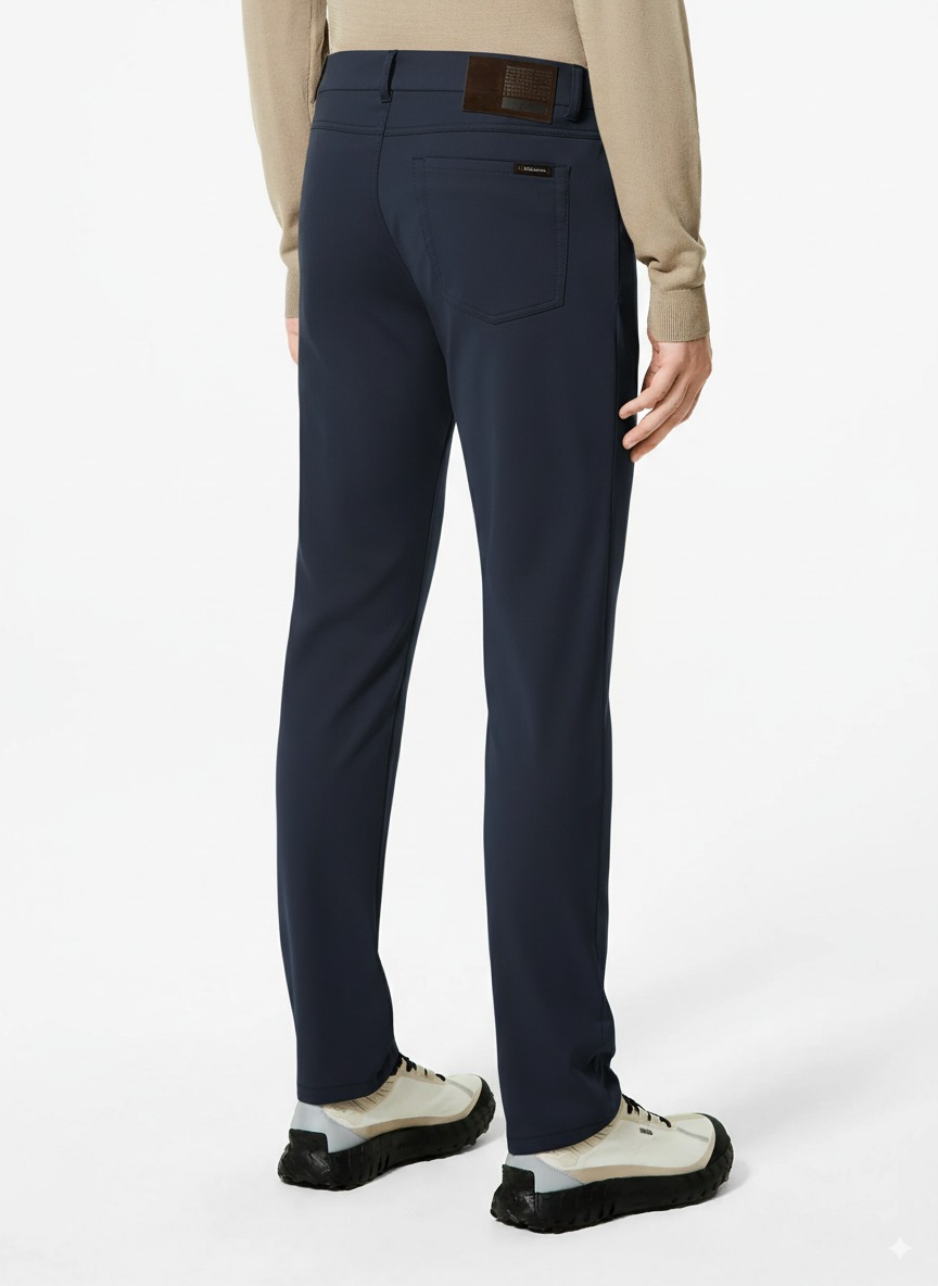 El patrón de cinco bolsillos, con su diseño atemporal, se combina con la comodidad y la suavidad excepcional del tejido cepillado invernal SURFLEX® para crear unos pantalones de corte regular, ideales para ocasiones informales y cotidianas. La cinturilla se cierra con un botón metálico con tachuelas, y el cinturón interior luce el icónico monograma Razzle Dazzle negro estampado integral. La fina tapeta de cuerno, oculta por la solapa, se complementa con los distintivos bolsillos laterales con remaches metálicos mate, complementados con el reloj de bolsillo con etiqueta negra. Los bolsillos traseros de parche se realzan con el jacrón en contraste, el sello distintivo de estos pantalones, esenciales para completar cualquier look casual, y están disponibles en una amplia gama de colores versátiles y codiciados.