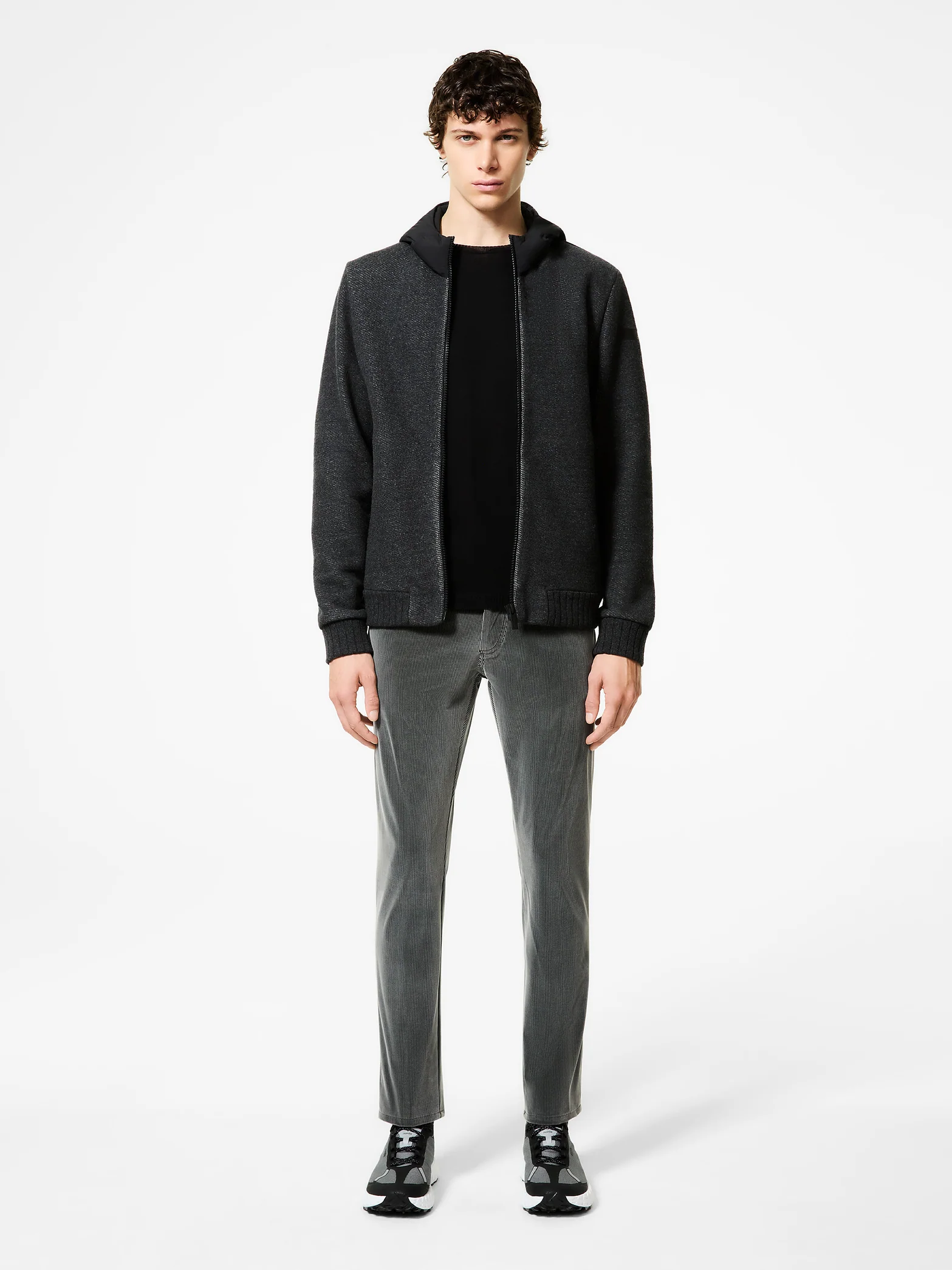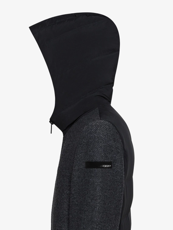 La sudadera con capucha está confeccionada en un versátil tejido técnico de mezcla de lana con cintas selectivas que realzan su dinamismo y durabilidad. El interior cuenta con canales tubulares sin costuras que contienen el suave relleno de plumón de pato 90/10, especialmente cálido y ligero. El diseño minimalista se acentúa con la cremallera termosellada que cierra la parte delantera y la capucha acolchada. Los bolsillos laterales con cremalleras invisibles completan discretamente la prenda, rematada con canalé inglés elástico en puños y bajo. La cinta naranja flúor en la espalda y el característico logotipo negro microinyectado en la manga izquierda son los detalles distintivos que completan esta prenda de forro polar, disponible en tonos oscuros de temporada, perfecta para completar una gama de looks casuales con un toque urbano, contemporáneo y audaz.