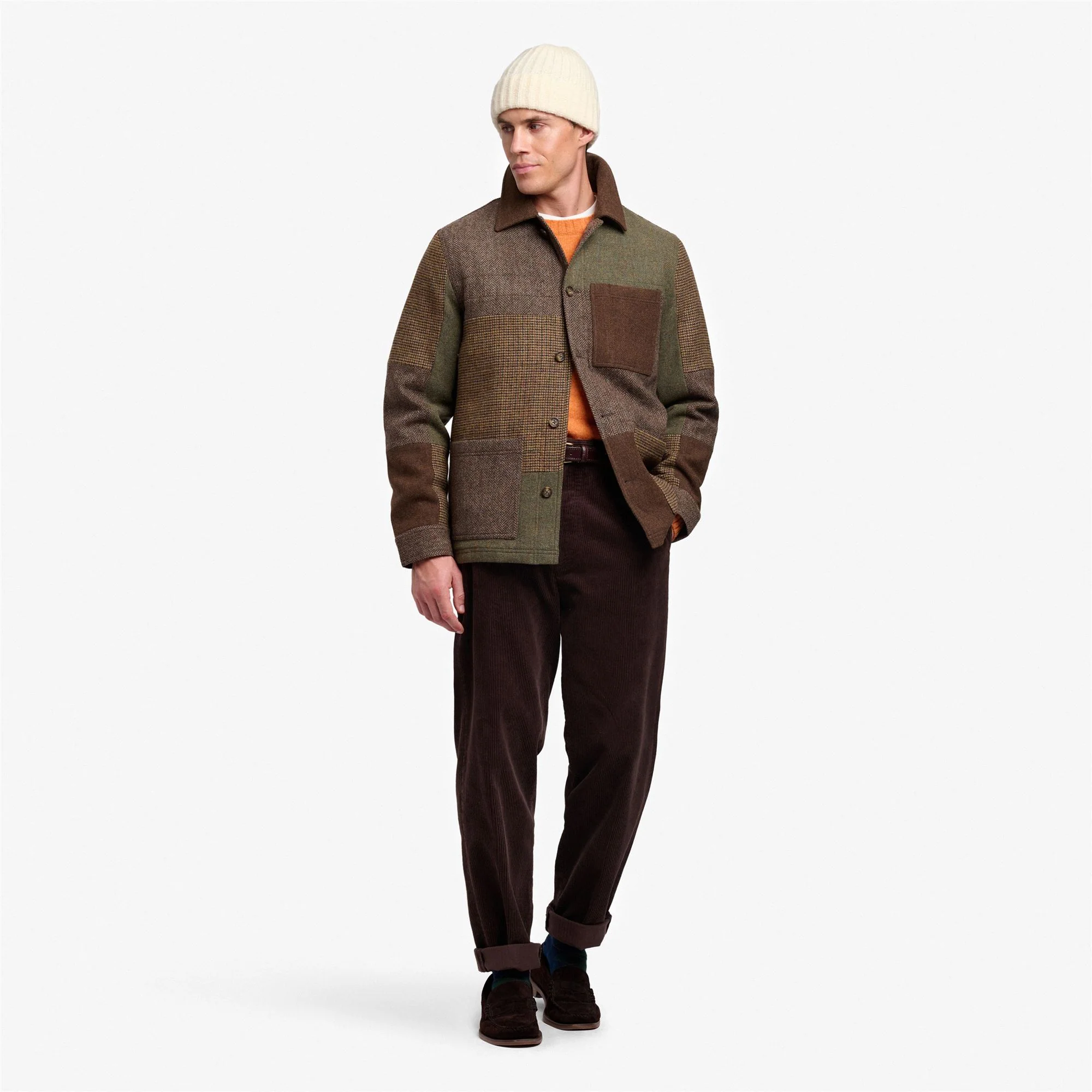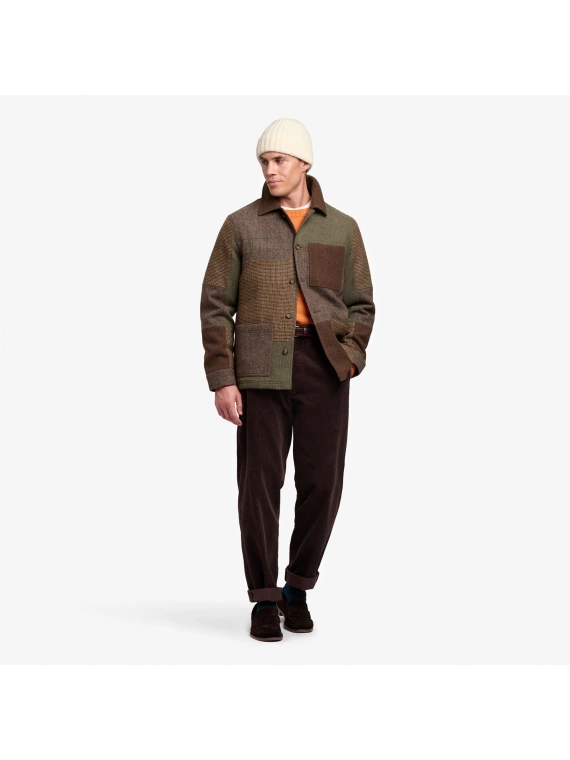 La inspiración de la ropa de trabajo se fusiona con el espíritu Sebago para crear nuestra icónica chaqueta Dorr, reinterpretada con un refinado patchwork de micropata de gallo, espiga y jaspeado. Incorpora tres bolsillos exteriores de parche y un bolsillo interior para guardar tus objetos esenciales del día a día de forma segura y organizada.