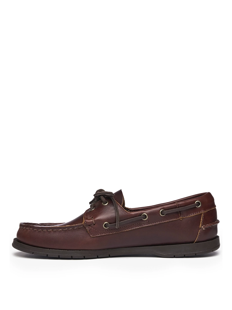 Construidos como los mejores clásicos del calzado náutico, estos mocasines náuticos tipo slip-on de larga duración están hechos de cuero engrasado en caliente acondicionado con una rica combinación de aceites y ceras, luego cosidos a mano con la mejor artesanía: impermeables y realzados por una calidad de pulido natural, presentan una construcción canoe moc, forro interior de cuero, sistema de cordones de cuero crudo de 360° y suelas antideslizantes que no dejan marcas con ranuras en un innovador caucho marrón oscuro para ofrecer un agarre estable en todas las condiciones climáticas. Los mocasines “Endeavour” están diseñados para afrontar una vida ligada al mar y llevan el nombre del HMS Endeavour, el primer barco utilizado por el explorador británico Capitán James Cook.