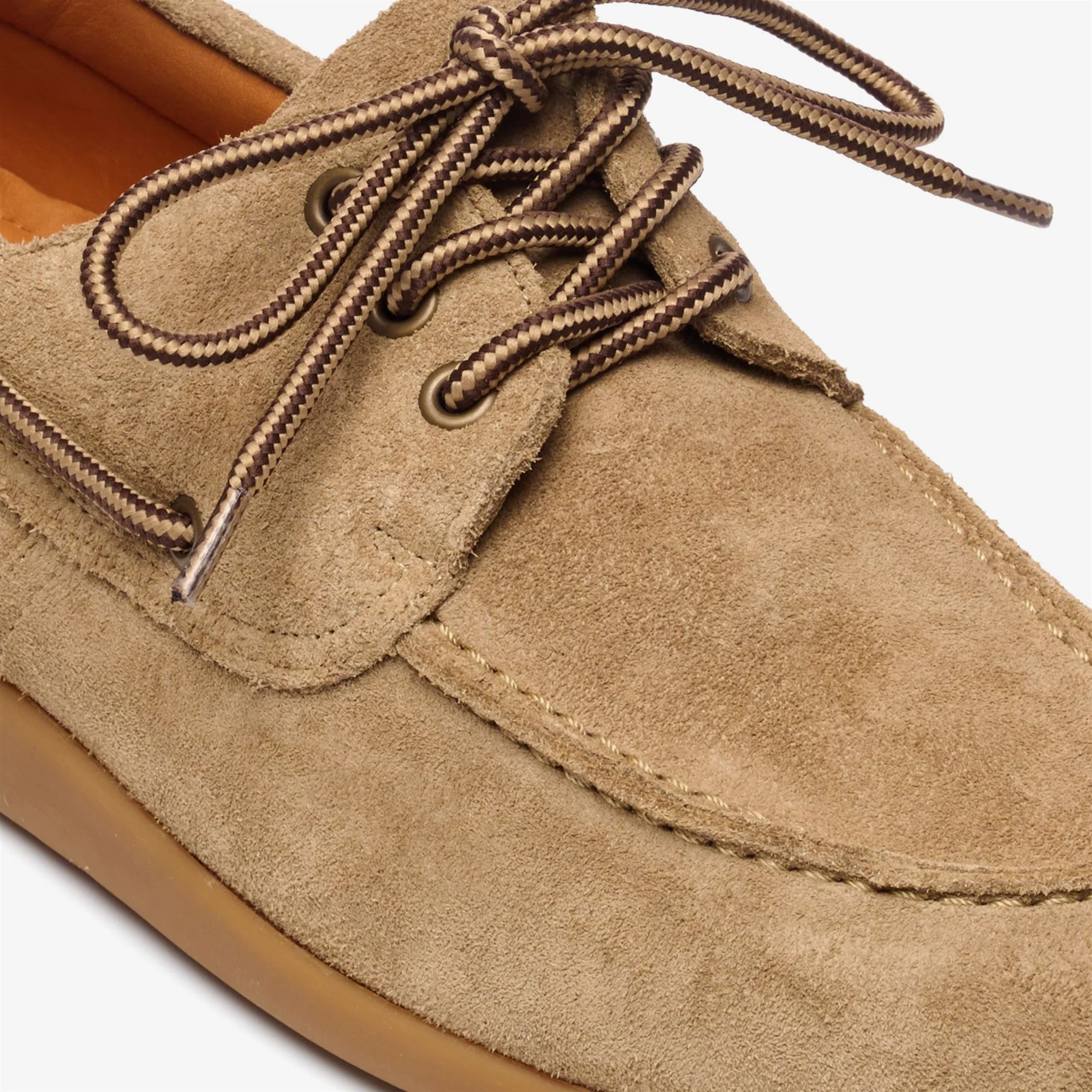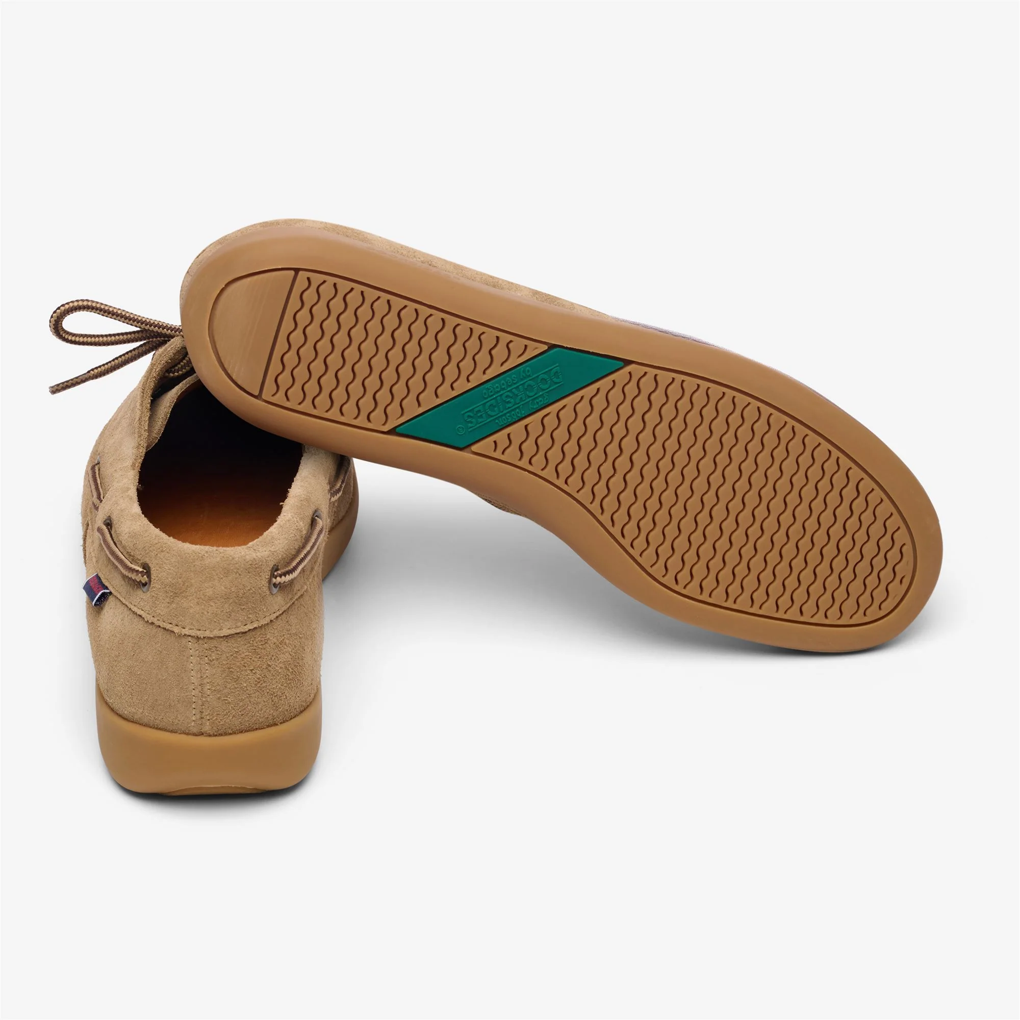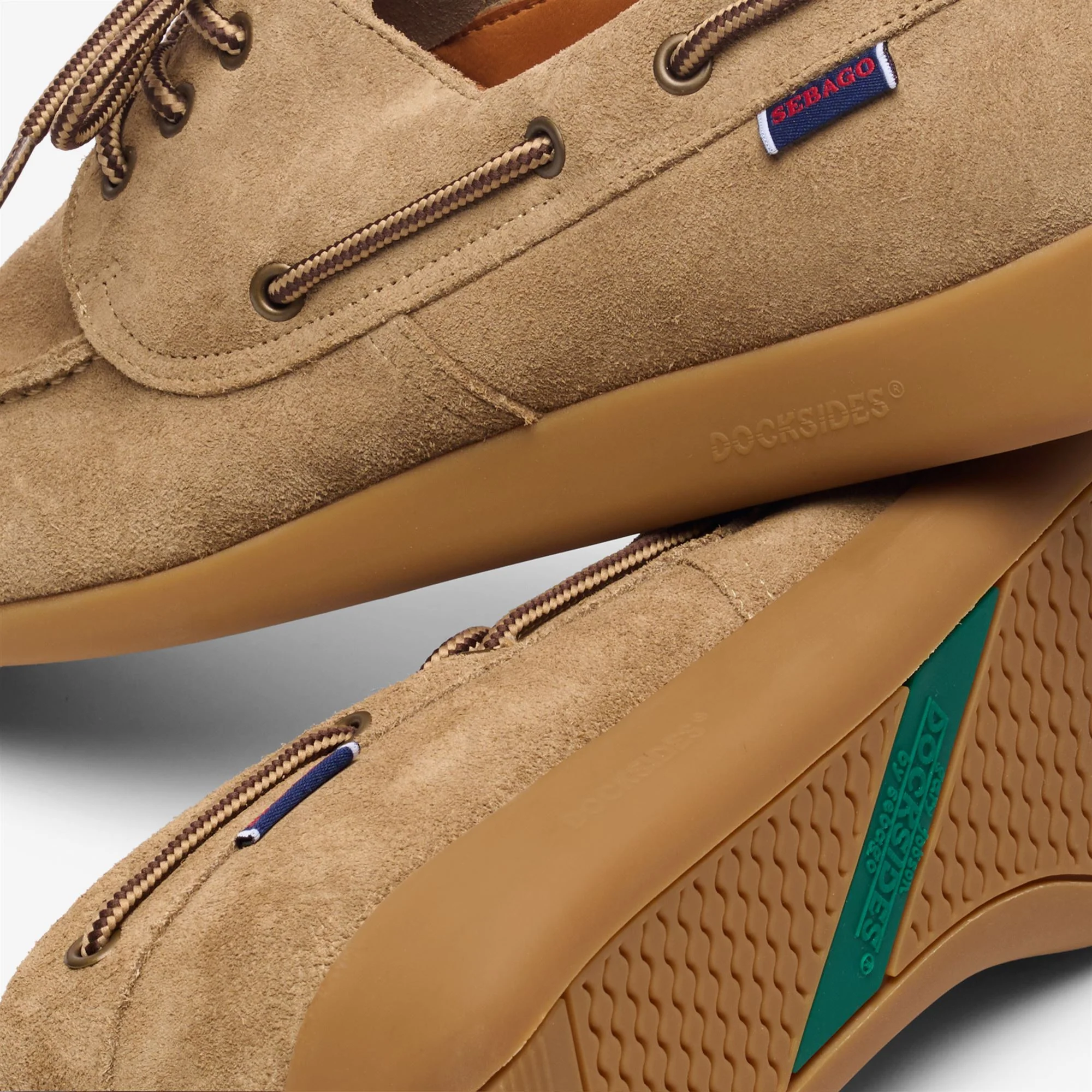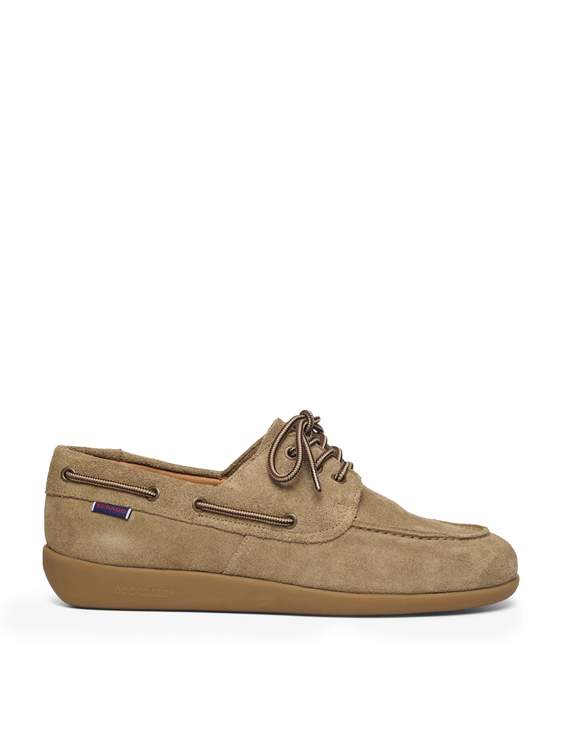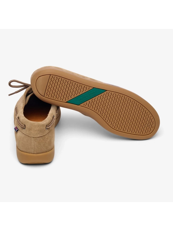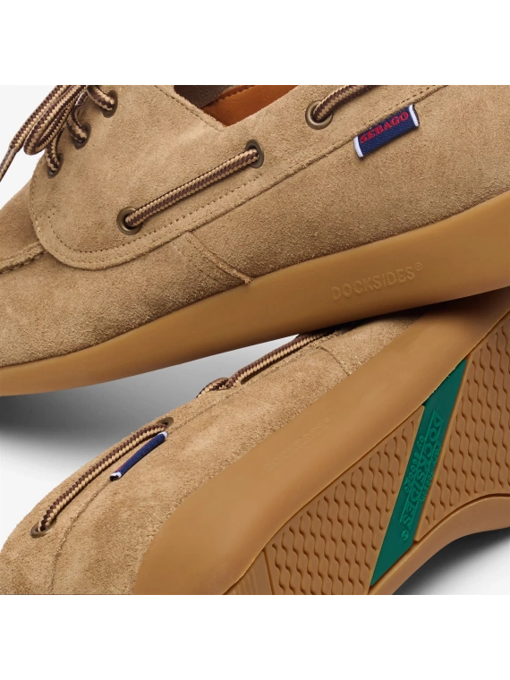 Nuestra pasión por el océano convive en perfecta armonía con nuestra herencia americana a través de las Docksides Gary Jobson de ante. Este modelo es una interpretación contemporánea de un clásico de archivo, creado originalmente en los años 80 como homenaje al estimado marinero estadounidense. Ahora, este icono regresa con una refinada parte superior de ante, un faldón cosido a mano y cordones laterales bicolor. Personalizado con el estampado “Gary Jobson” en la banda de goma. – Fabricado en ante – Forrado – Construcción Strobel – Sistema de cordones de 360° con cordones tubulares bicolor – Plantilla de cuero – Suela de goma monobloque con tacón de aproximadamente 30 mm – Banda de rodadura con estampado antideslizante personalizado “Gary Jobson” – Etiqueta con el logotipo de Sebago en el lateral.