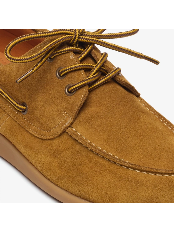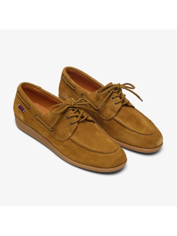 Nuestra pasión por el océano convive en perfecta armonía con nuestra herencia americana a través de las Docksides Gary Jobson de ante. Este modelo es una interpretación contemporánea de un clásico de archivo, creado originalmente en los años 80 como homenaje al estimado marinero estadounidense. Ahora, este icono regresa con una refinada parte superior de ante, un faldón cosido a mano y cordones laterales bicolor. Personalizado con el estampado “Gary Jobson” en la banda de goma. – Fabricado en ante – Forrado – Construcción Strobel – Sistema de cordones de 360° con cordones tubulares bicolor – Plantilla de cuero – Suela de goma monobloque con tacón de aproximadamente 30 mm – Banda de rodadura con estampado antideslizante personalizado “Gary Jobson” – Etiqueta con el logotipo de Sebago en el lateral.
