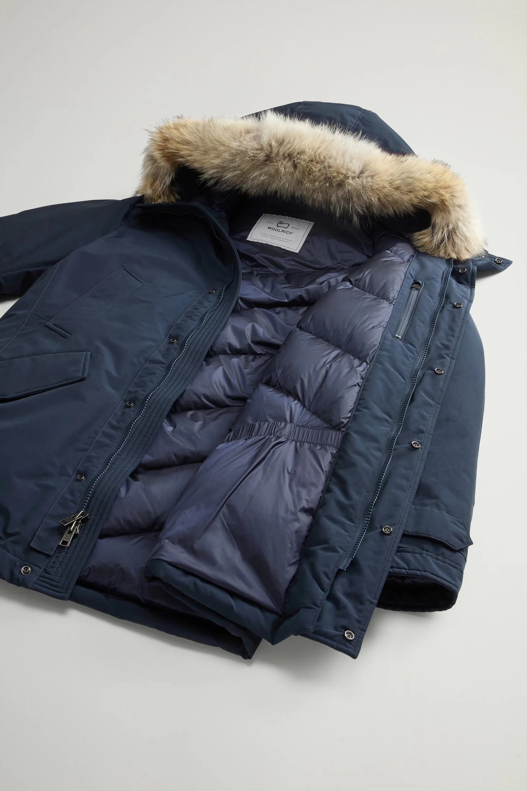 La Polar Parka de cuello alto, diseñada para abrigarte y librarte de humedad, tanto en la montaña como en la ciudad, reinterpreta con un estilo actual un modelo icónico. Está rellena de cálido plumón de pato y confeccionada en Ramar Cloth, un tejido hidrófugo y resistente al viento que garantiza una barrera contra la lluvia ligera. Leva una inserción de piel de coyote desmontable, puños ajustables y parches de nailon en los codos.